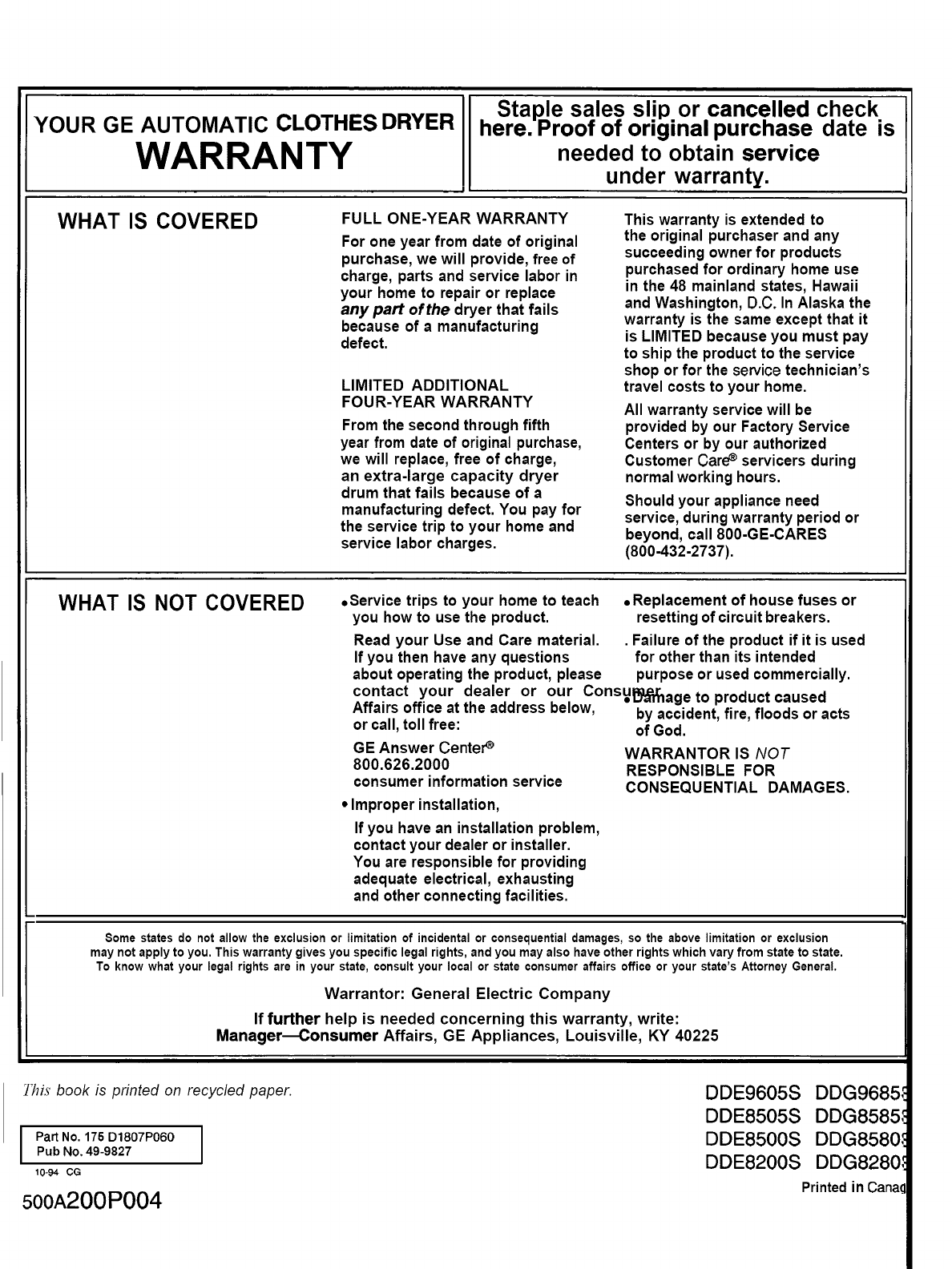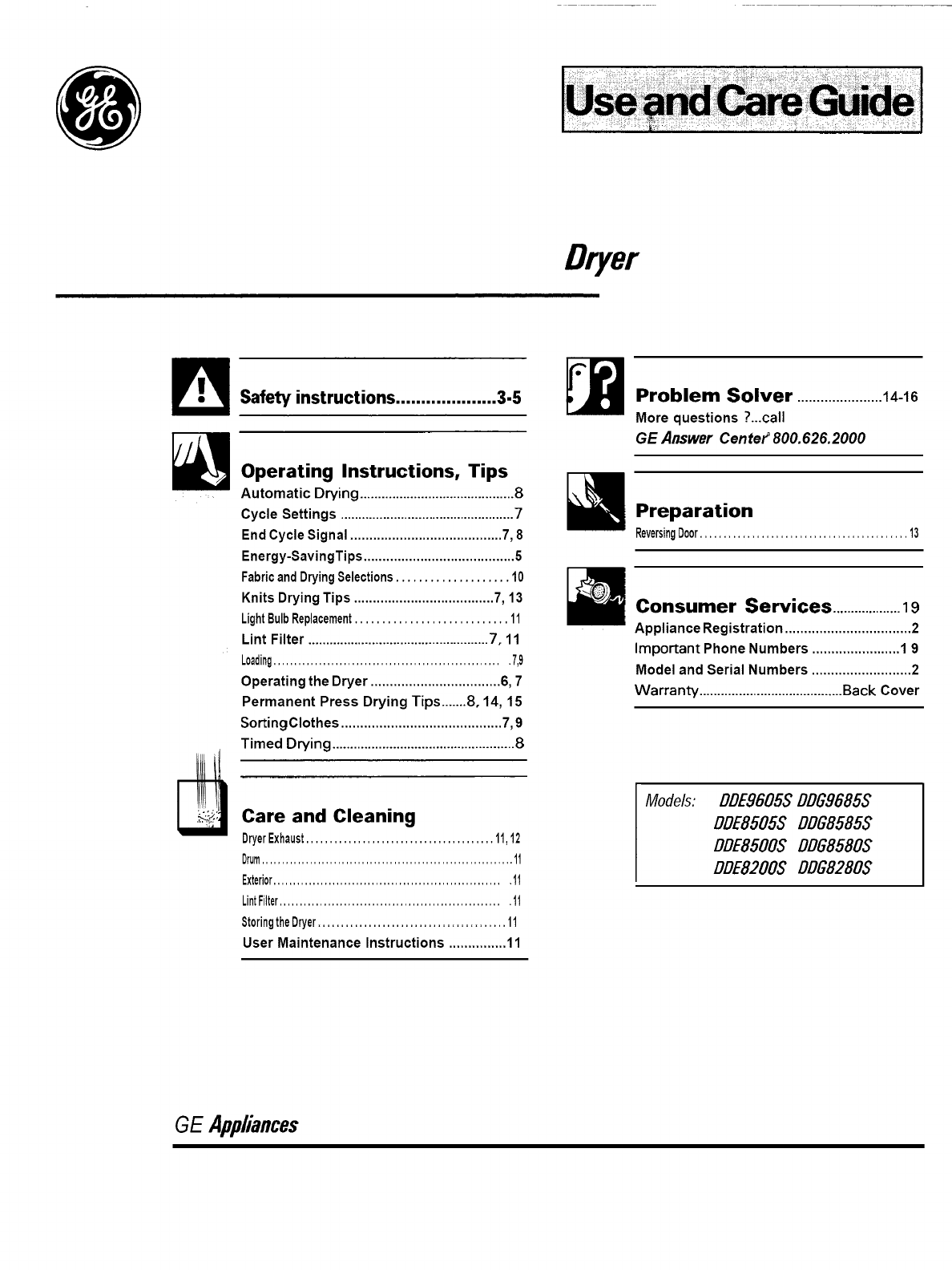 User Manual: GE DDG8280SBMAA DDG8280SBMAA GE DRYER, LG CAP GAS - Manuals and Guides View the owners manual for your GE DRYER, LG CAP GAS #DDG8280SBMAA. Home:Laundry & Garment Care Parts:GE Parts:GE DRYER, LG CAP GAS Manual