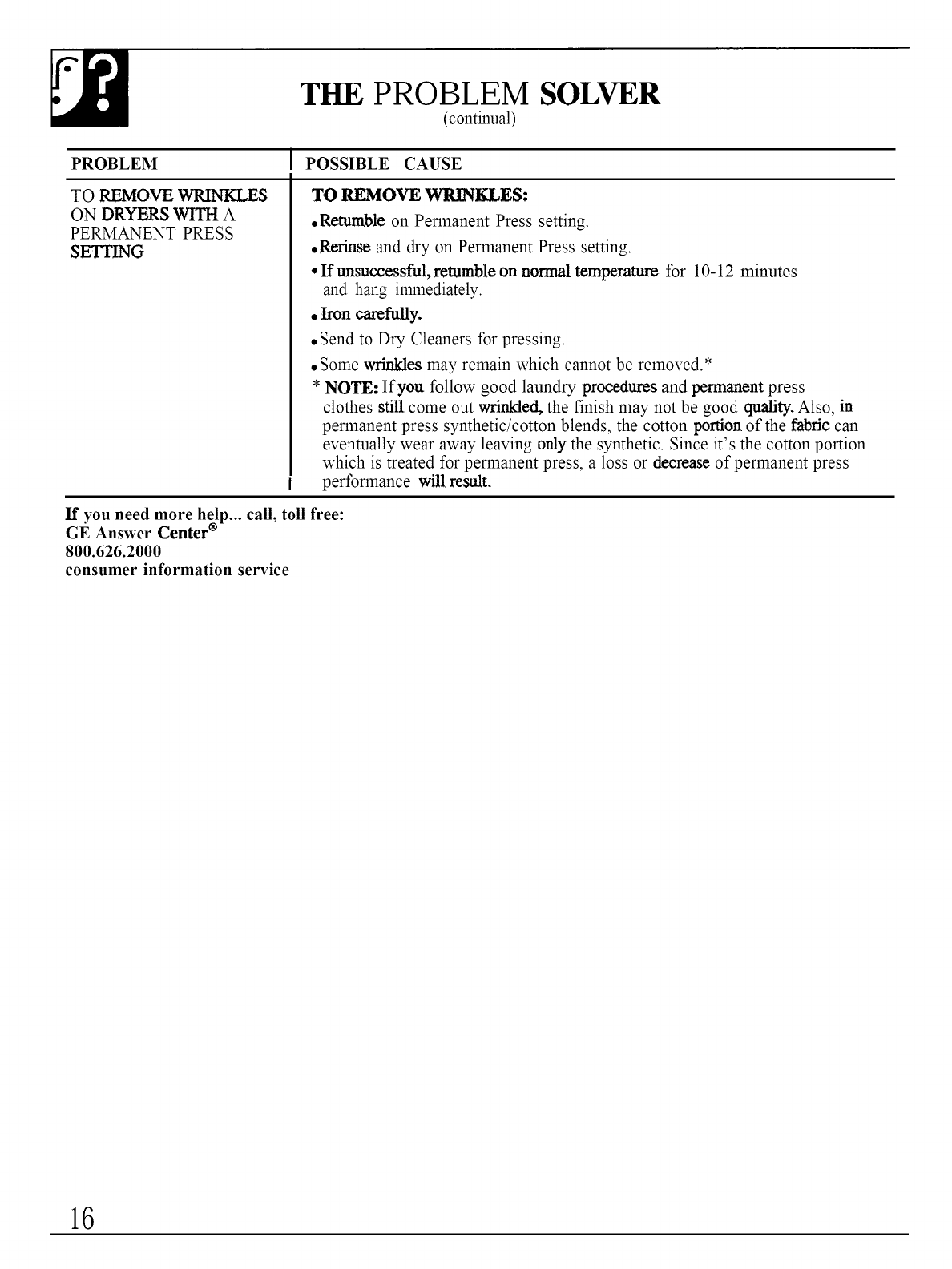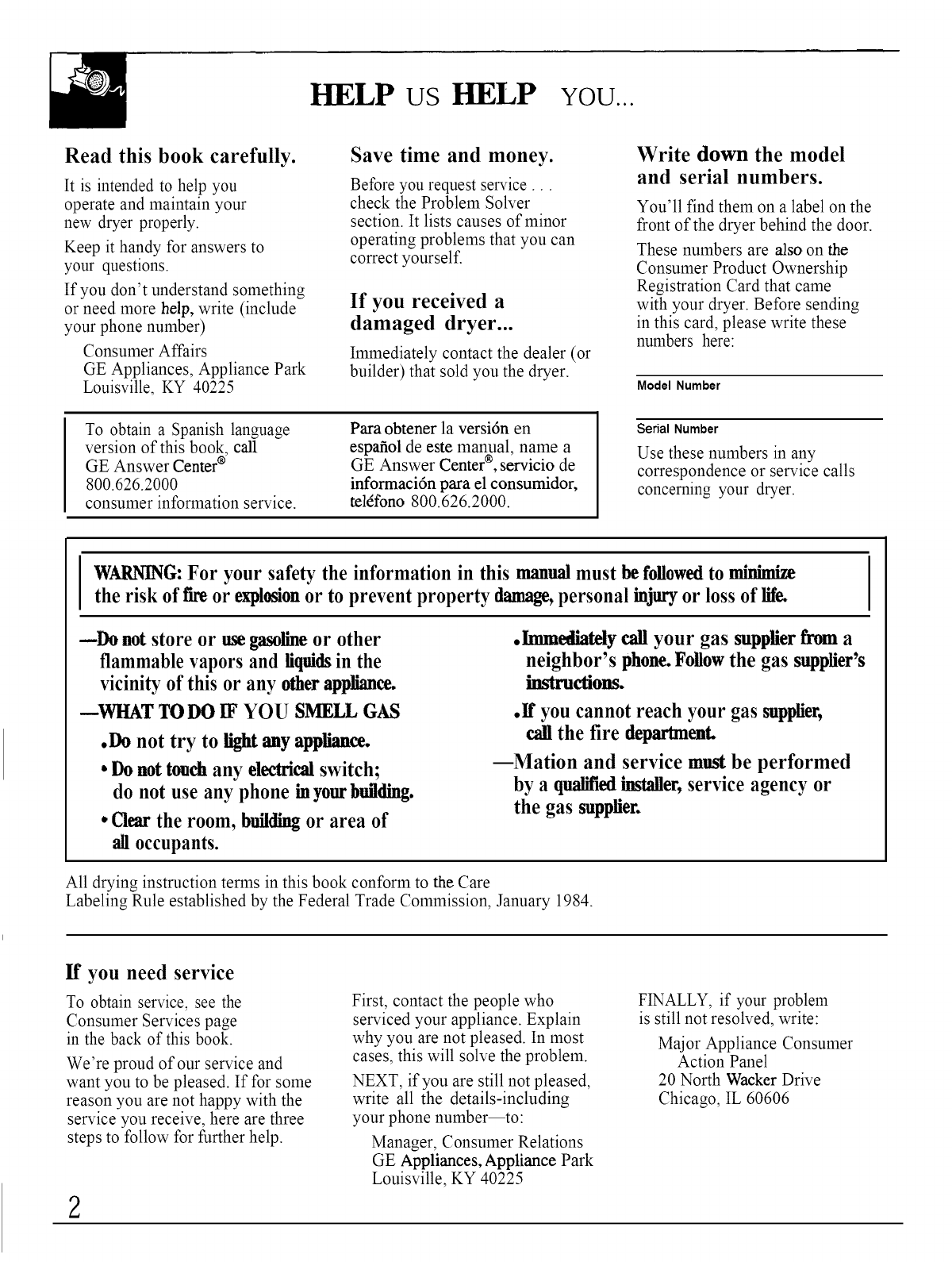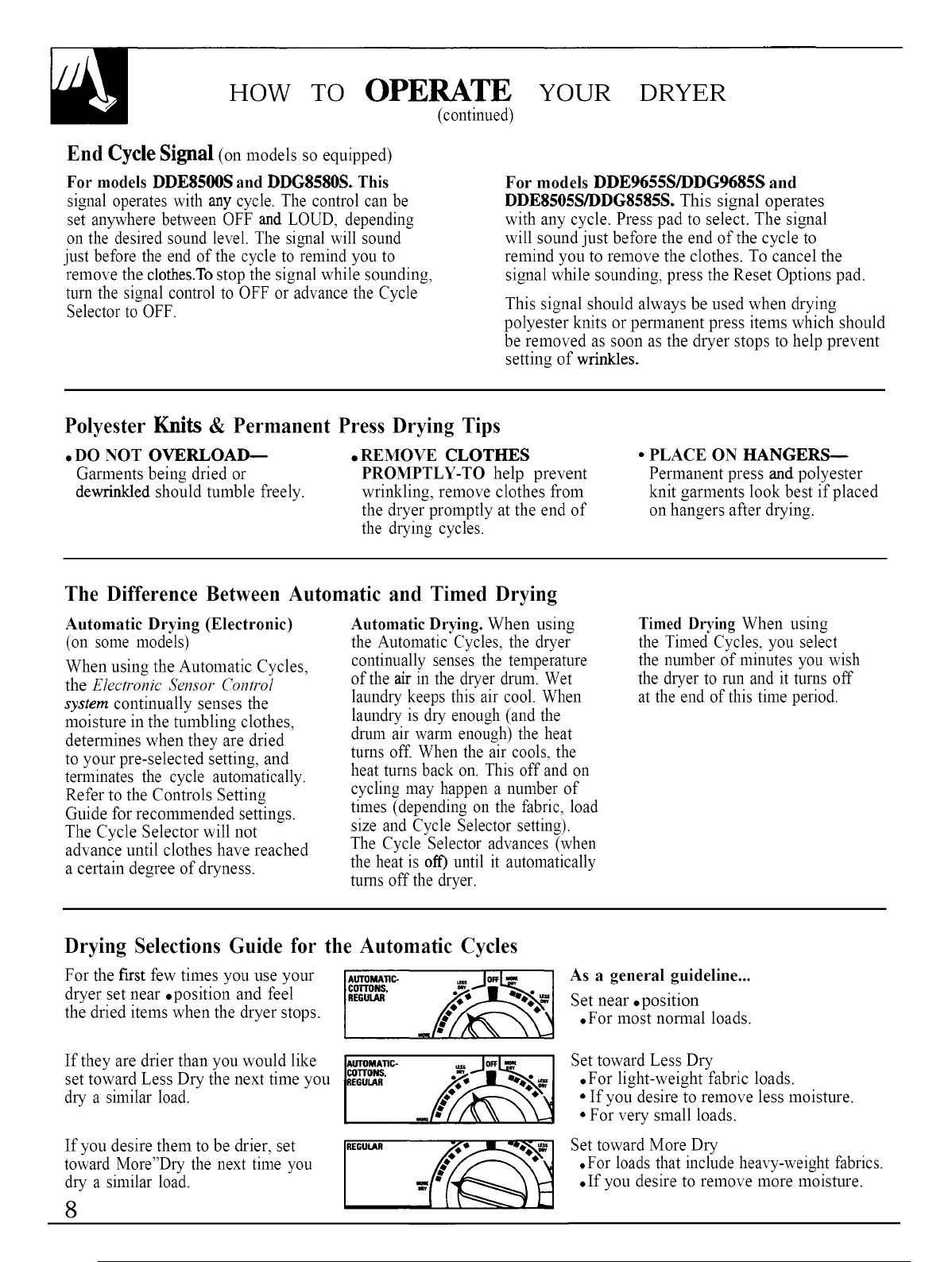 YOUR GE AUTOMATIC CLOTHES DRYER