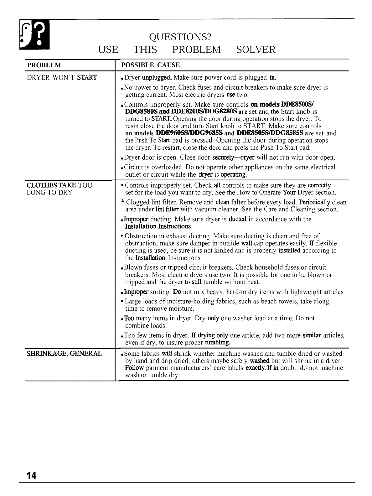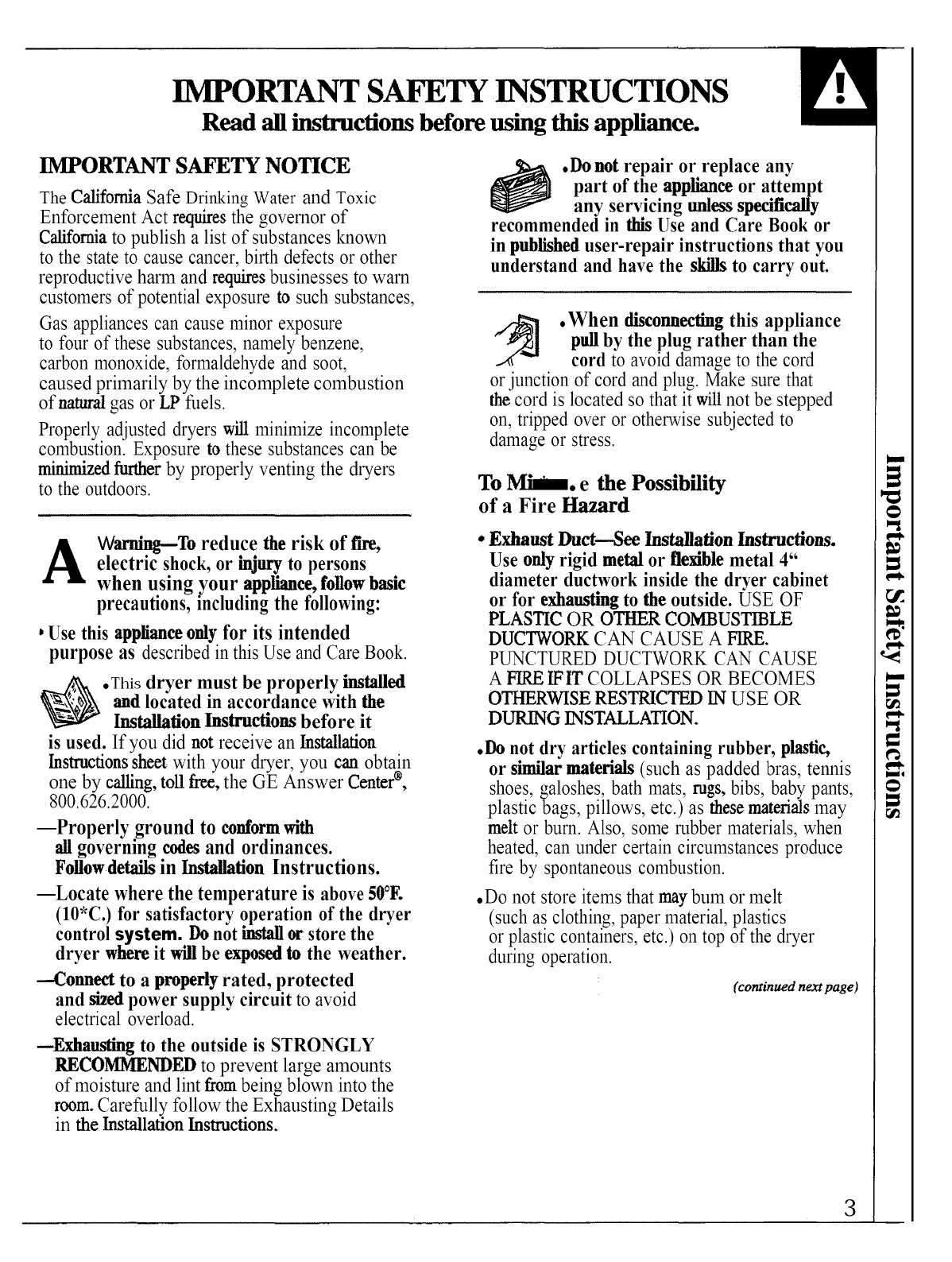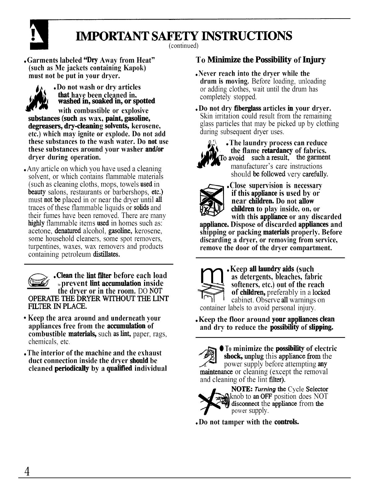 YOUR GE AUTOMATIC CLOTHES DRYER