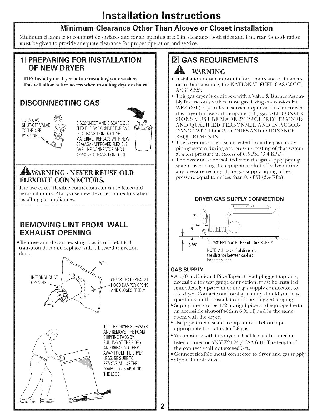 * DO NOT install a clothes (hTer with flexible plastic ducting materials. If flexible