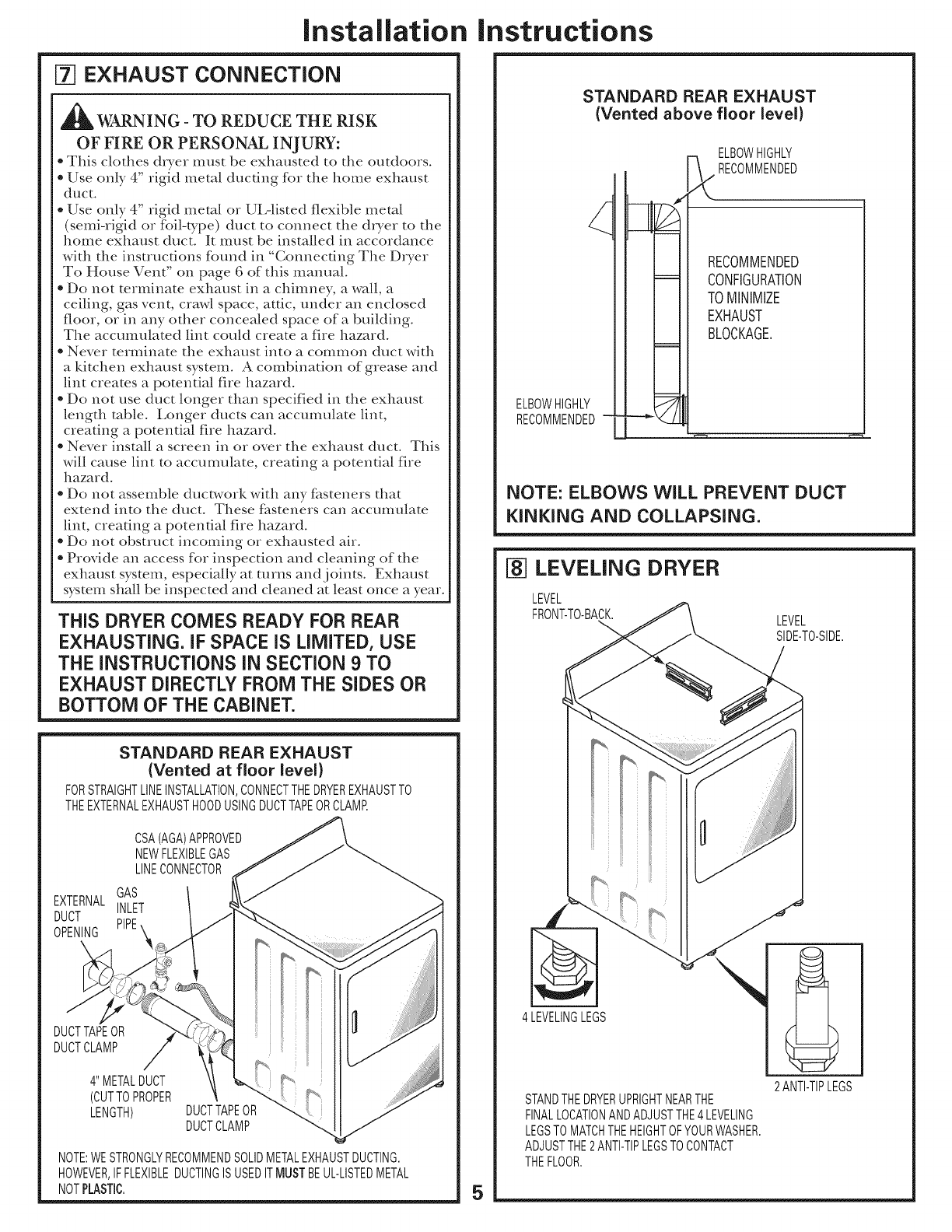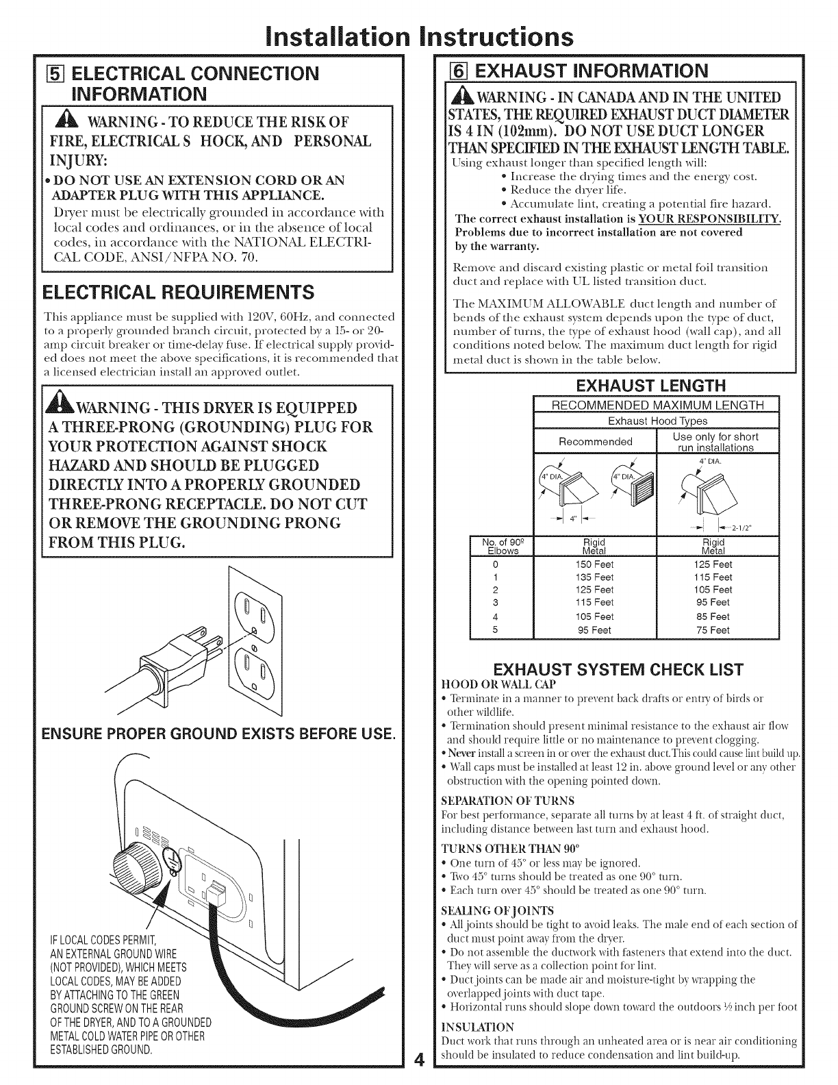 * Use only 4" rigid metal ducting fbr exhausting the clothes (hTer to tlle outdoors.