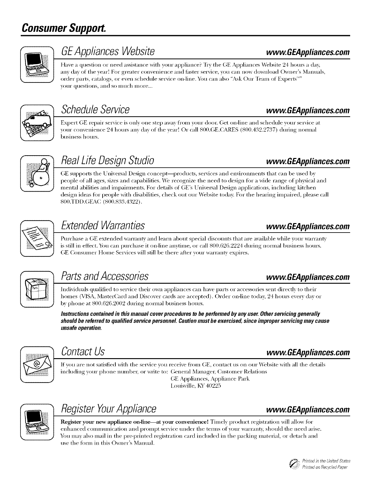 on-line, 24hours a day, visit us at www.GEAppliances.com,