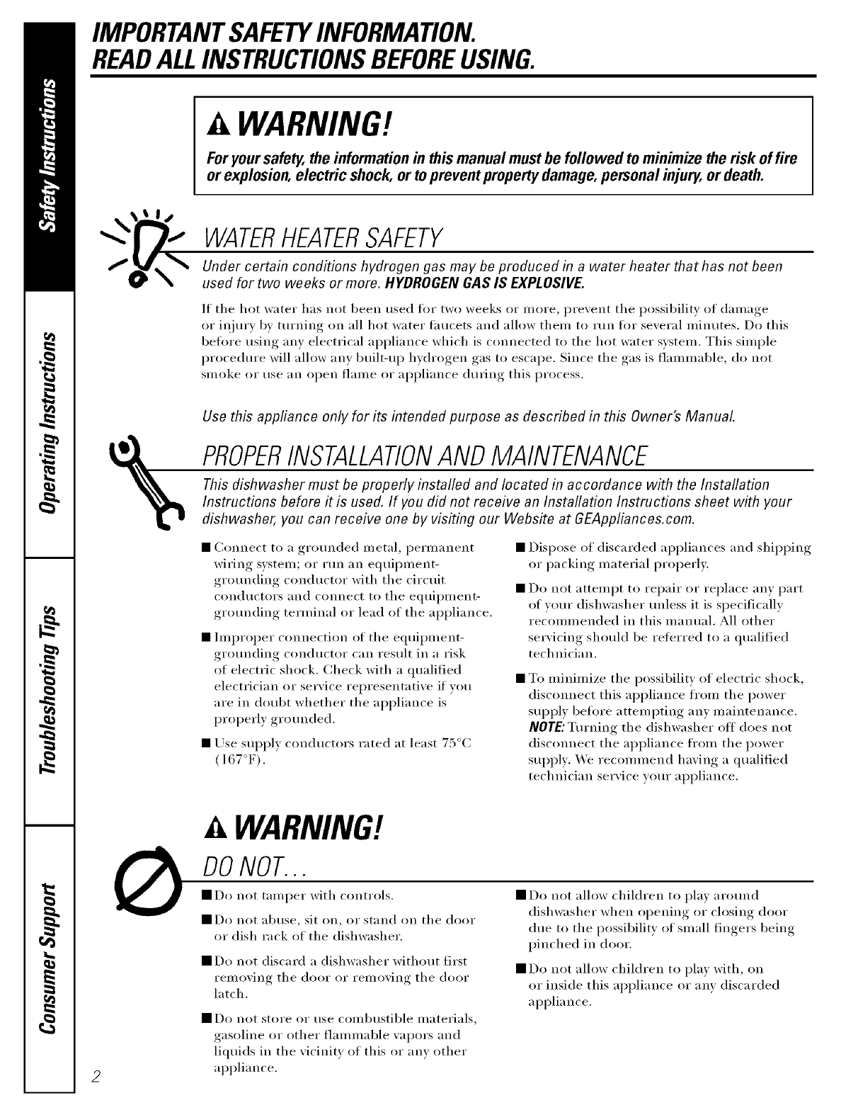 GE Dishwasher Manual L0409169 GE Dishwasher Owner's Manual, GE Dishwasher installation guides
