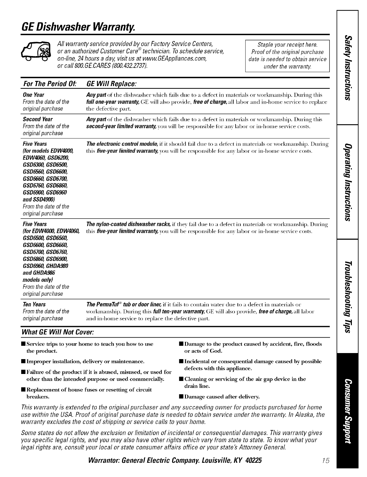 Warrantor: General Electric Company. Louisville, KY 40225 15