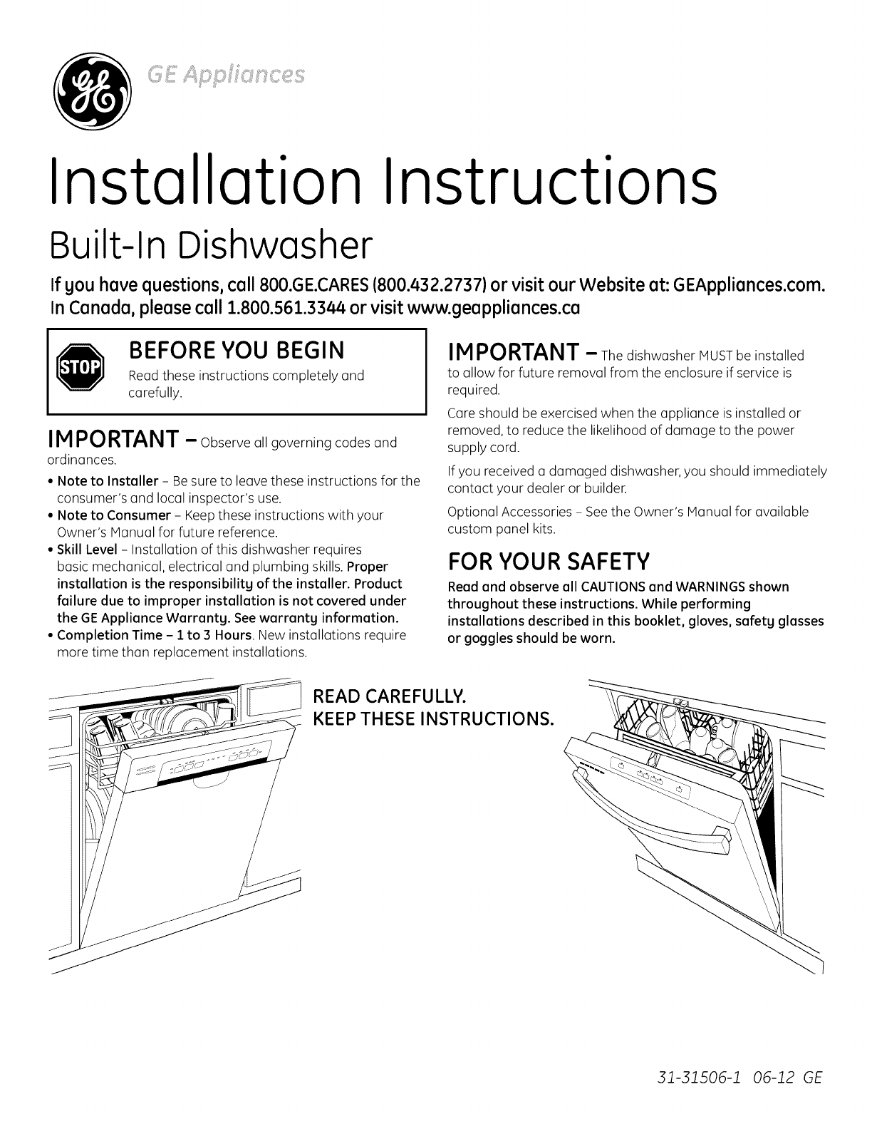 If gou have questions, call 800.GE.CARES1800.432.27371 or visit our Website at: GEAppliances.com.