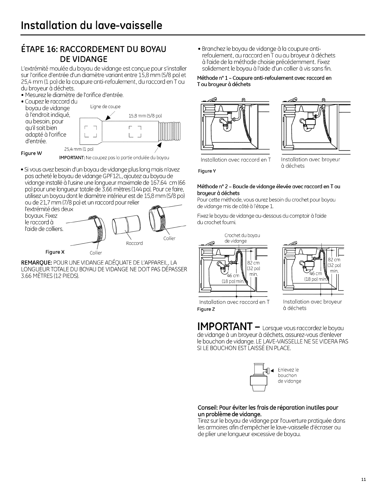 boyau de vidange ne sont pas pli6s ou n'entrent pas en