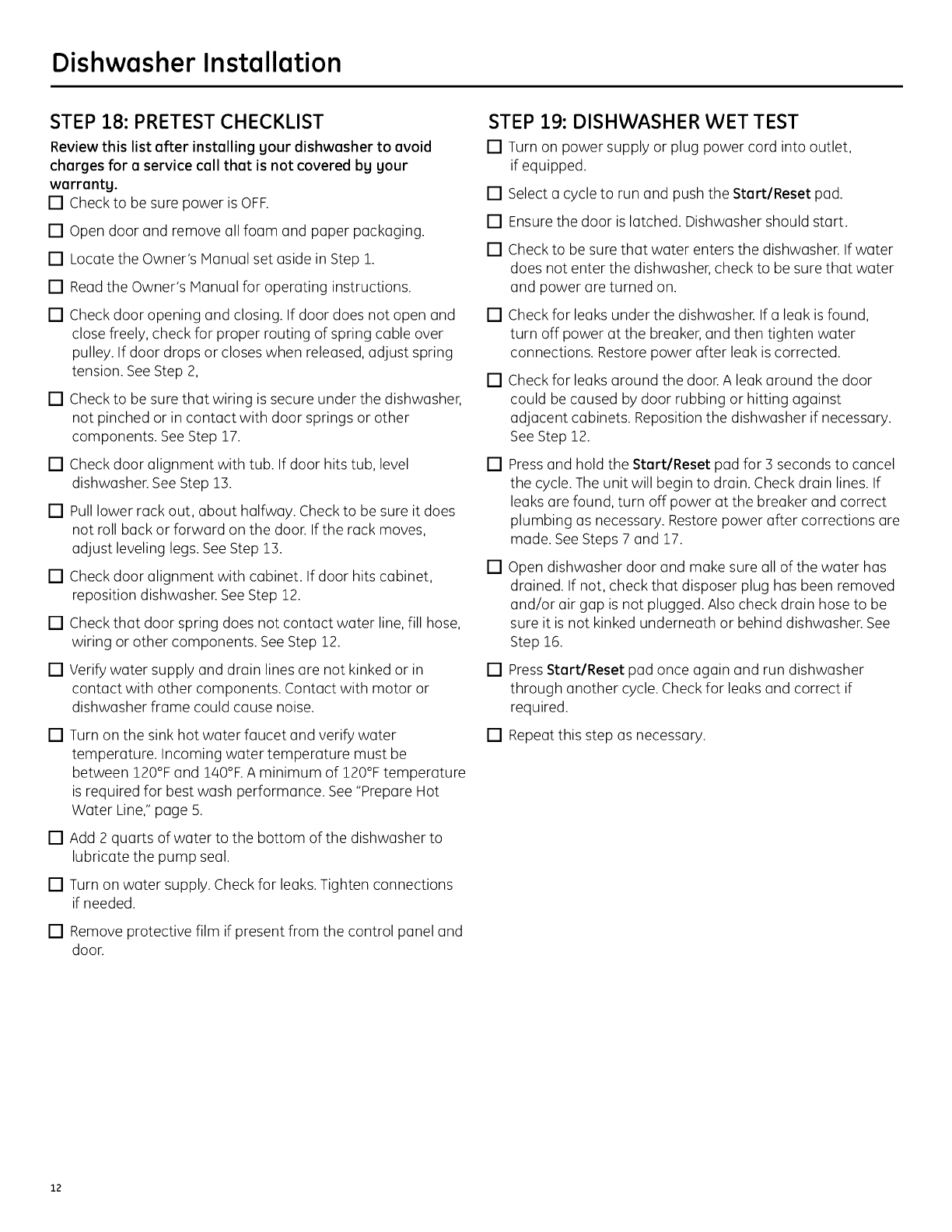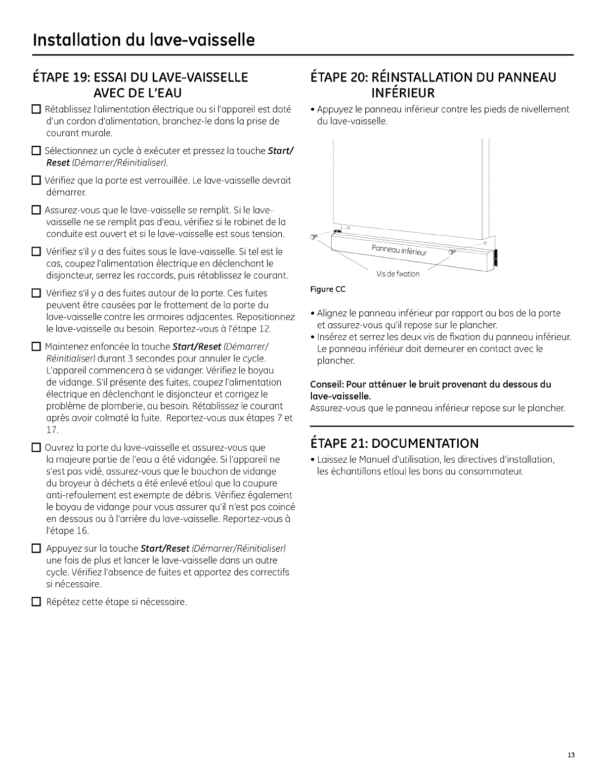 repositionnez le lave-vaisselle. Reportez-vous a I'@ape 12.