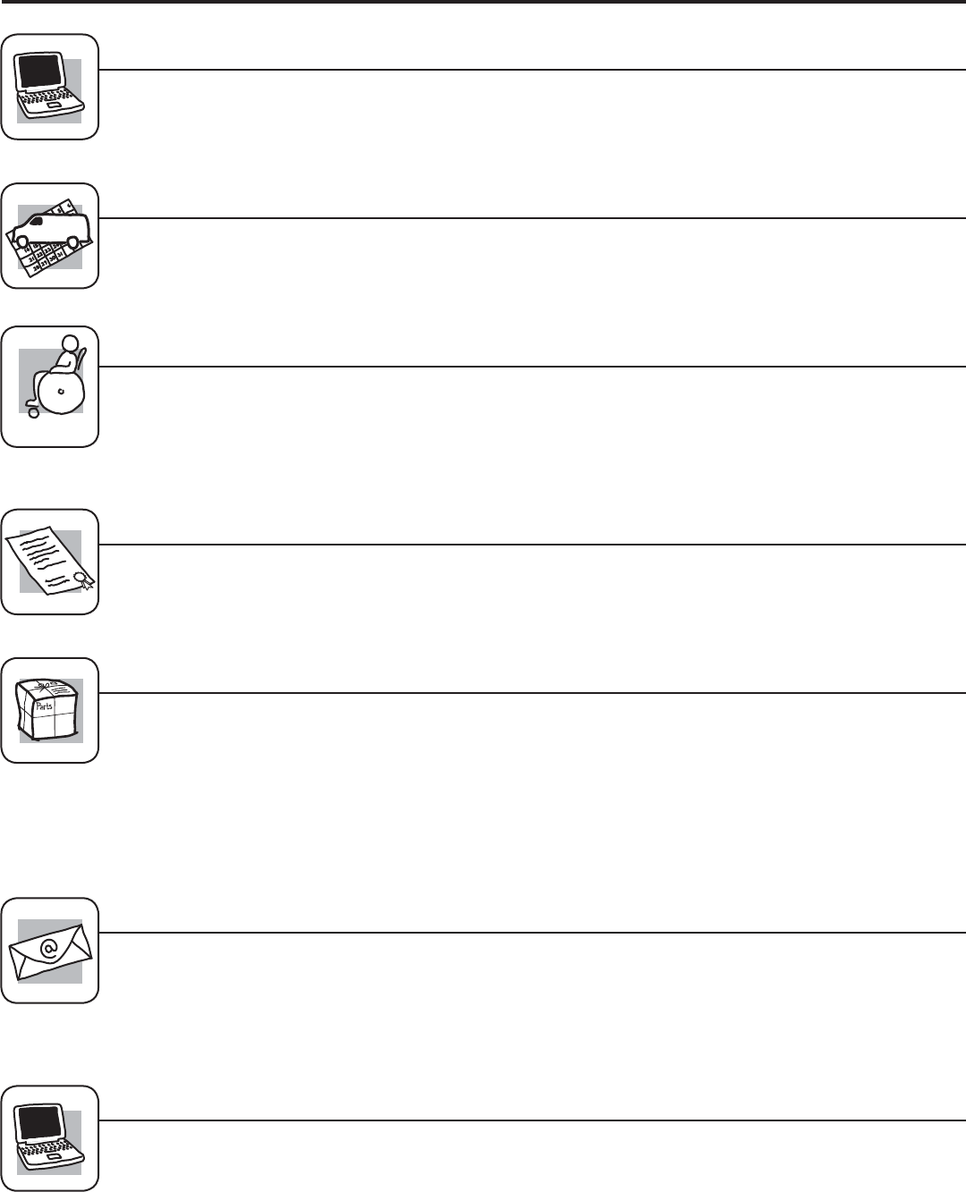 pedir que se les manden las piezas o accesorios directamente a sus hogares (aceptamos las tarjetas VISA,