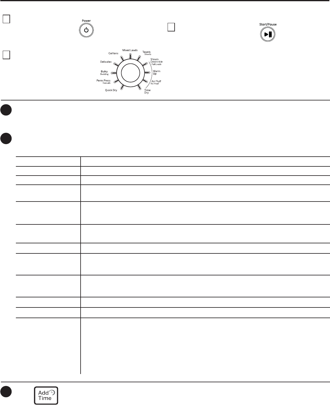 About the dryer control panel.
