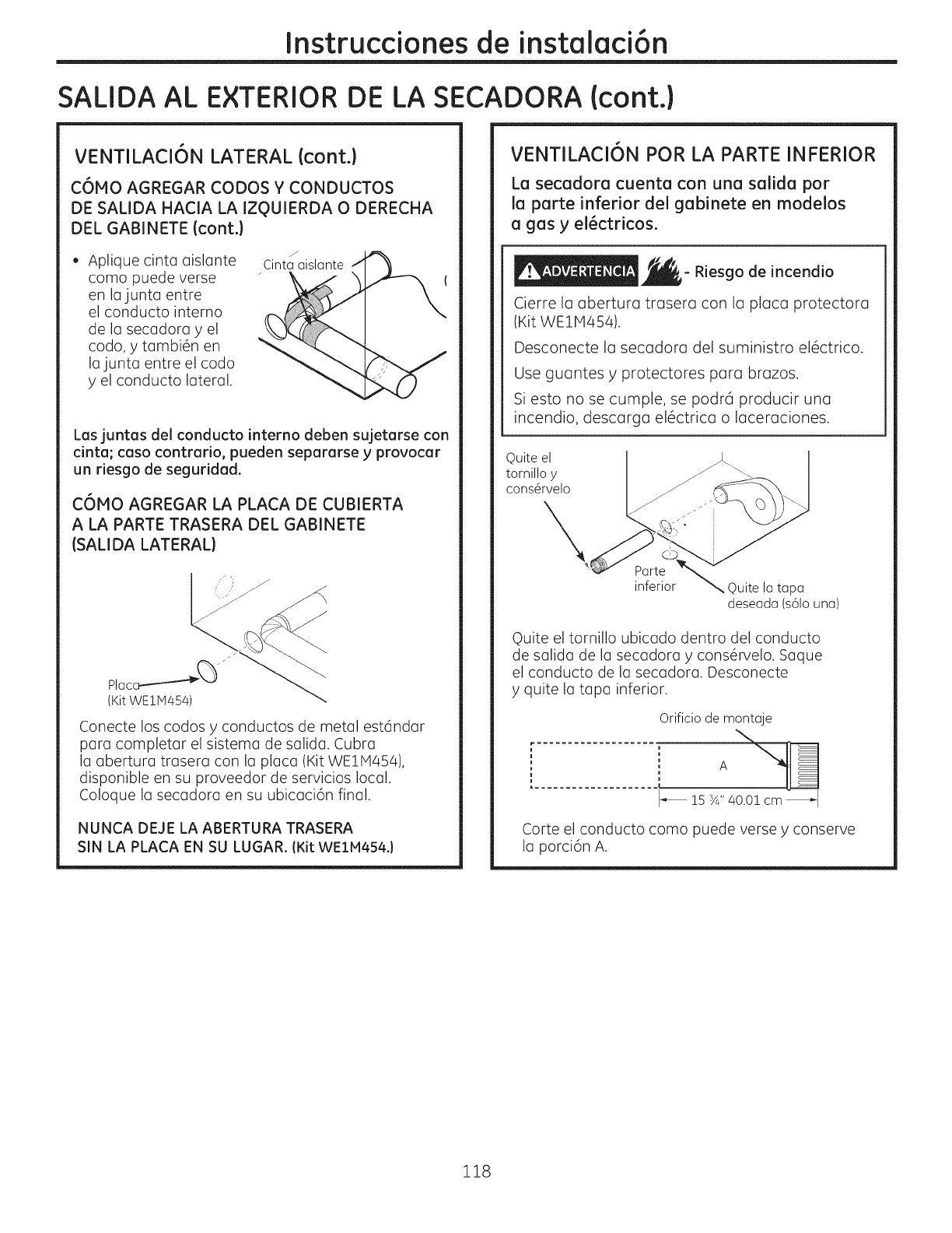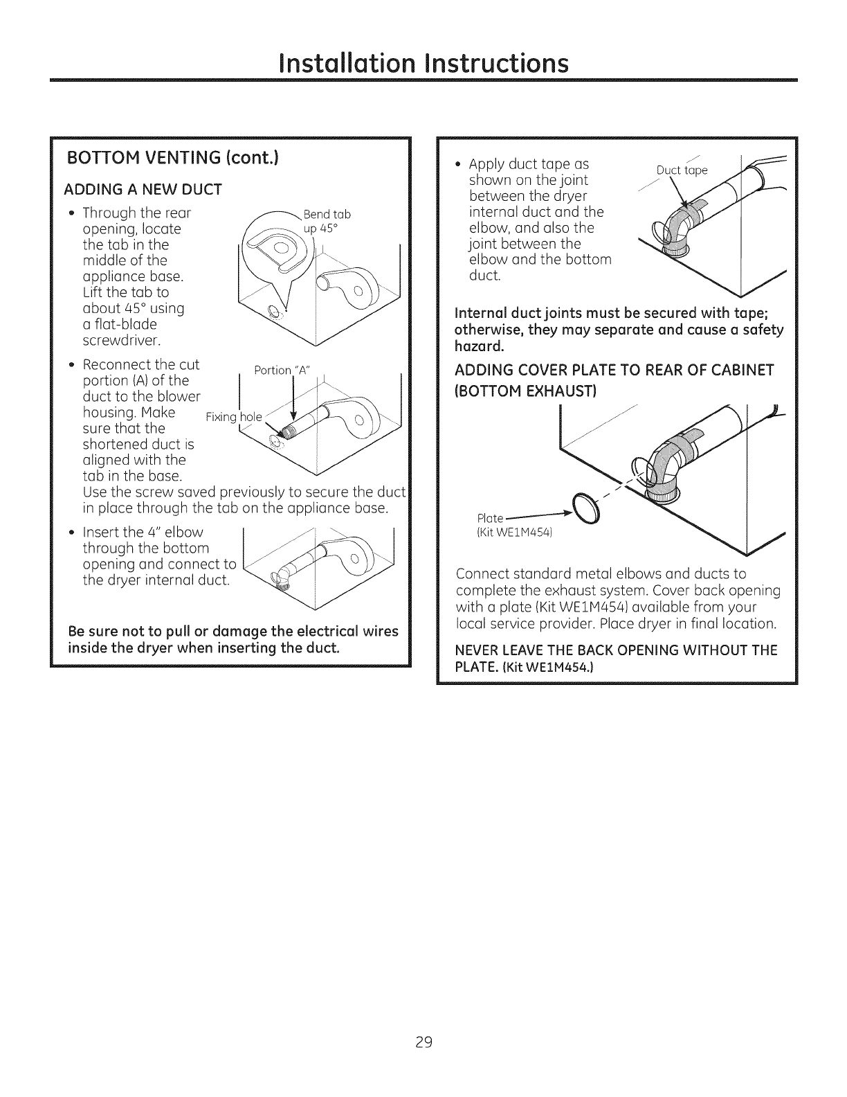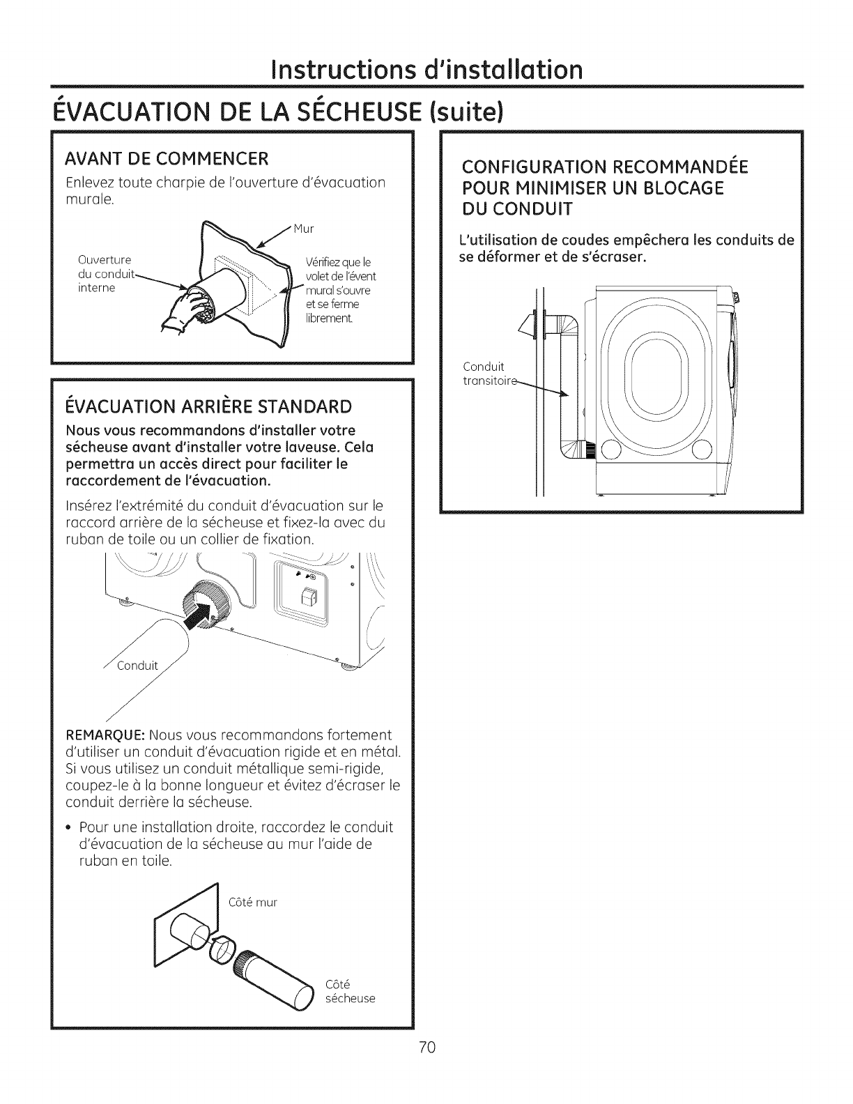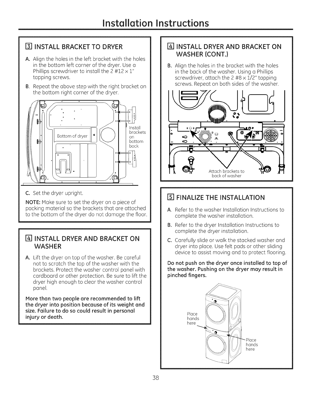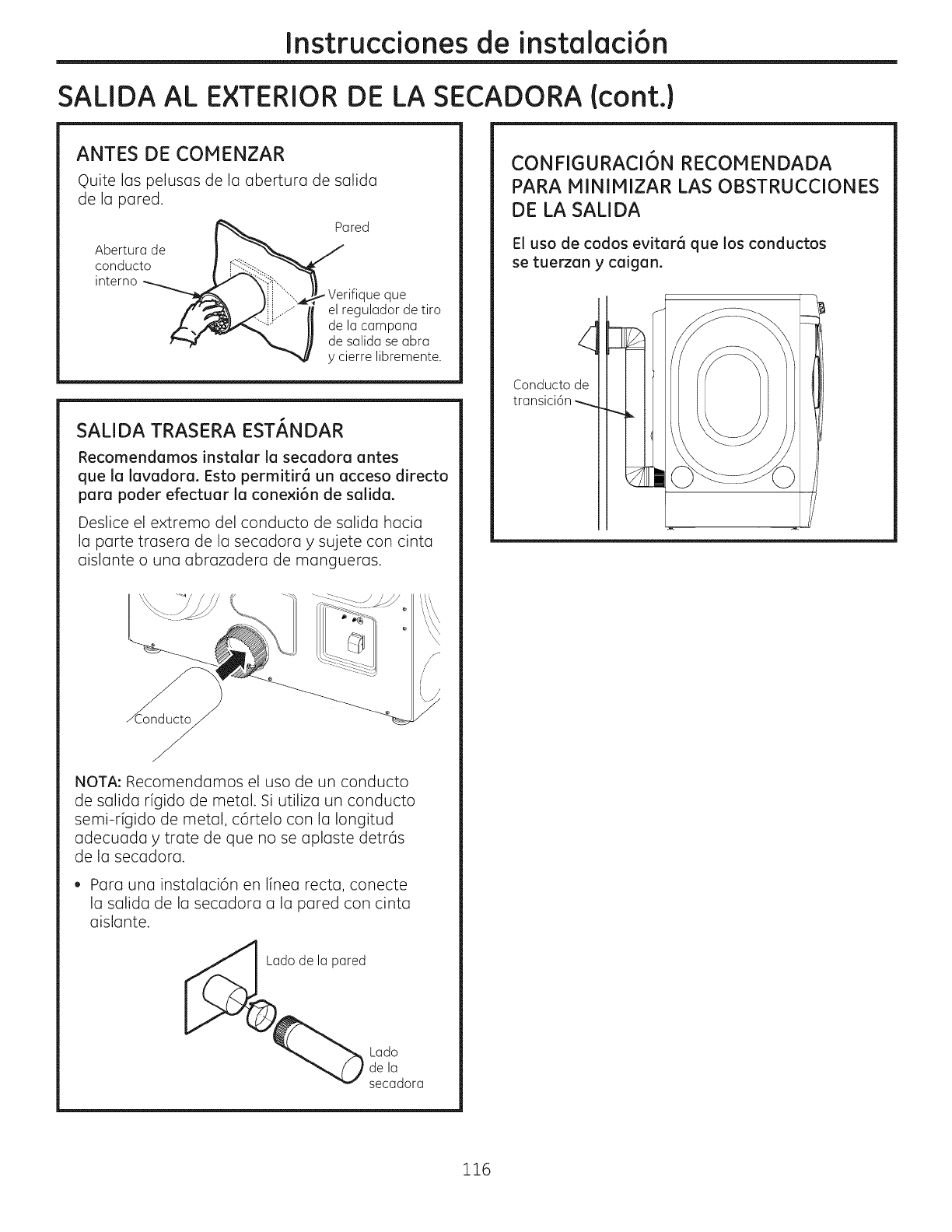 [] Do not store combustible materials, gasoline or other flammable liquids near the dryer. Keep area around the exhaust