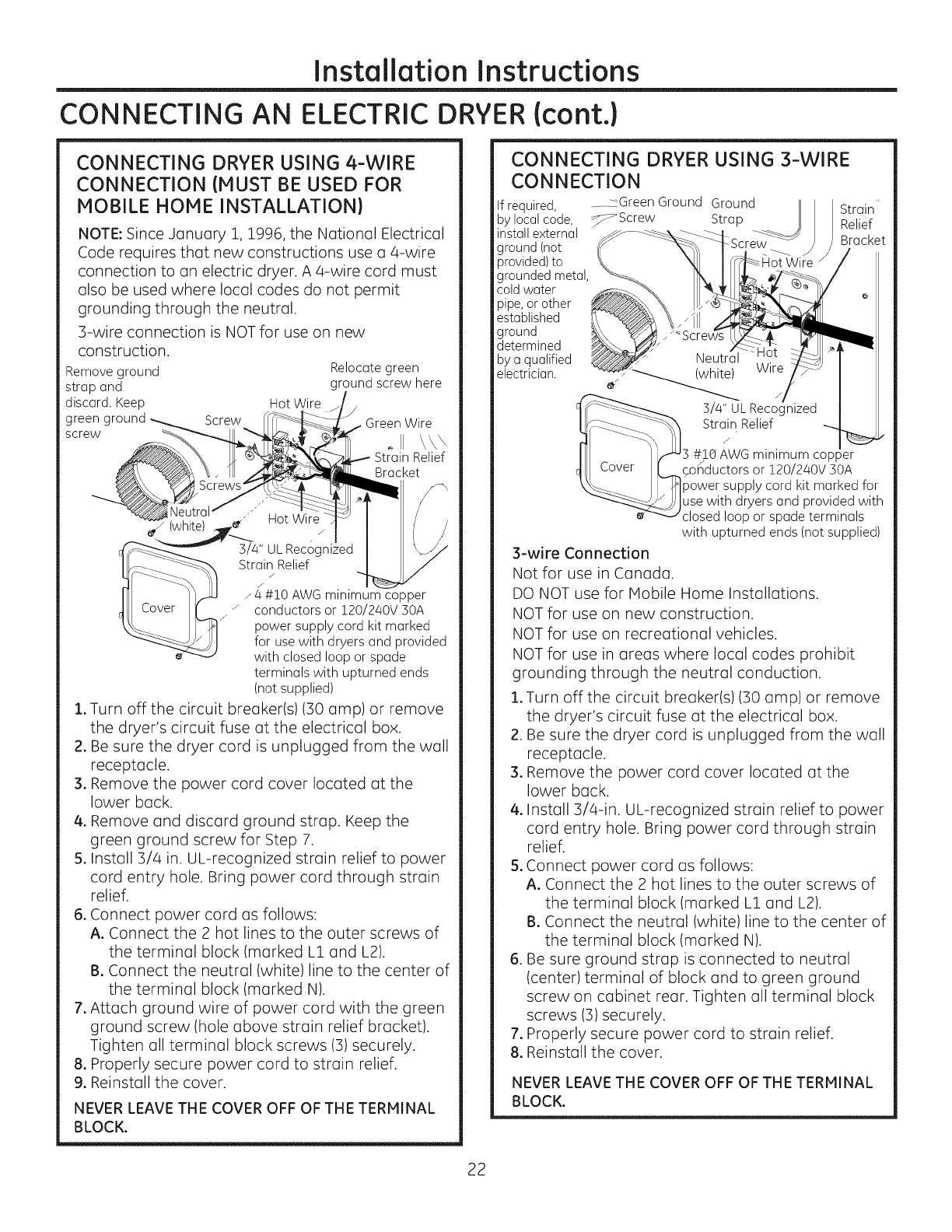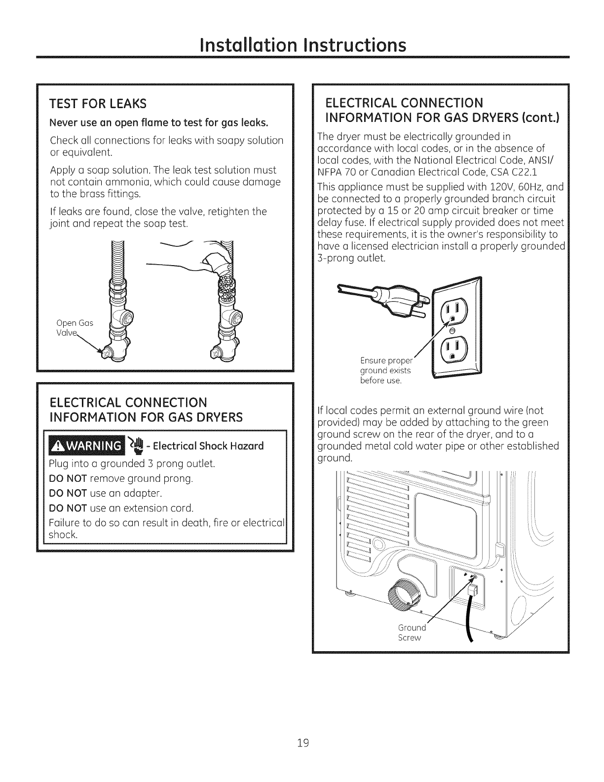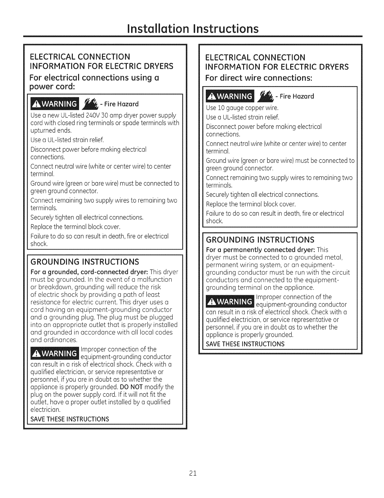 [] See "Electrical Connection" located in the Installation Instructions for grounding instructions.