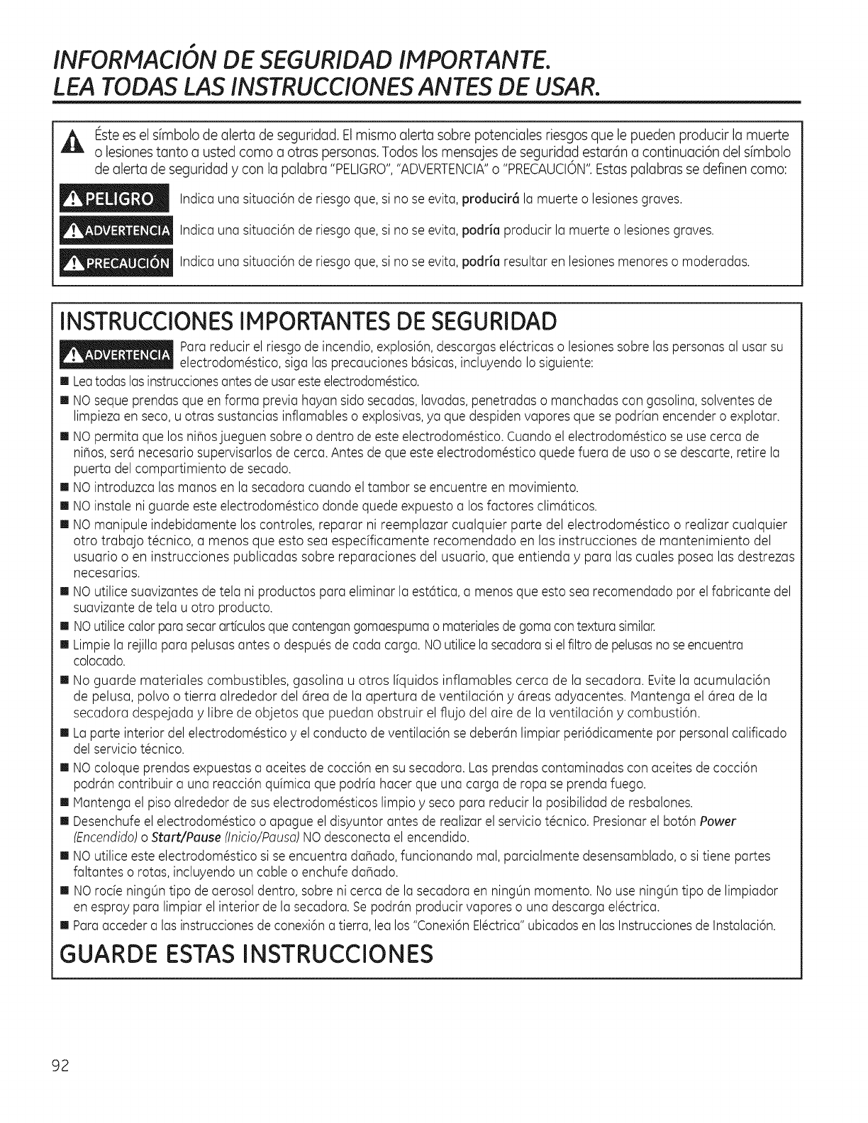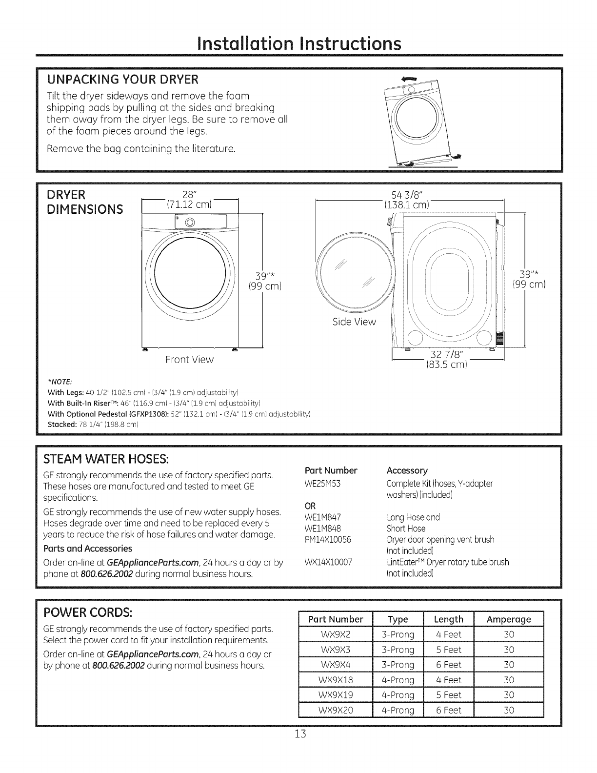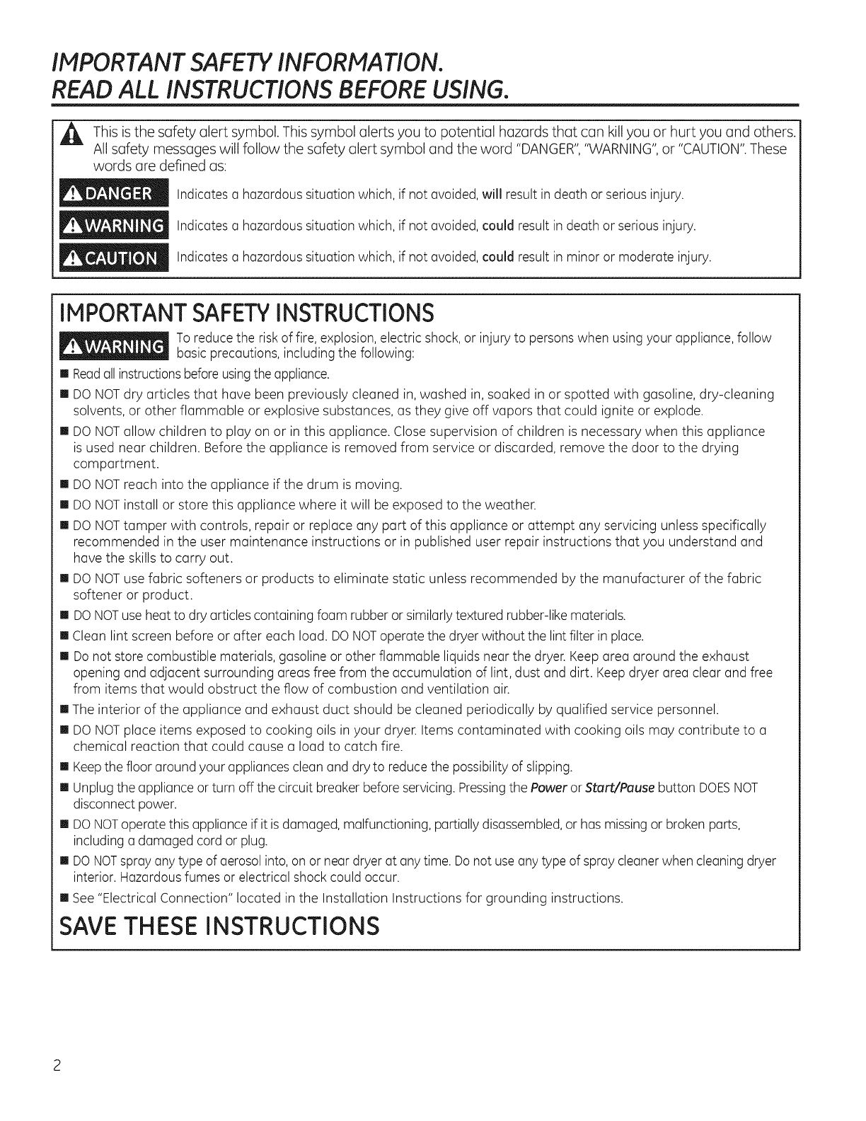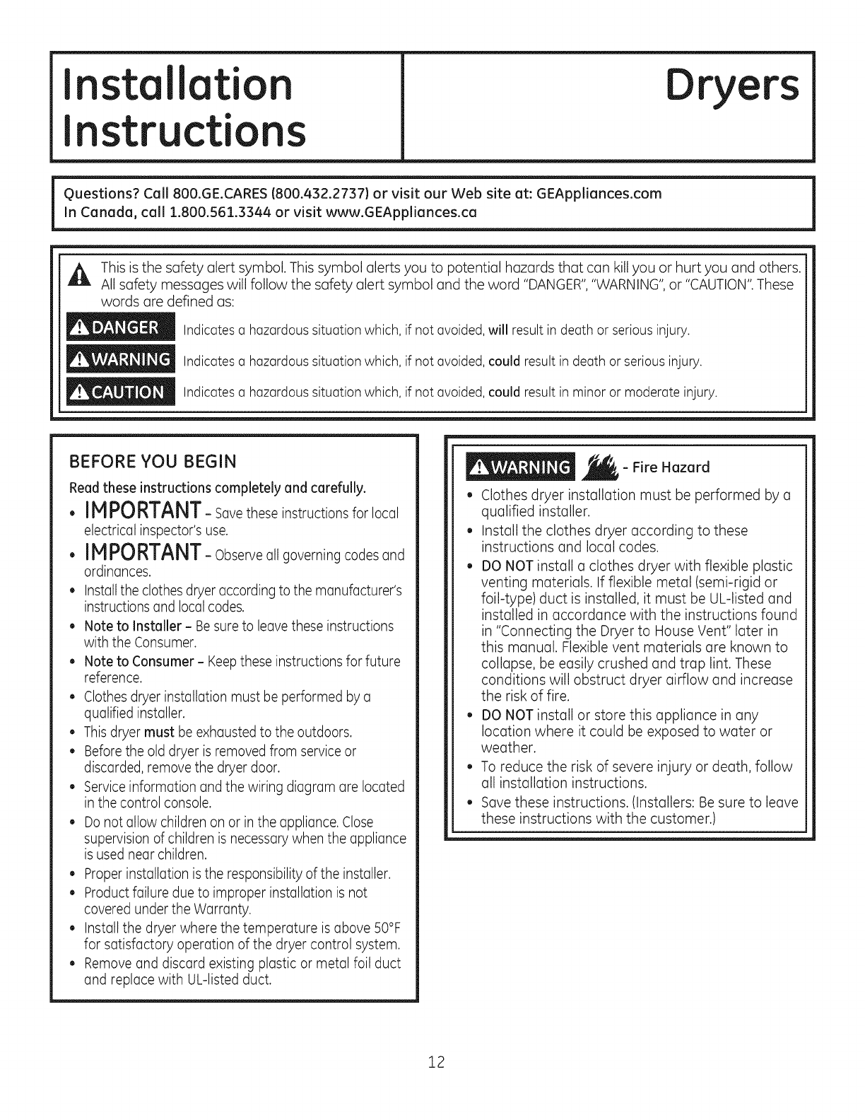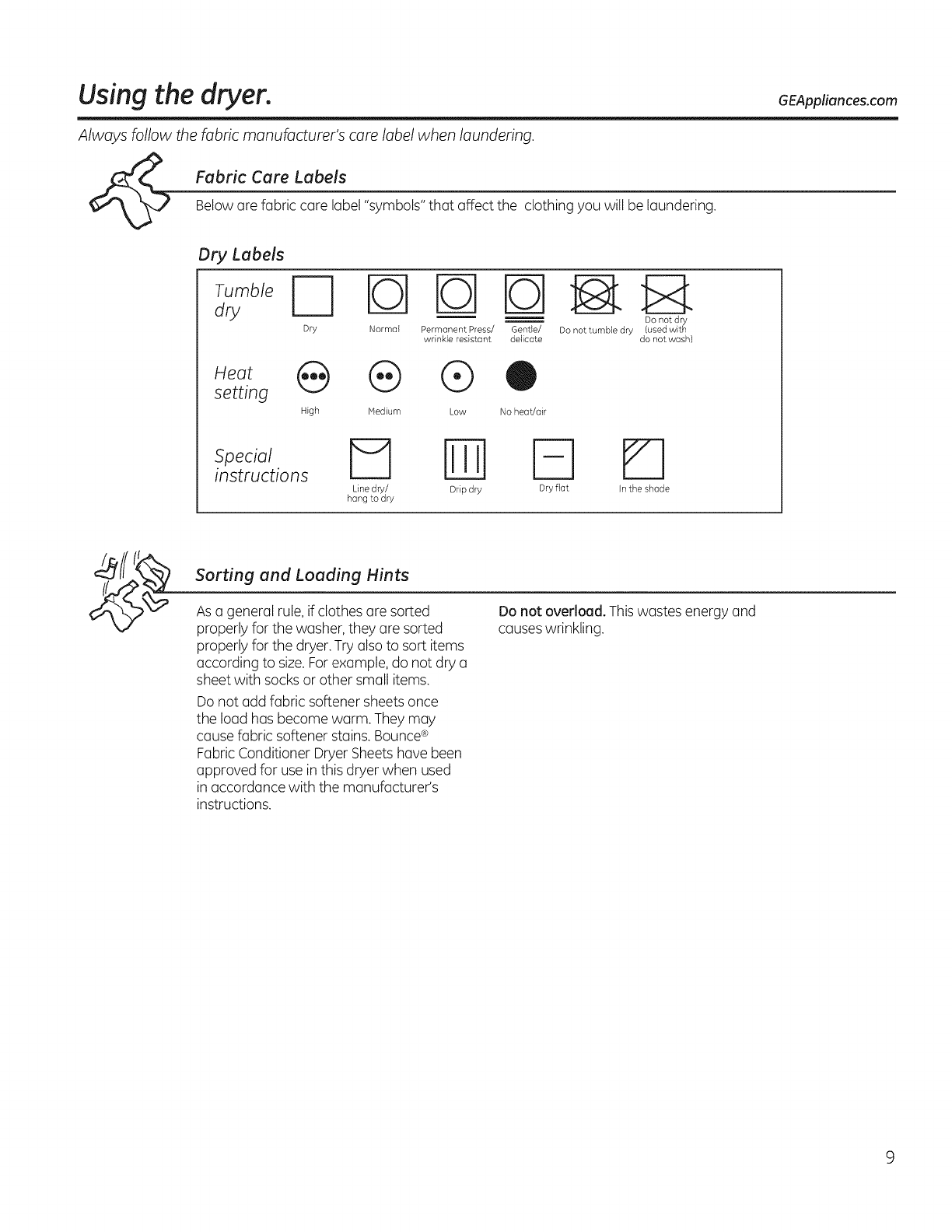 GE GFDR270EH0WW User Manual DRYER Manuals And Guides 1307020L