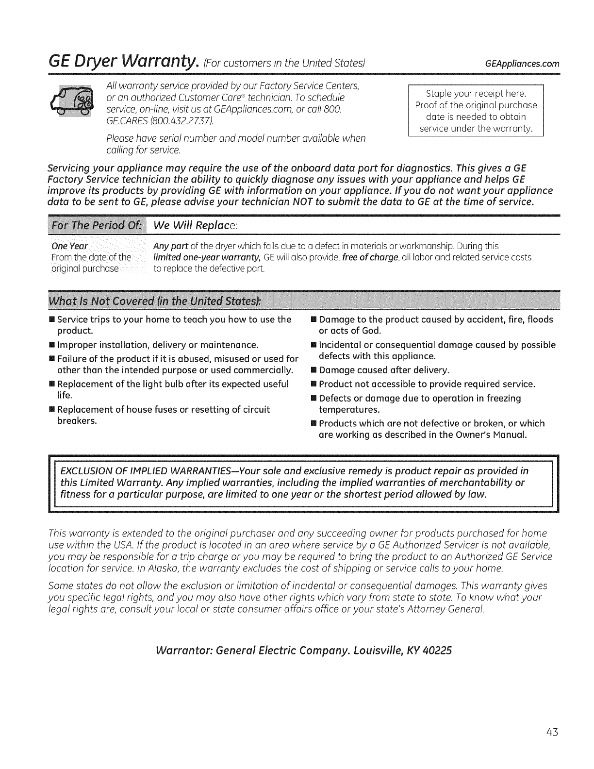 Havea question or need assistance with your appliance? Trythe GEAppliances Website 24 hours a day,