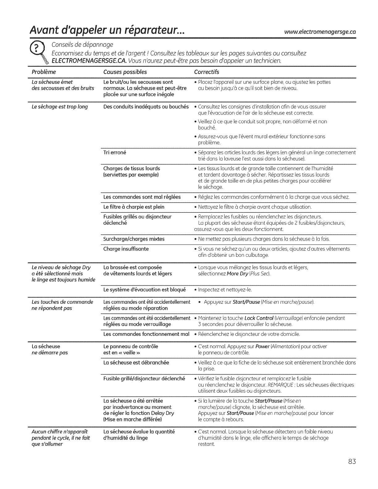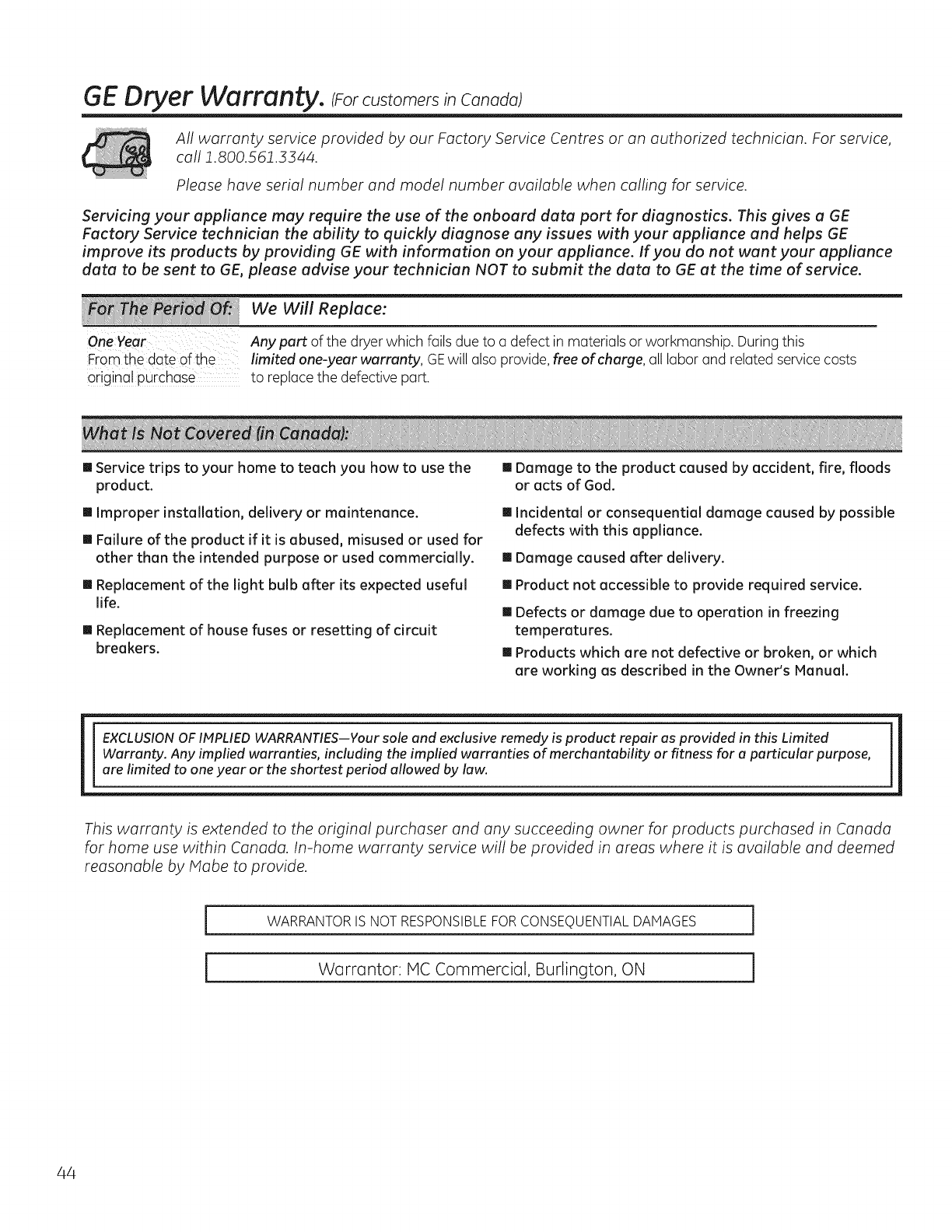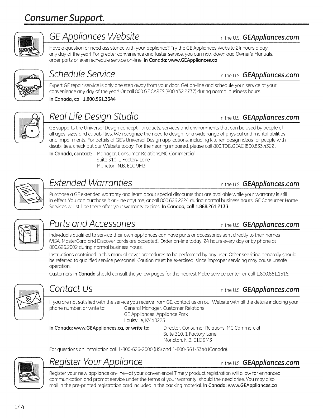 order parts or even schedule service on-line. In Canada: www.GEAppliances.ca