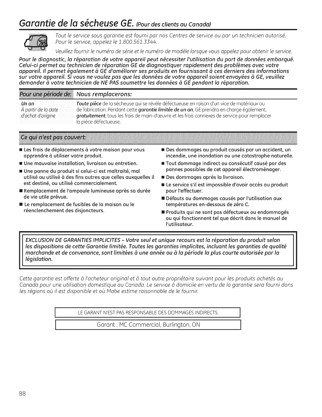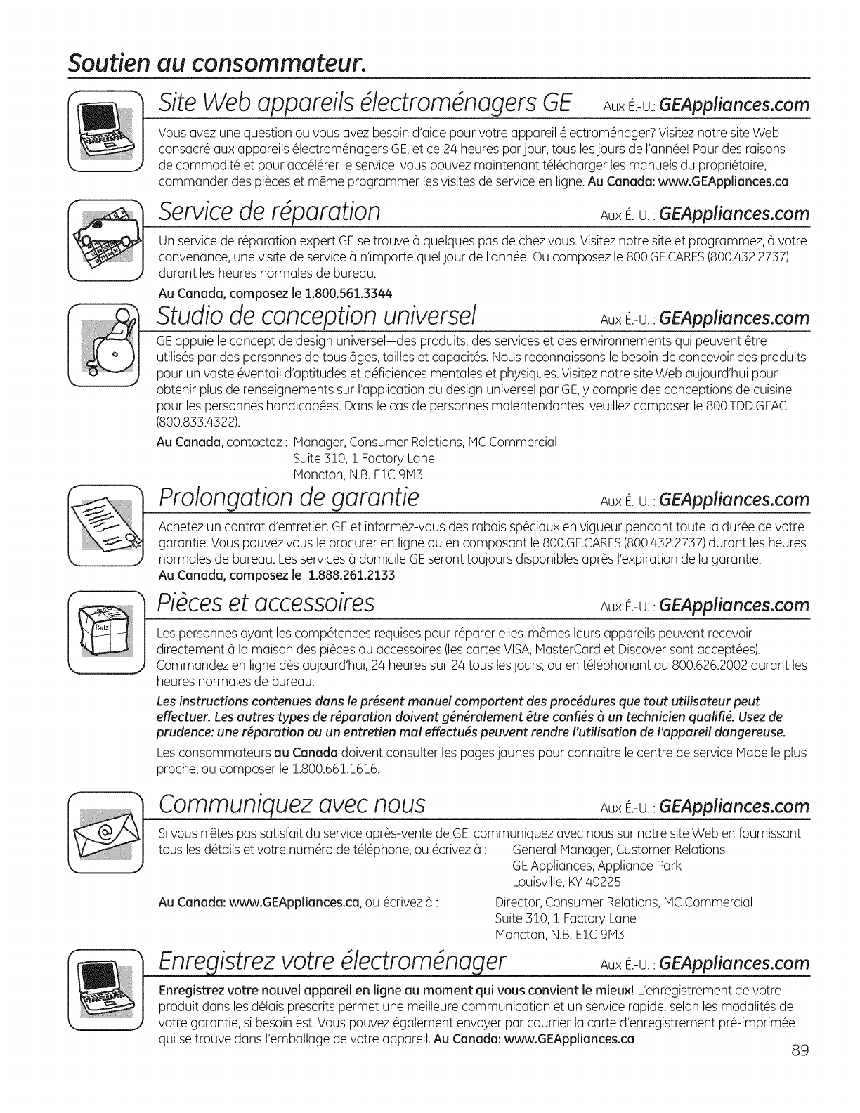 In Canada: www.GEAppliances.ca, or write to: Director,Consumer Relations,ivlc Commercial