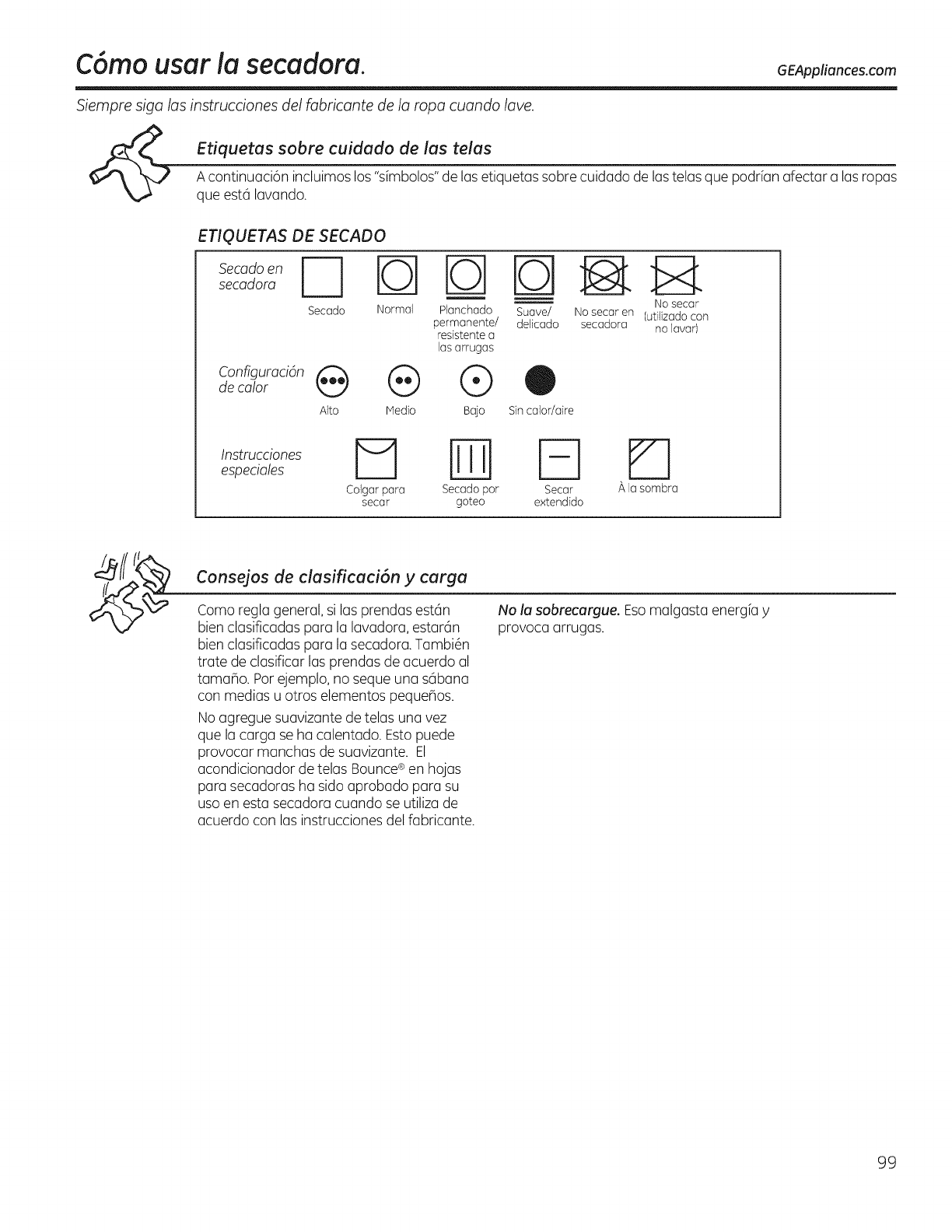 [] DO NOTuse fabric softeners or products to eliminate static unless recommended by the manufacturer of the fabric