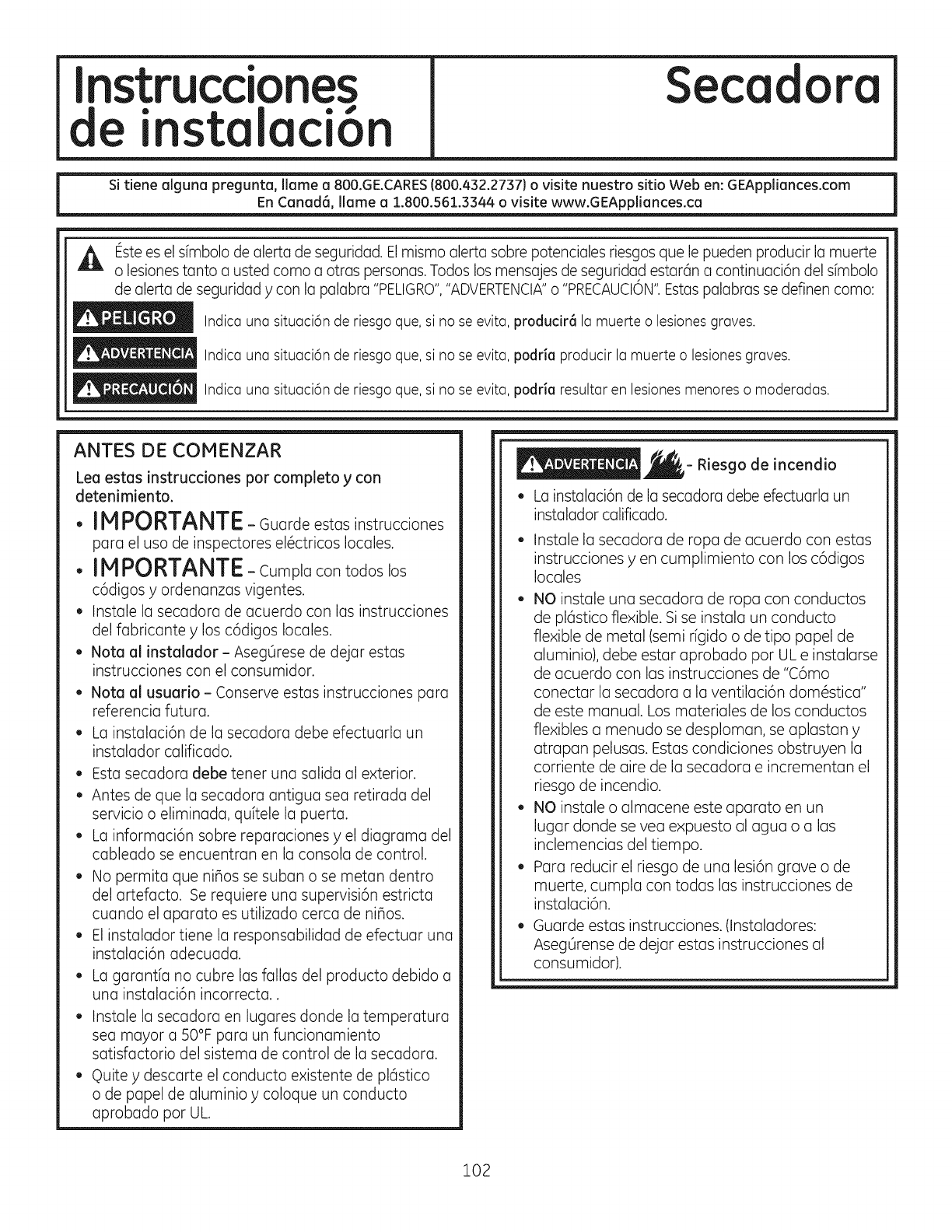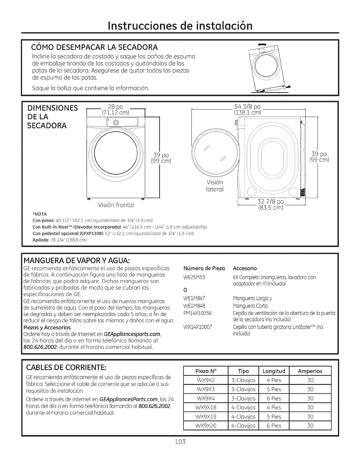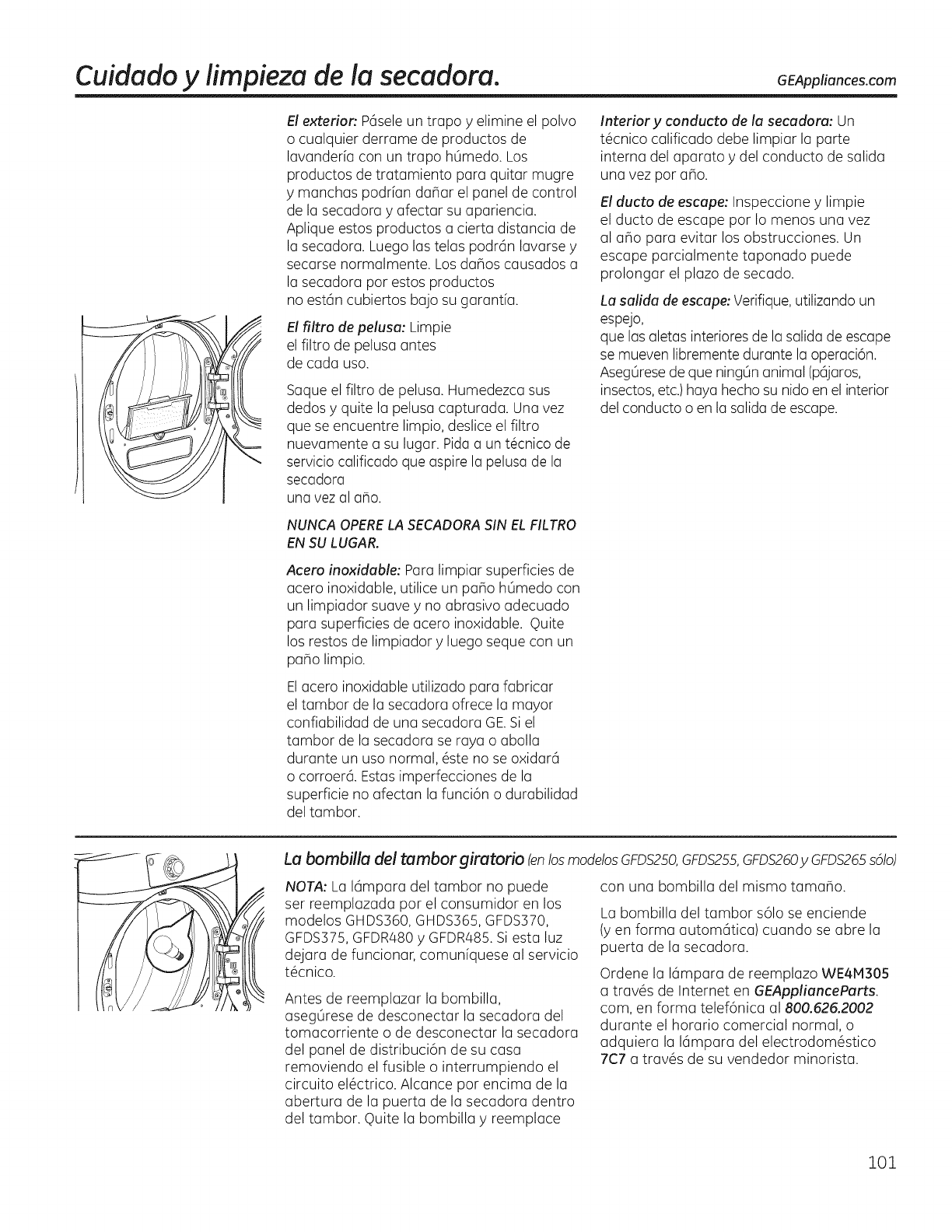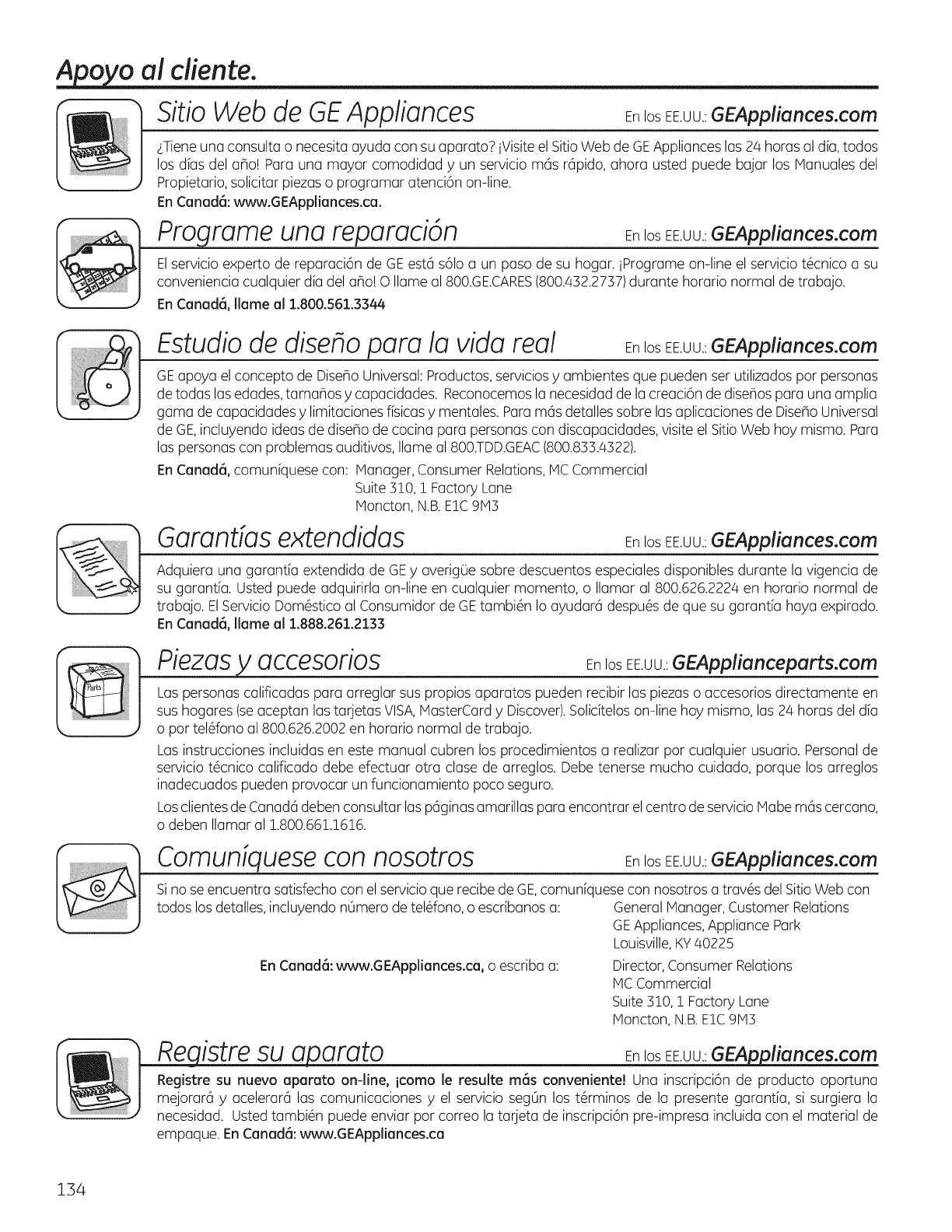 conveniencia cualquier dia del aho! O Ilame a1800.GE.CARES(800.432.2737)durante horario normal de trabajo.