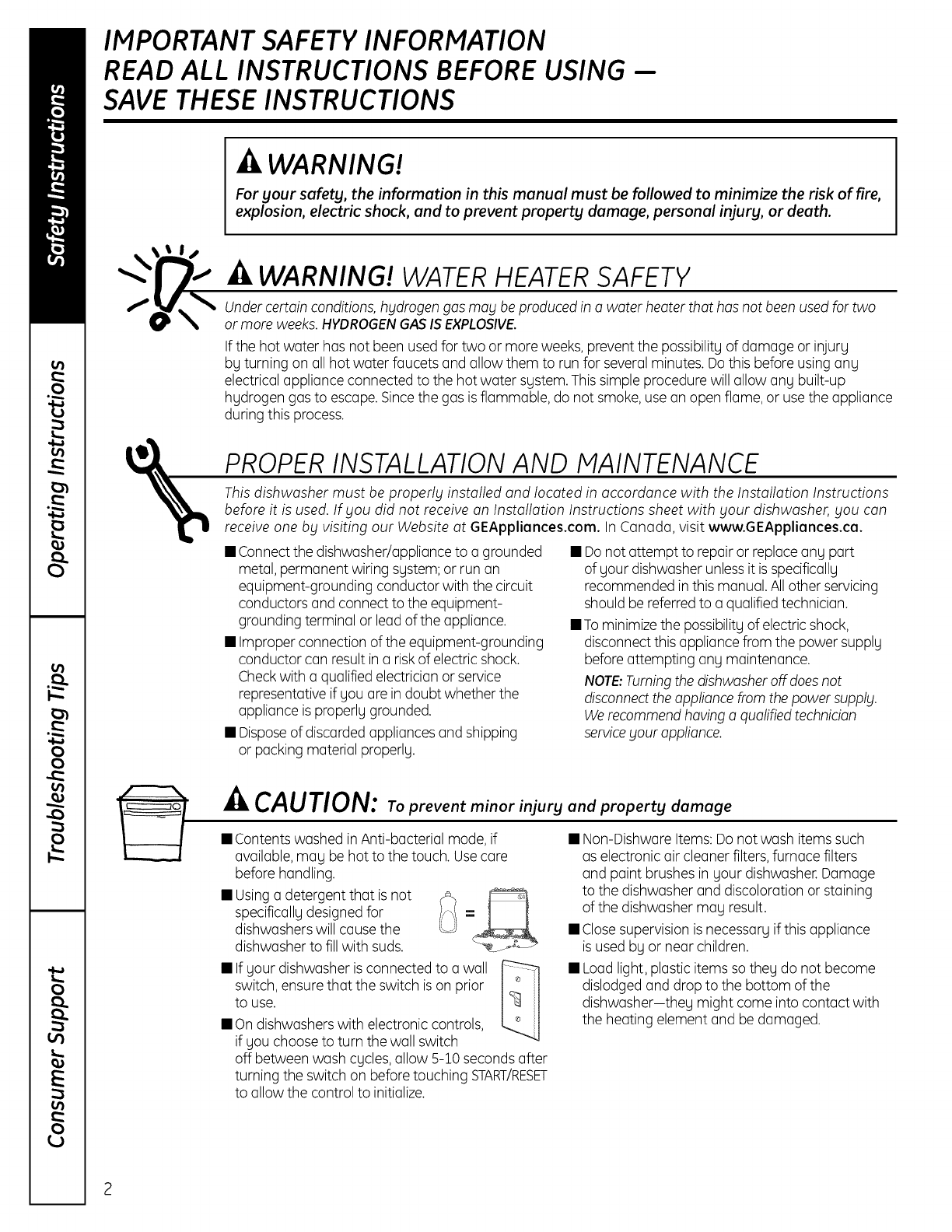 GE Dishwasher Manual L0909569 GE Dishwasher Owner's Manual, GE Dishwasher installation guides