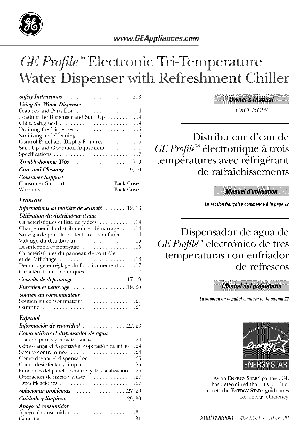 User Manual: GE GXCF35GBS GXCF35GBS GE WATER DISPENSER - Manuals and Guides View the owners manual for your GE WATER DISPENSER #GXCF35GBS. Home:Plumbing Parts:GE Parts:GE WATER DISPENSER Manual
