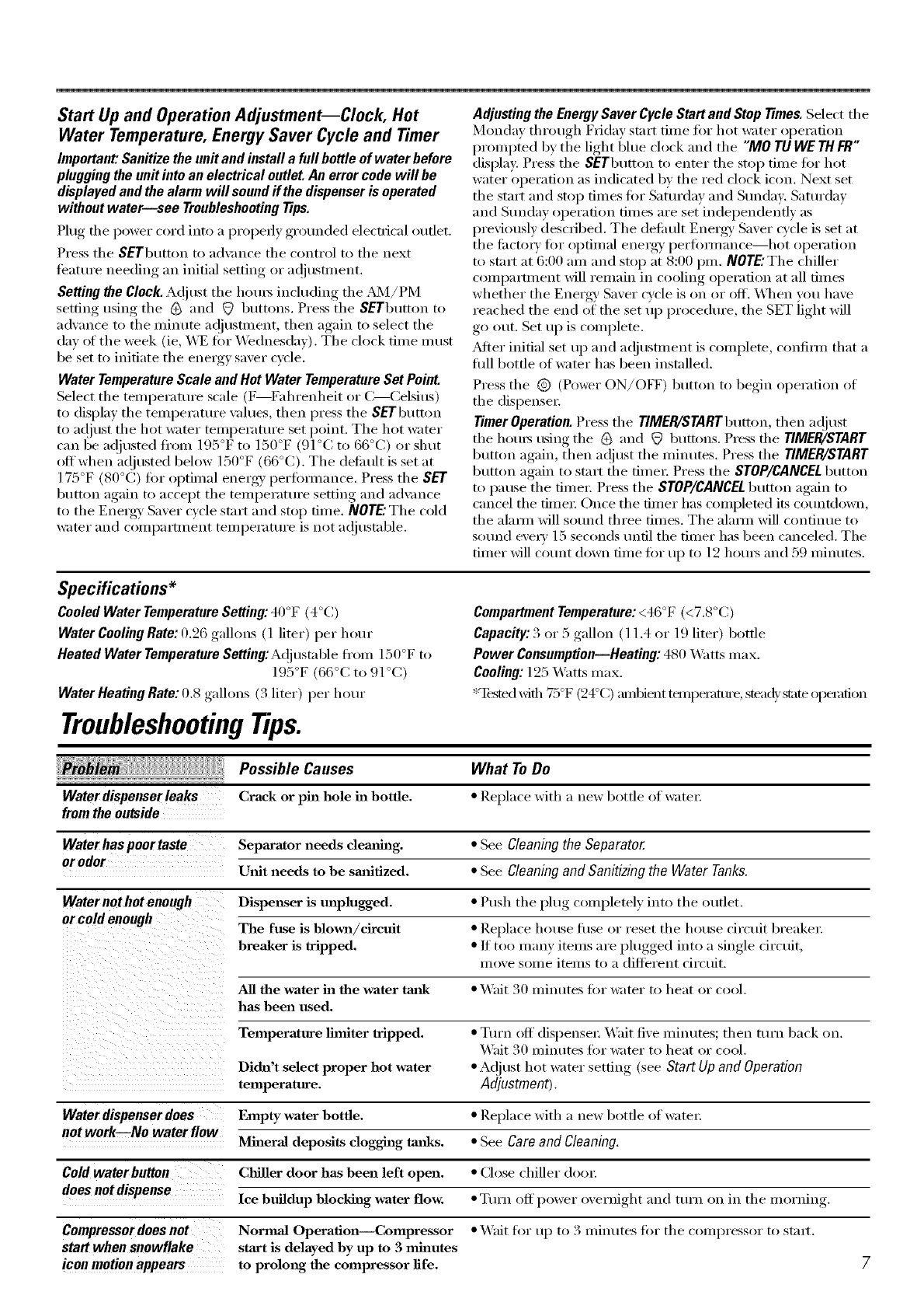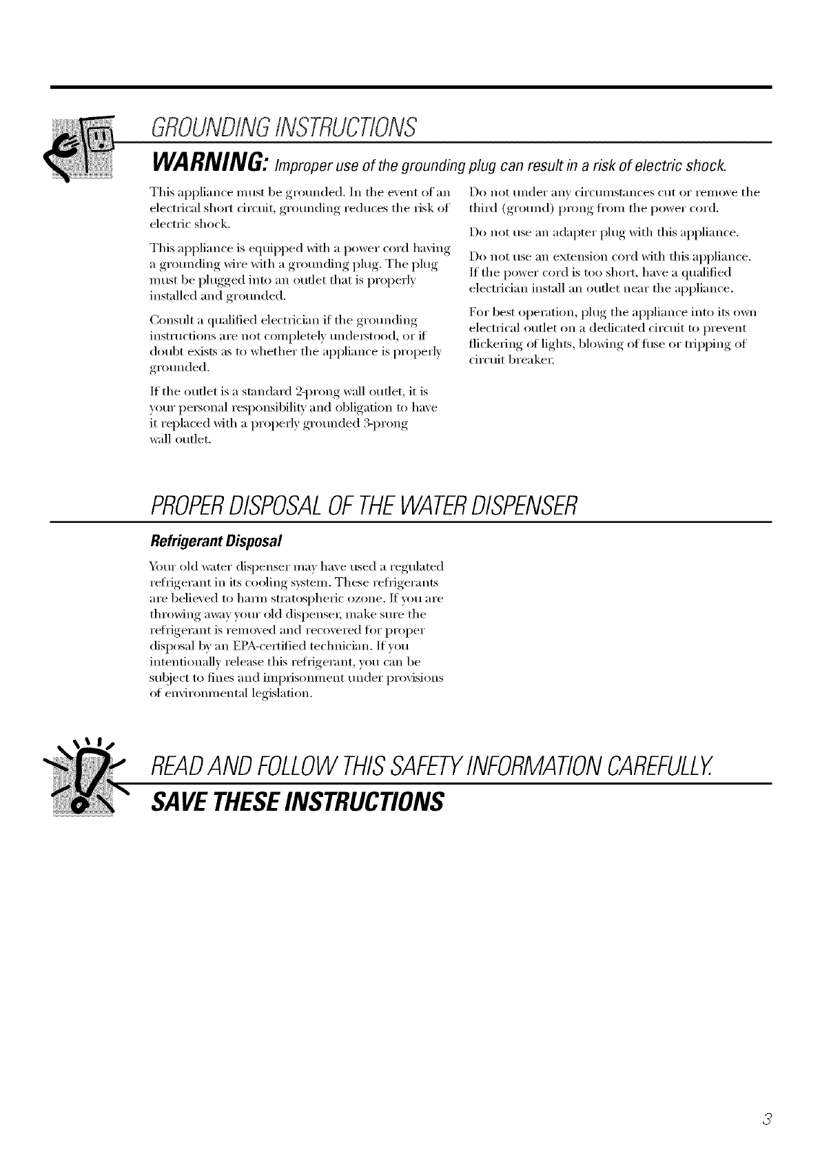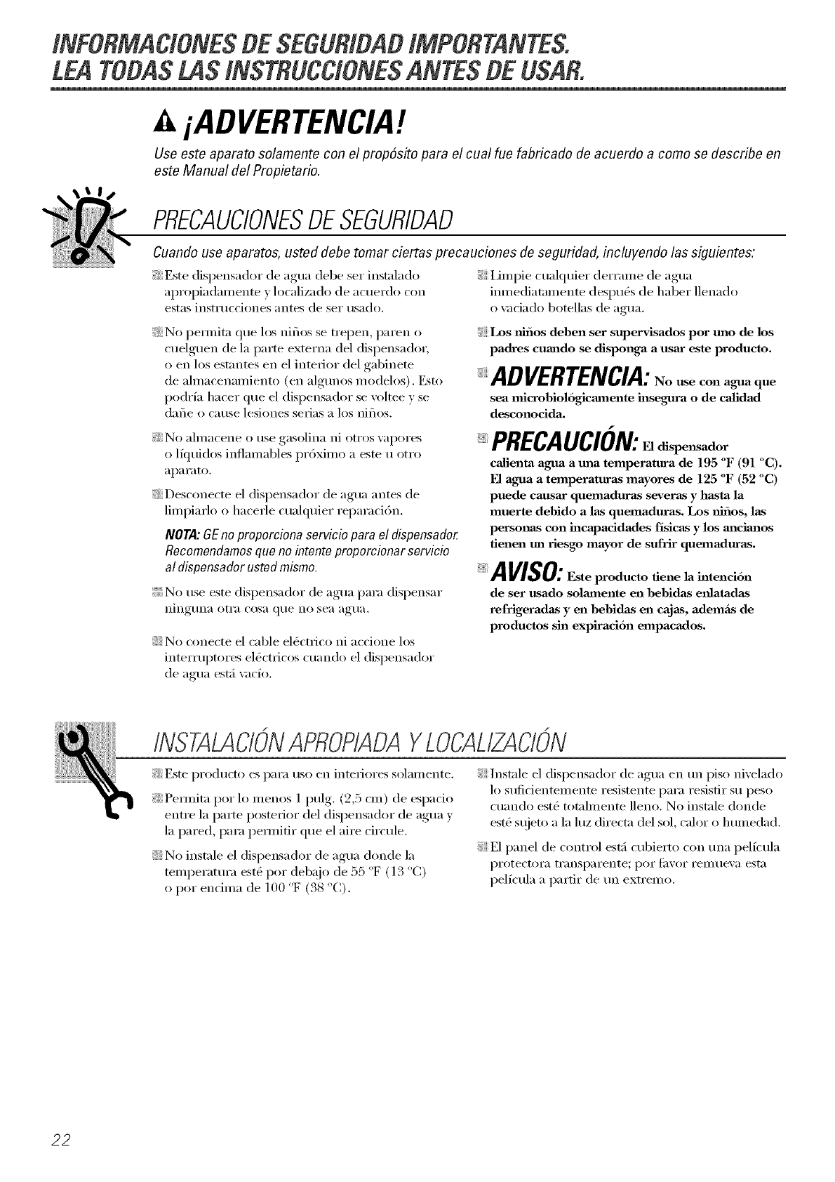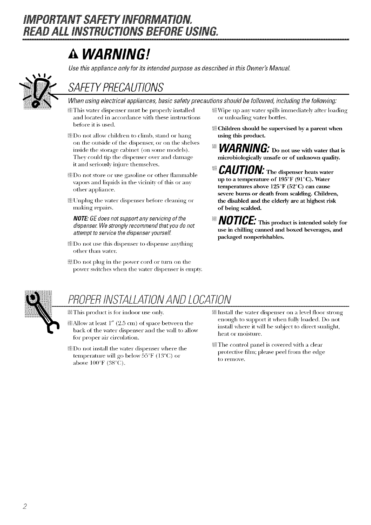 GE Water Dispenser Manual L0502322 GE Water Dispenser Owner's Manual, GE Water Dispenser installation guides