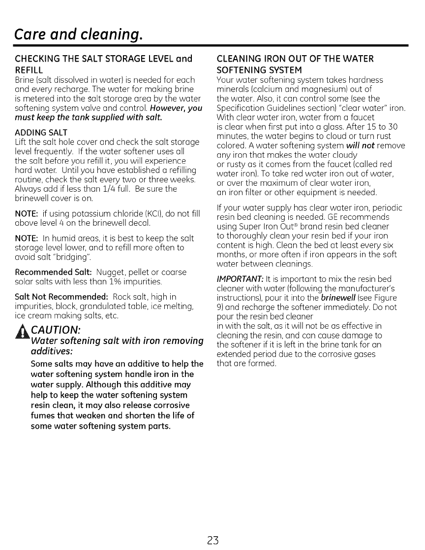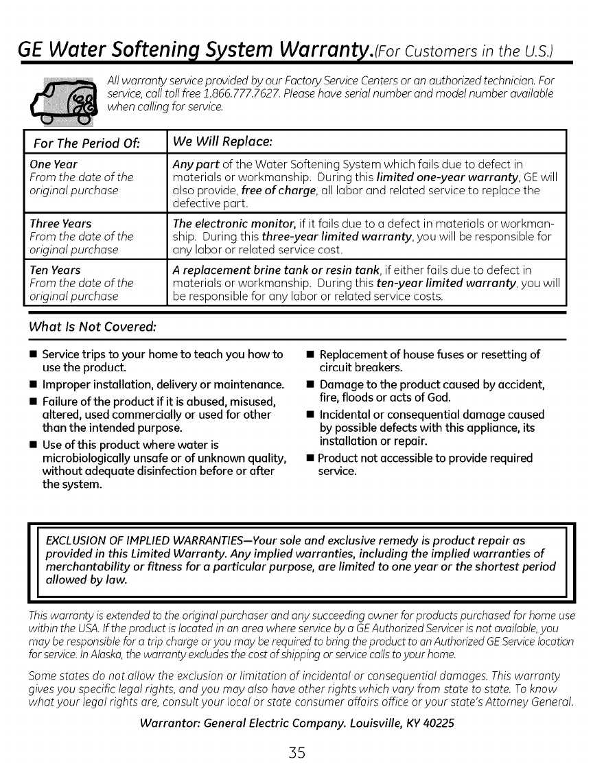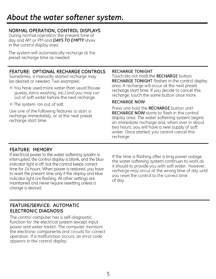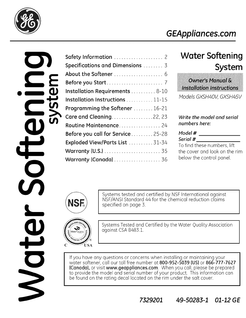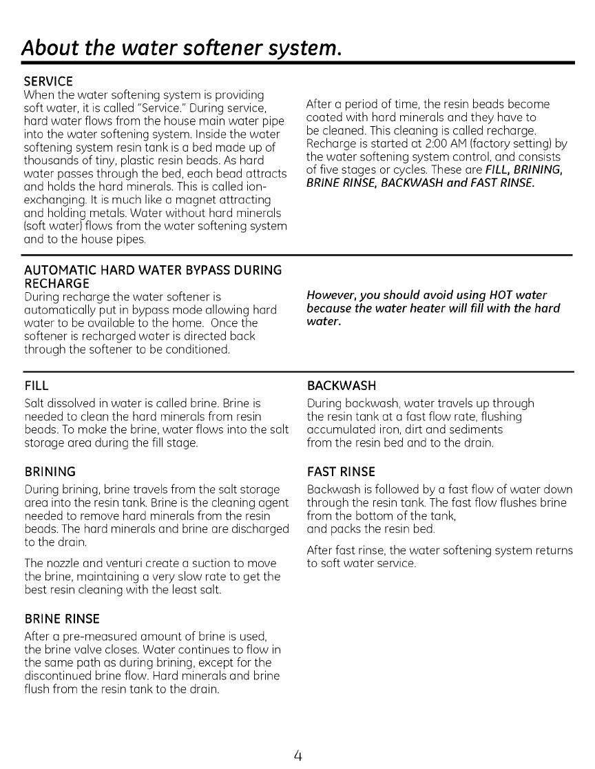 GE GXSH40V00 User Manual WATER SOFTENER Manuals And Guides 1206467L