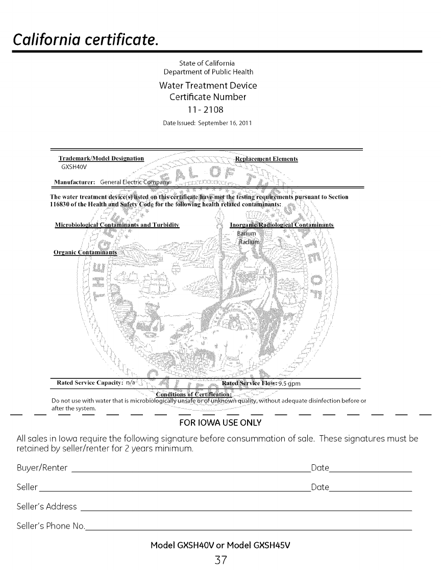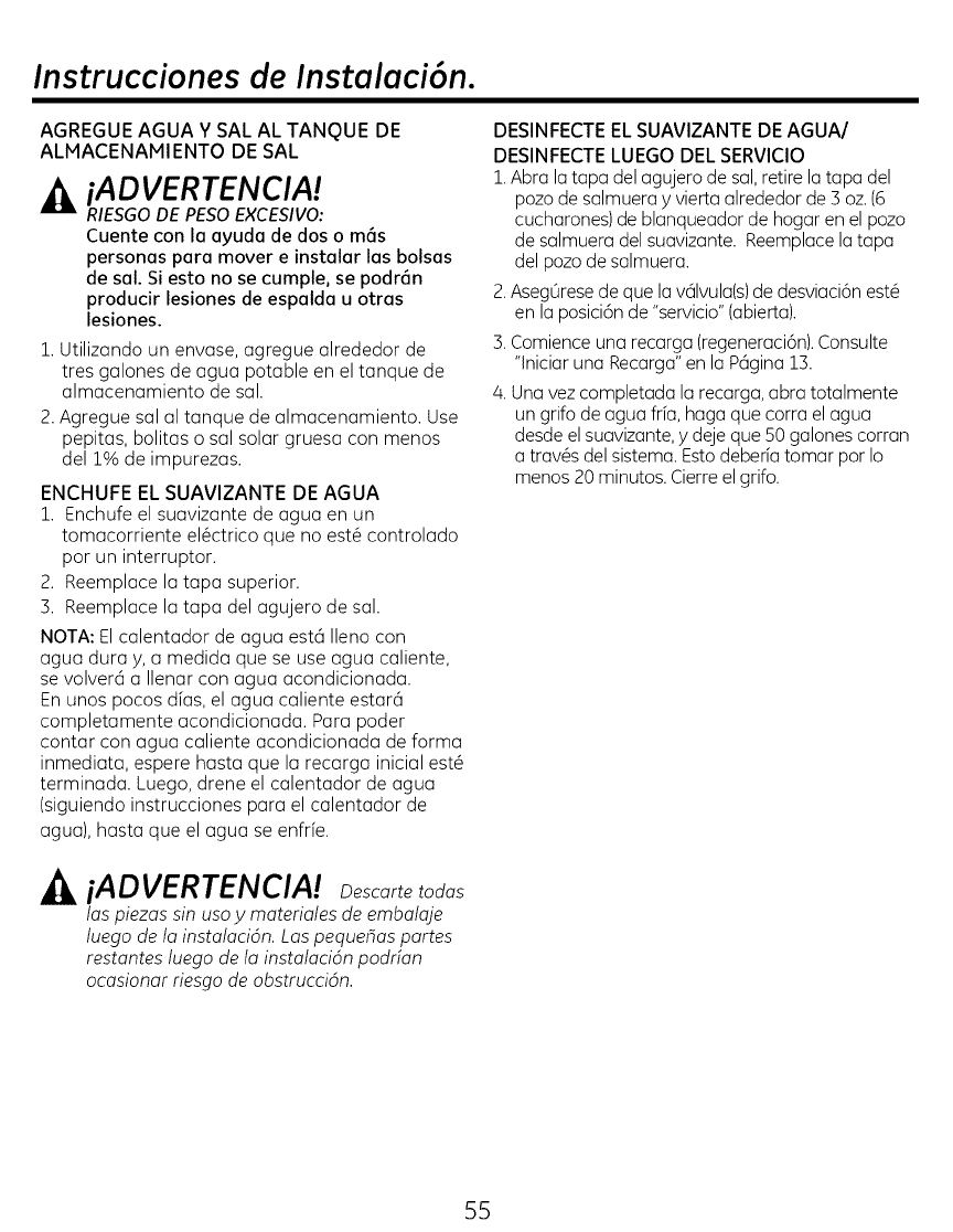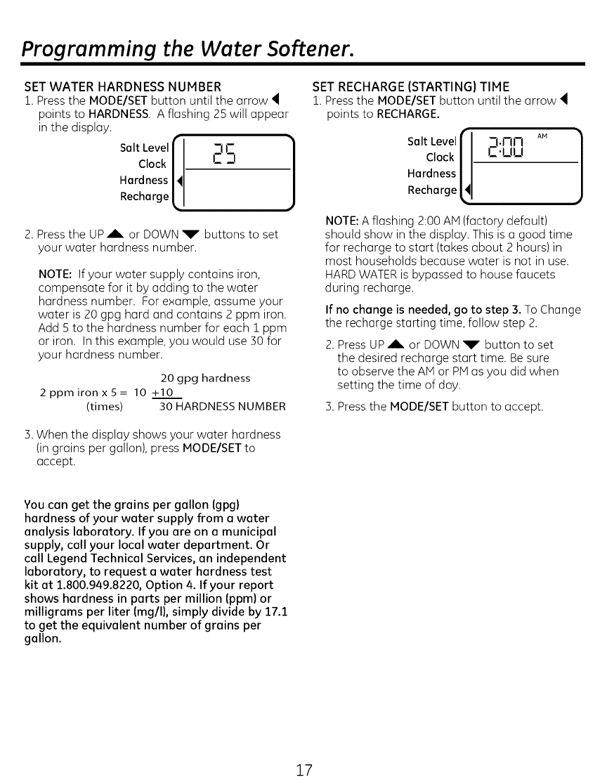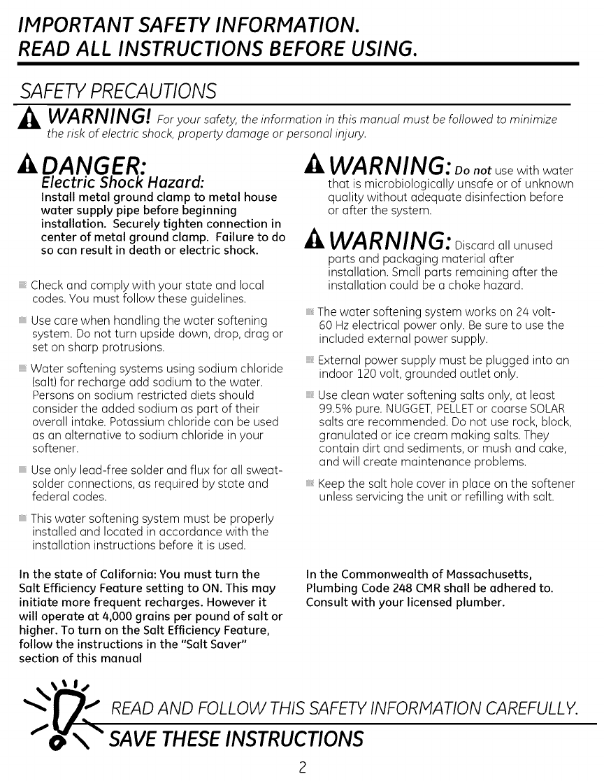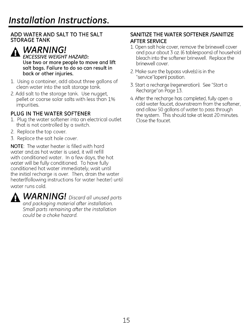 GE GXSH40V00 User Manual WATER SOFTENER Manuals And Guides 1206467L