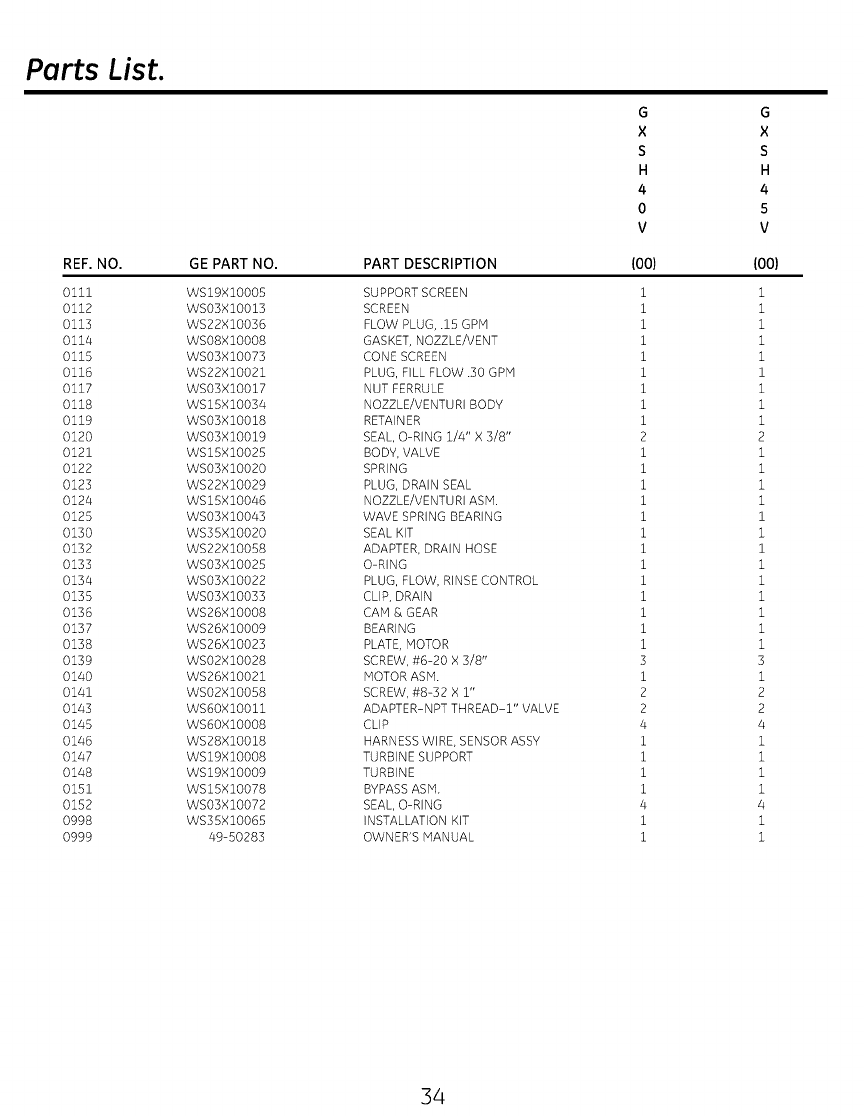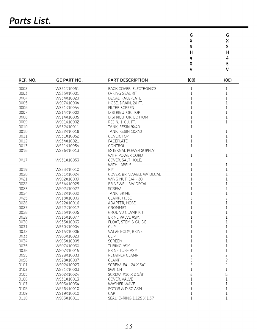 User Manual: GE GXSH40V00 GXSH40V00 GE WATER SOFTENER - Manuals and Guides View the owners manual for your GE WATER SOFTENER #GXSH40V00. Home:Plumbing Parts:GE Parts:GE WATER SOFTENER Manual