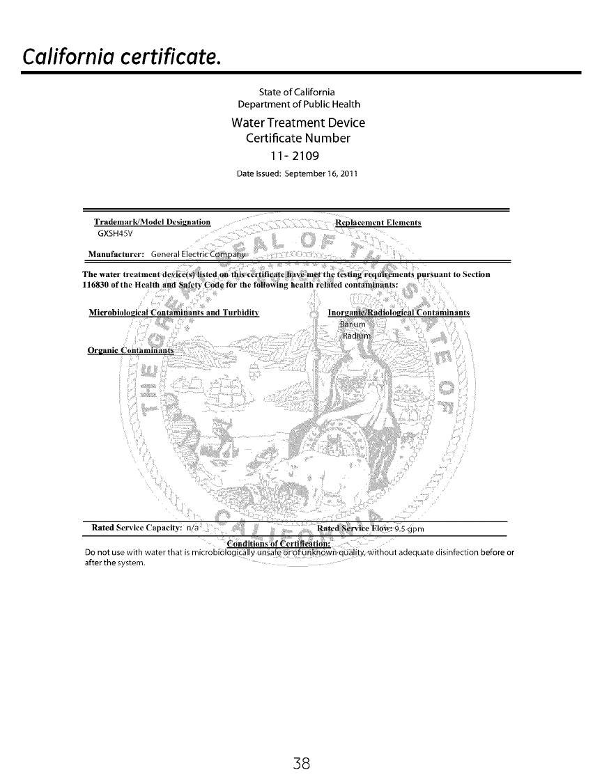 NSF/ANS!Standard 44 for the chemical reduction claims