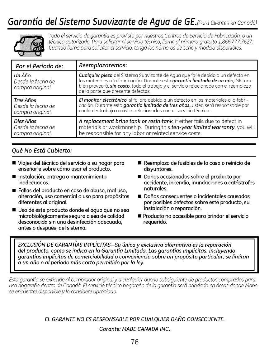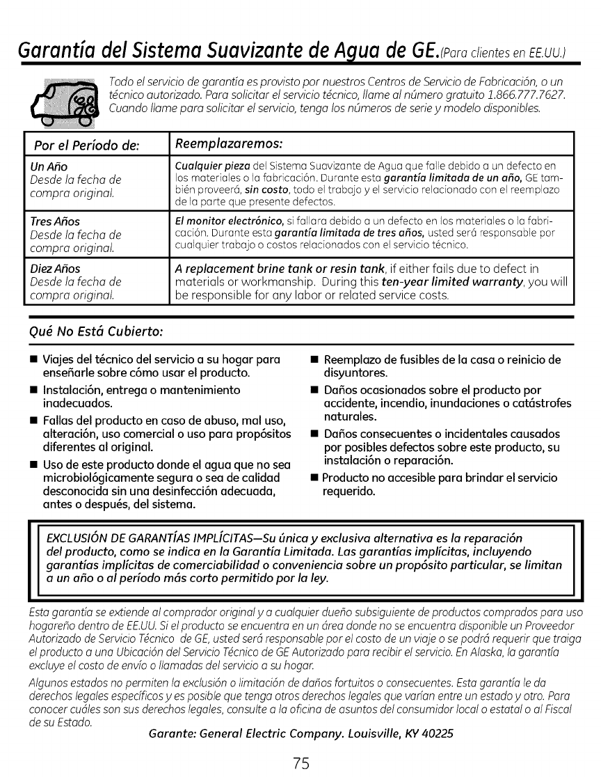durante horas normales de ofidna. GEConsumer Home Services estar6 a0n ahi cuando su garantia