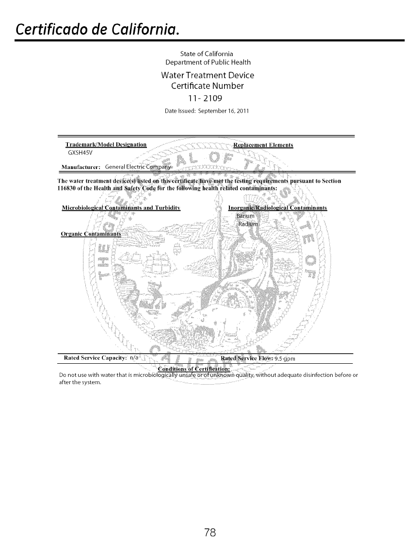 Rated Serv ce Capac ty n/a Ratcd:Serviee Flow: 9.5 gpm