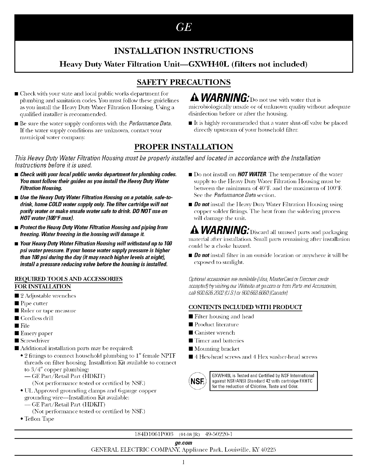 User Manual: GE GXWH40L GXWH40L GE WATER SYSTEMS - Manuals and Guides View the owners manual for your GE WATER SYSTEMS #GXWH40L. Home:Plumbing Parts:GE Parts:GE WATER SYSTEMS Manual