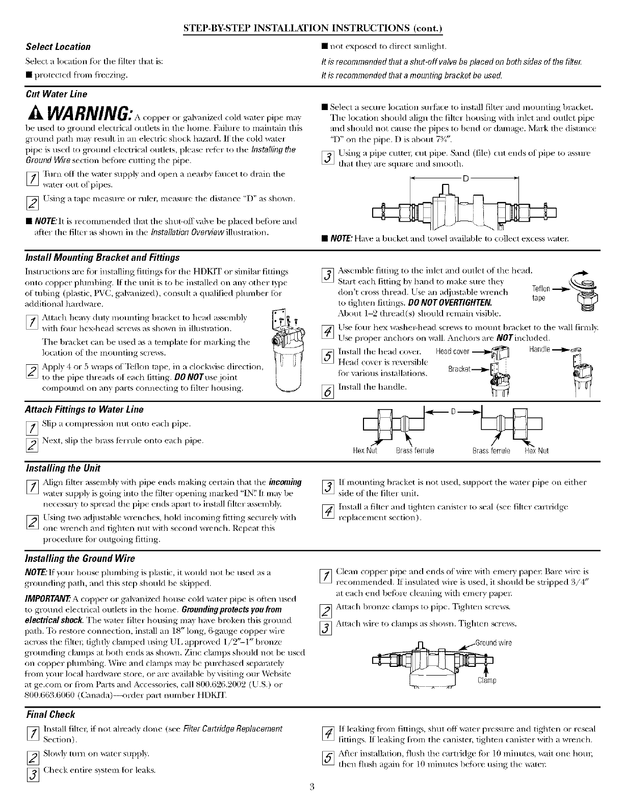 as vou install th( I Iem3 Do1)Water Filtration tIousing. [7sing a