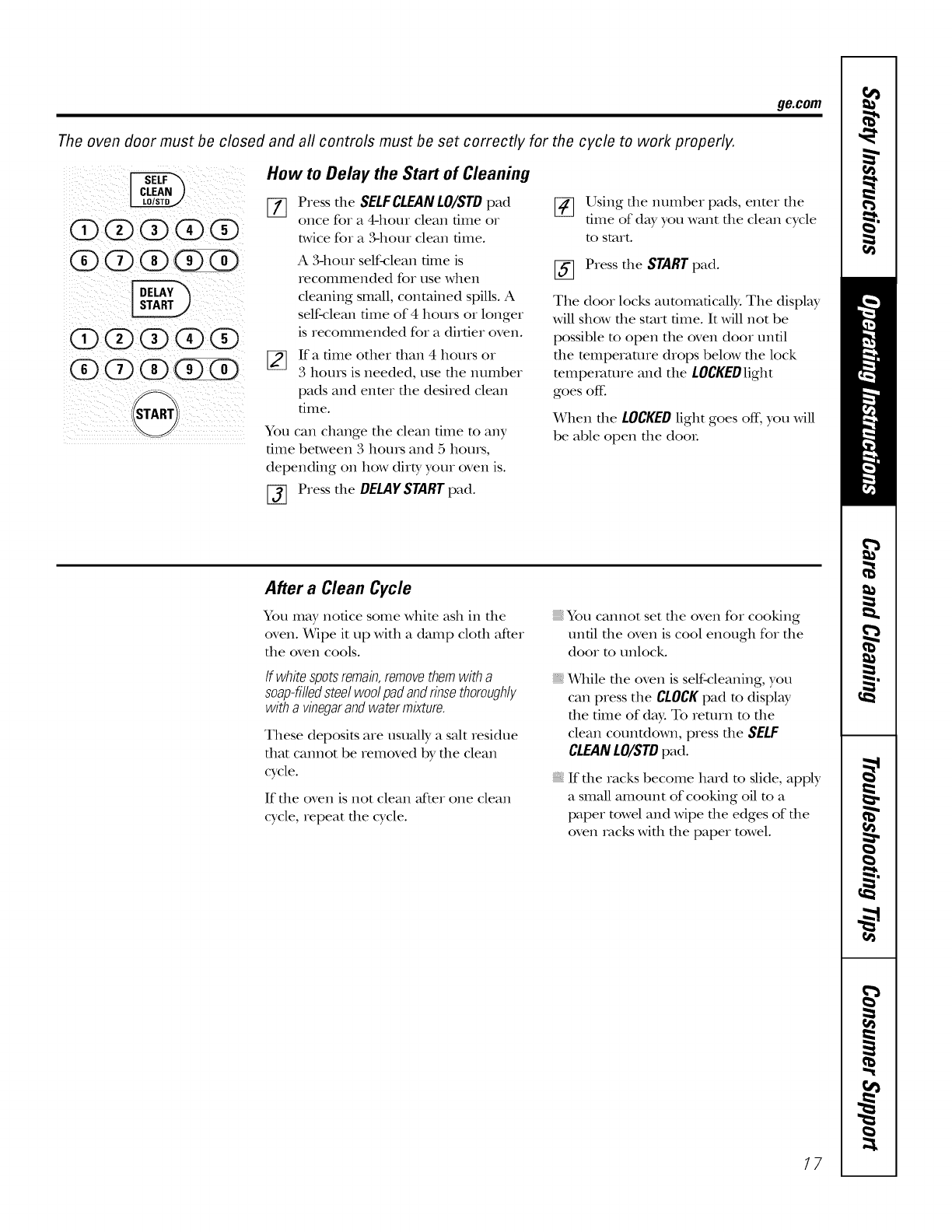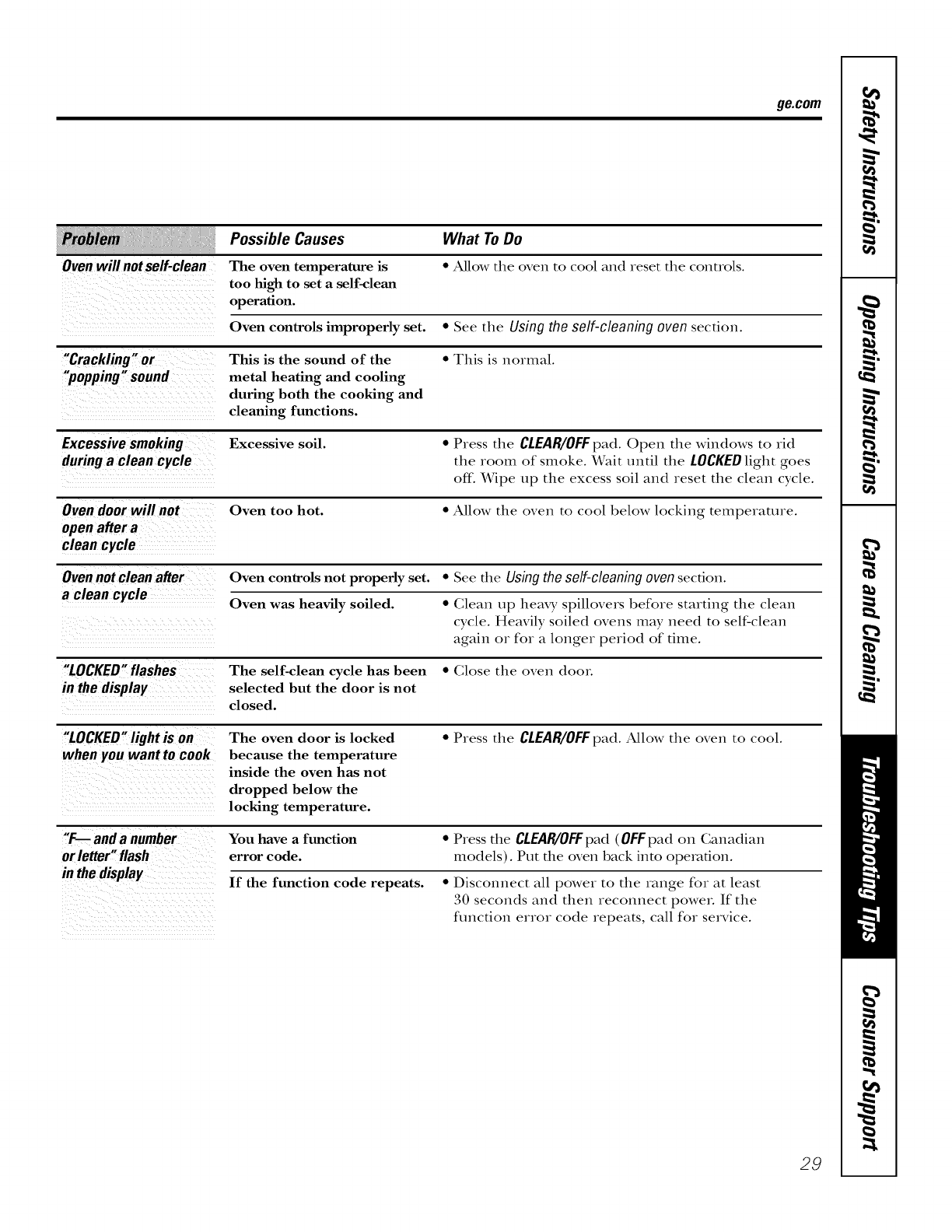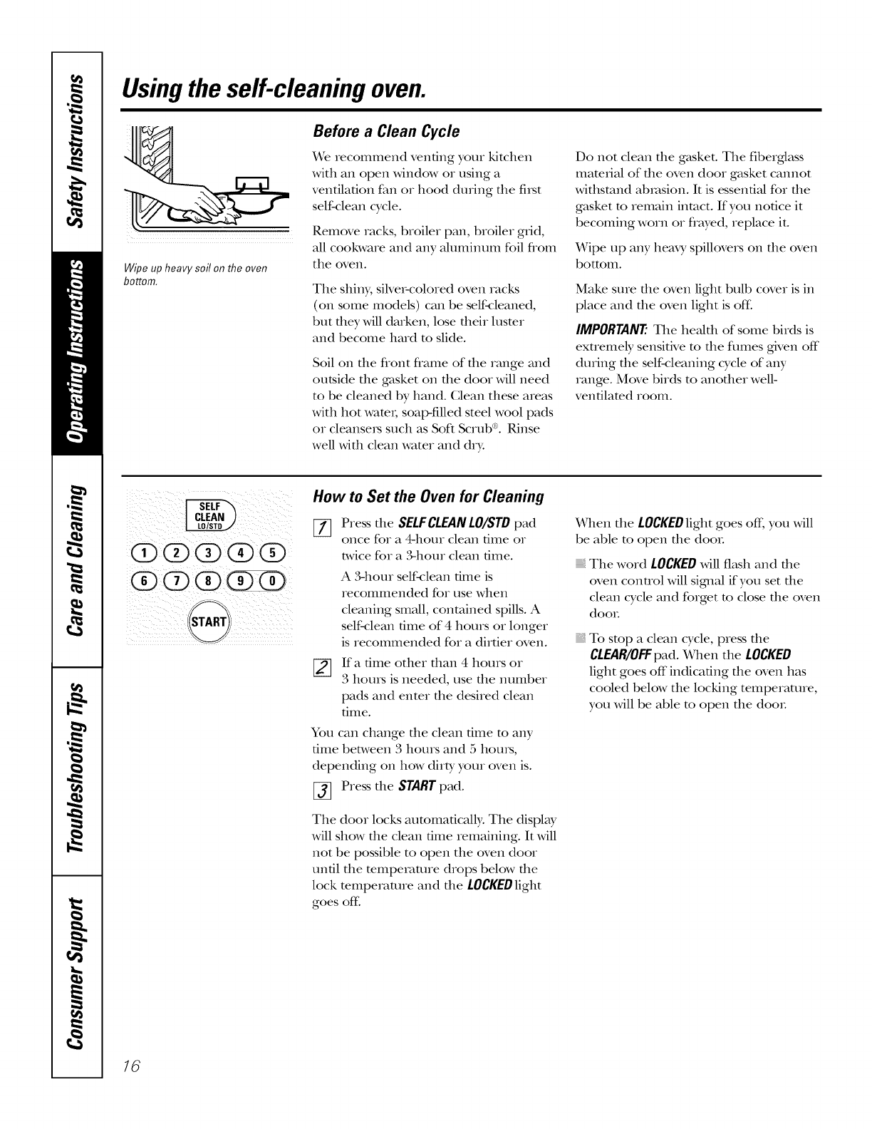 Self Cleaning ....... 16, 17