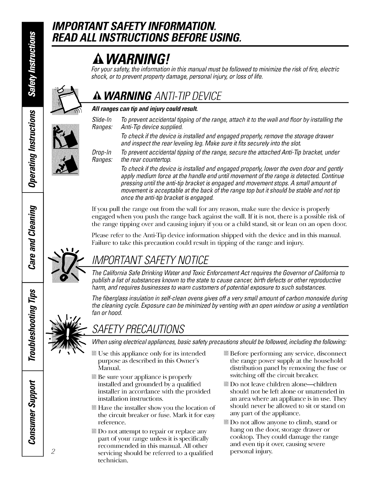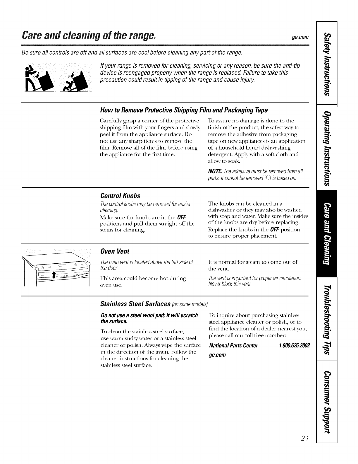 Failure to take this precaution could result in tipping of the range and injm T.