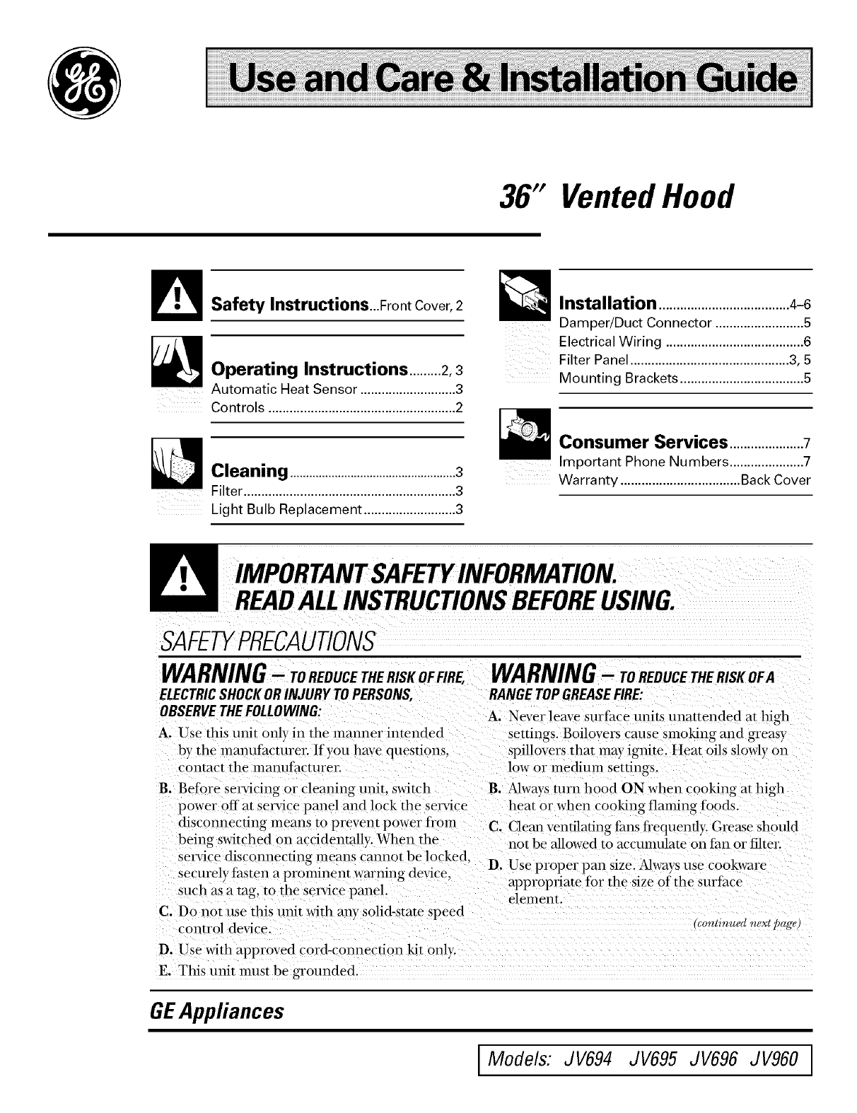 User Manual: GE JV695SWW JV695SWW GE RANGE HOOD - Manuals and Guides View the owners manual for your GE RANGE HOOD #JV695SWW. Home:Kitchen Appliance Parts:GE Parts:GE RANGE HOOD Manual