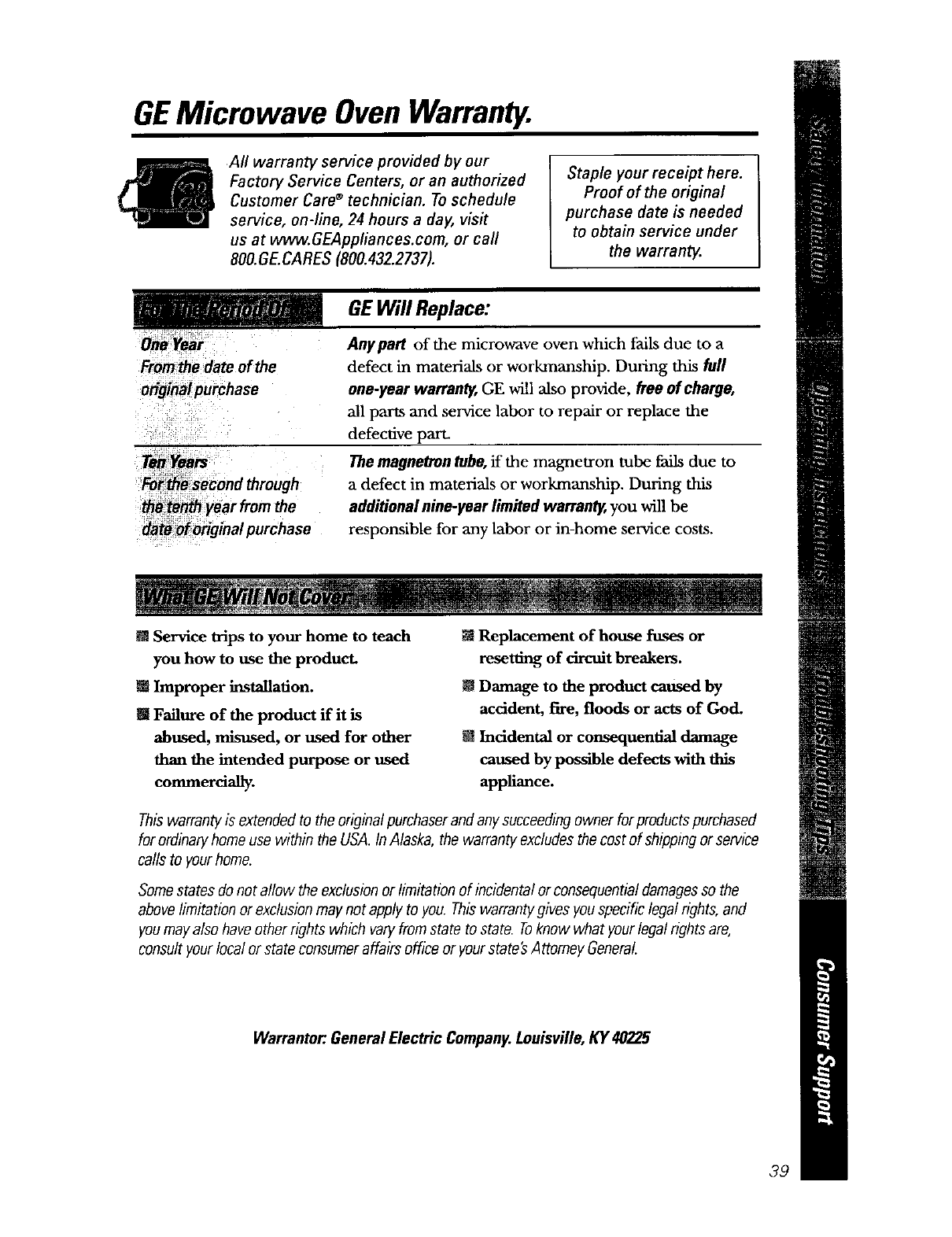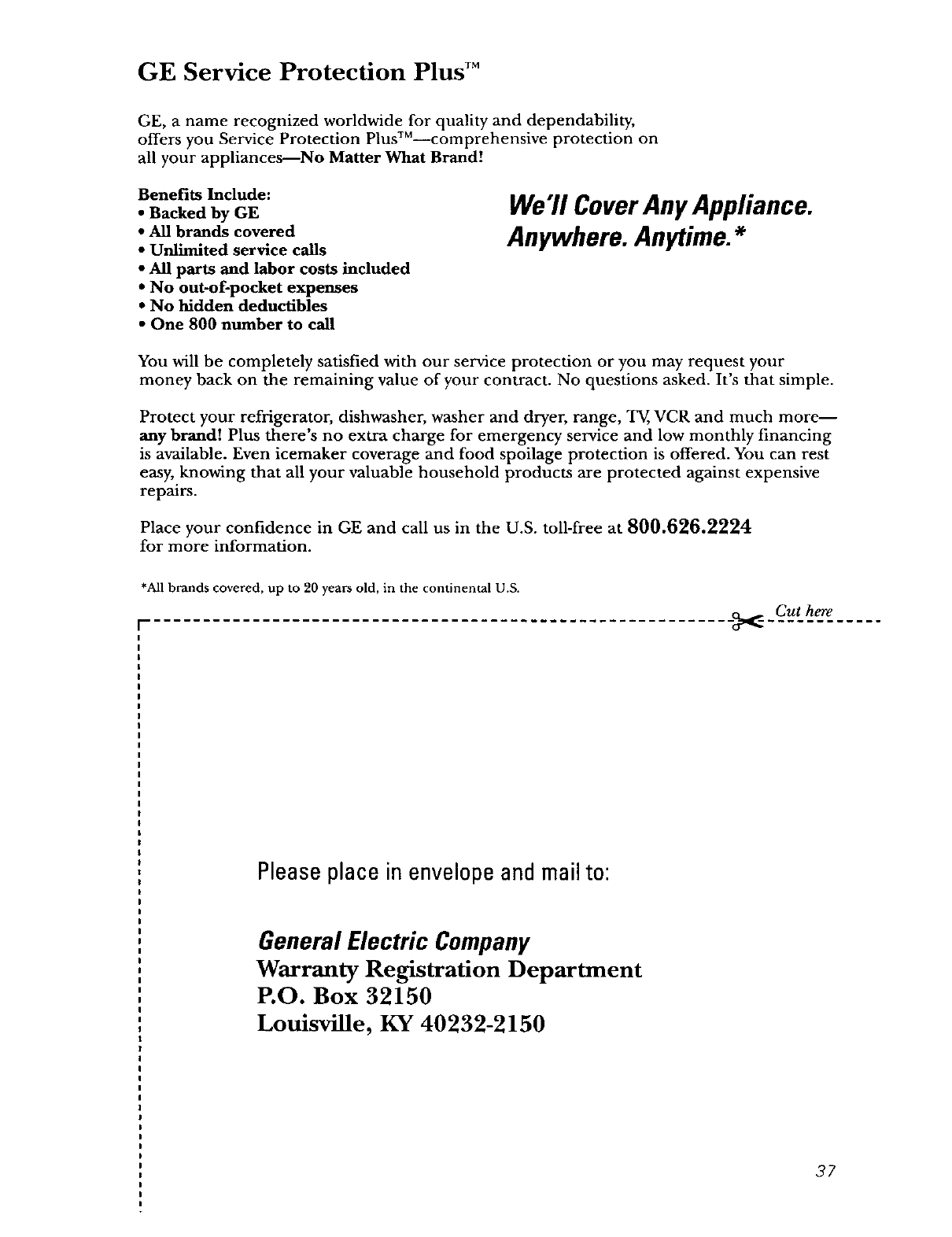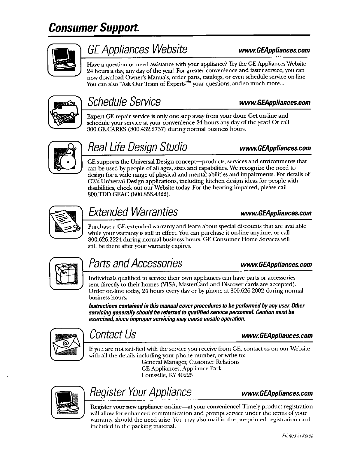 800.626.2224 during normal business hours. GE Consumer Home Services will