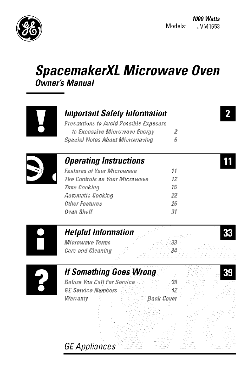 User Manual: GE JVM1653BD004 JVM1653BD004 GE MICROWAVE - Manuals and Guides View the owners manual for your GE MICROWAVE #JVM1653BD004. Home:Kitchen Appliance Parts:GE Parts:GE MICROWAVE Manual