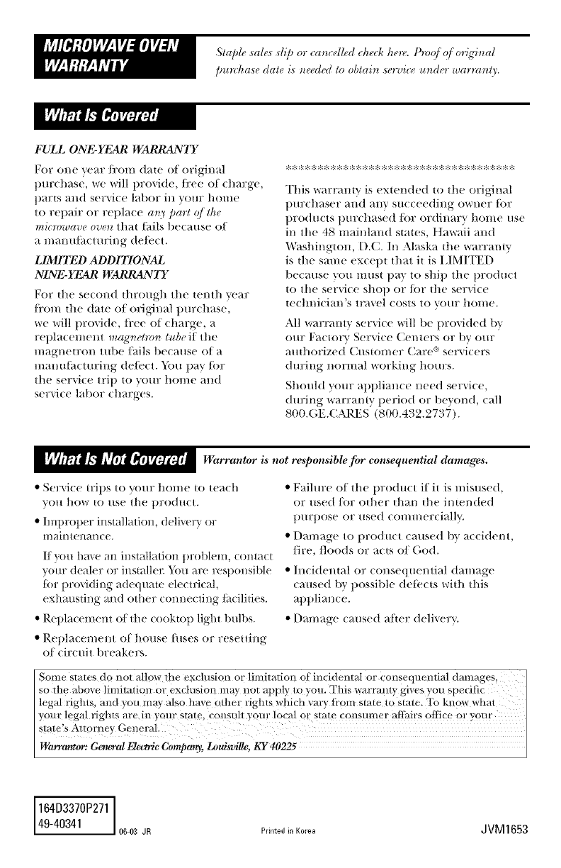 GE JVM1653BD004 User Manual MICROWAVE Manuals And Guides L0707160