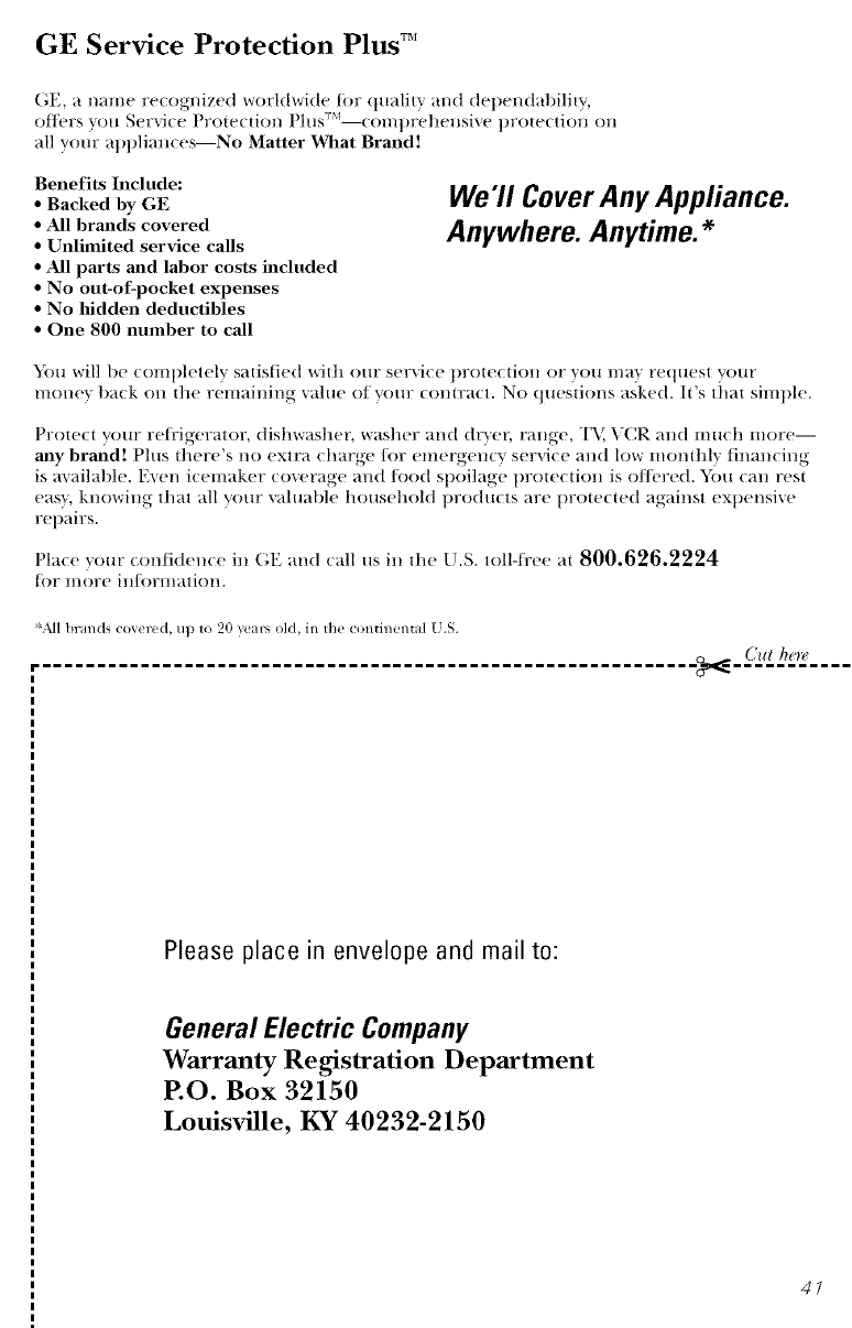 800.626.2224 during normal business hours. GE Consumer Itome SelsJc es will