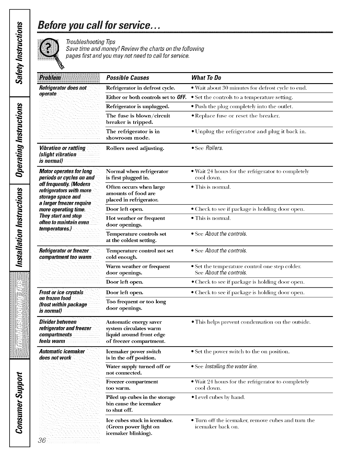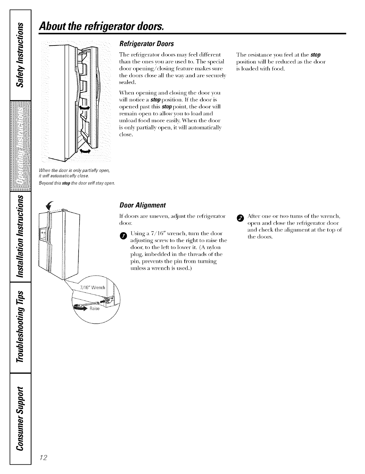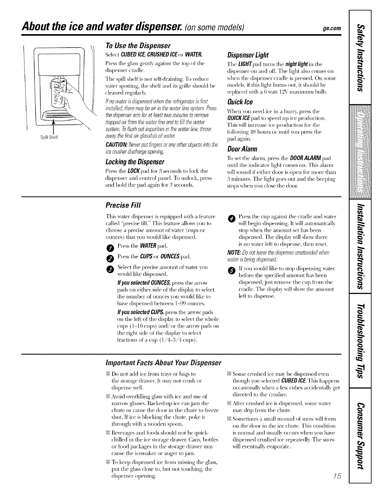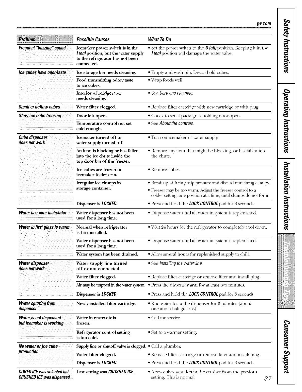 User Manual: GE GE Side by Side Refrigerator Manual GE Side by Side Refrigerator Owner's Manual, GE Side by Side Refrigerator installation guides