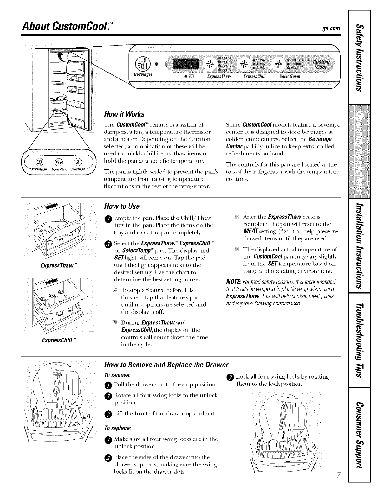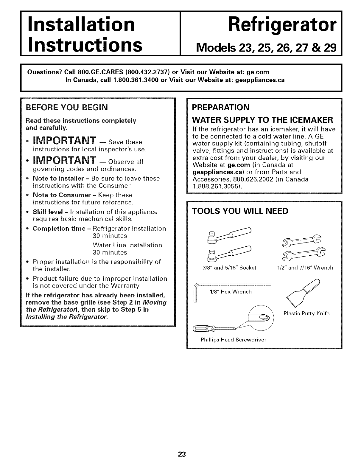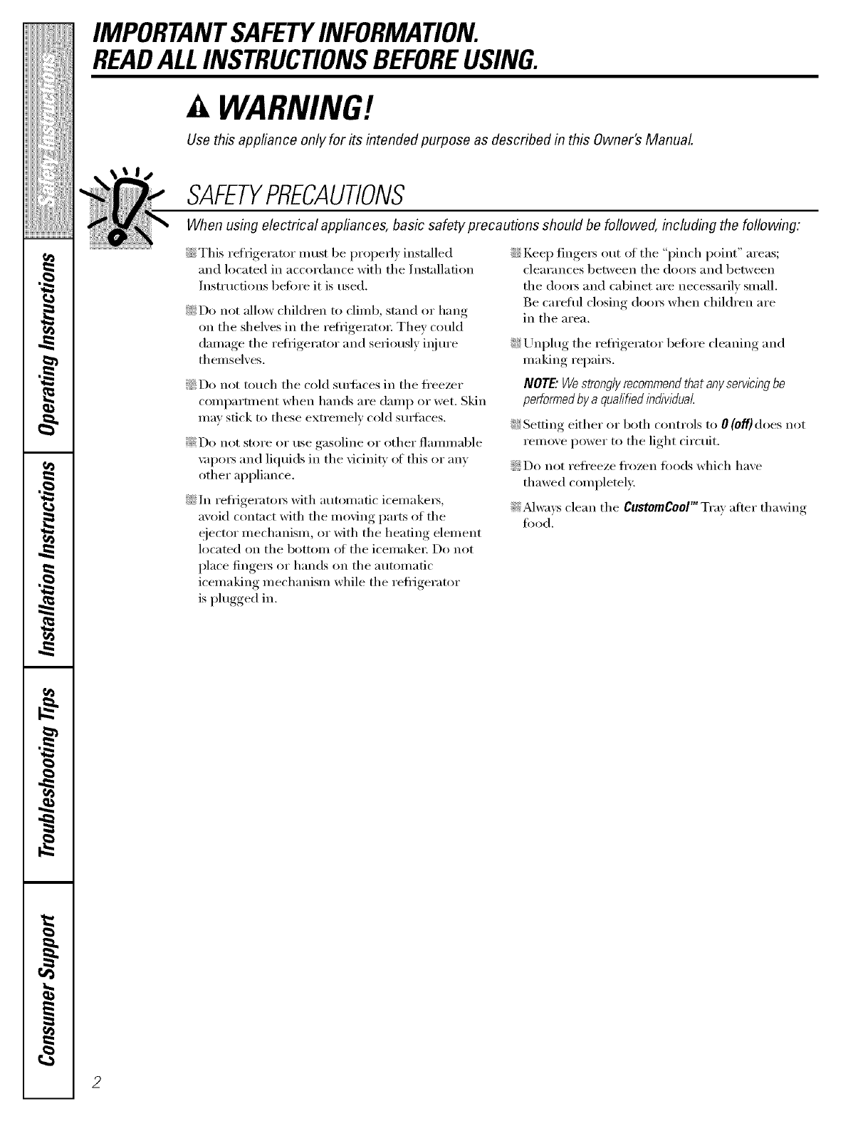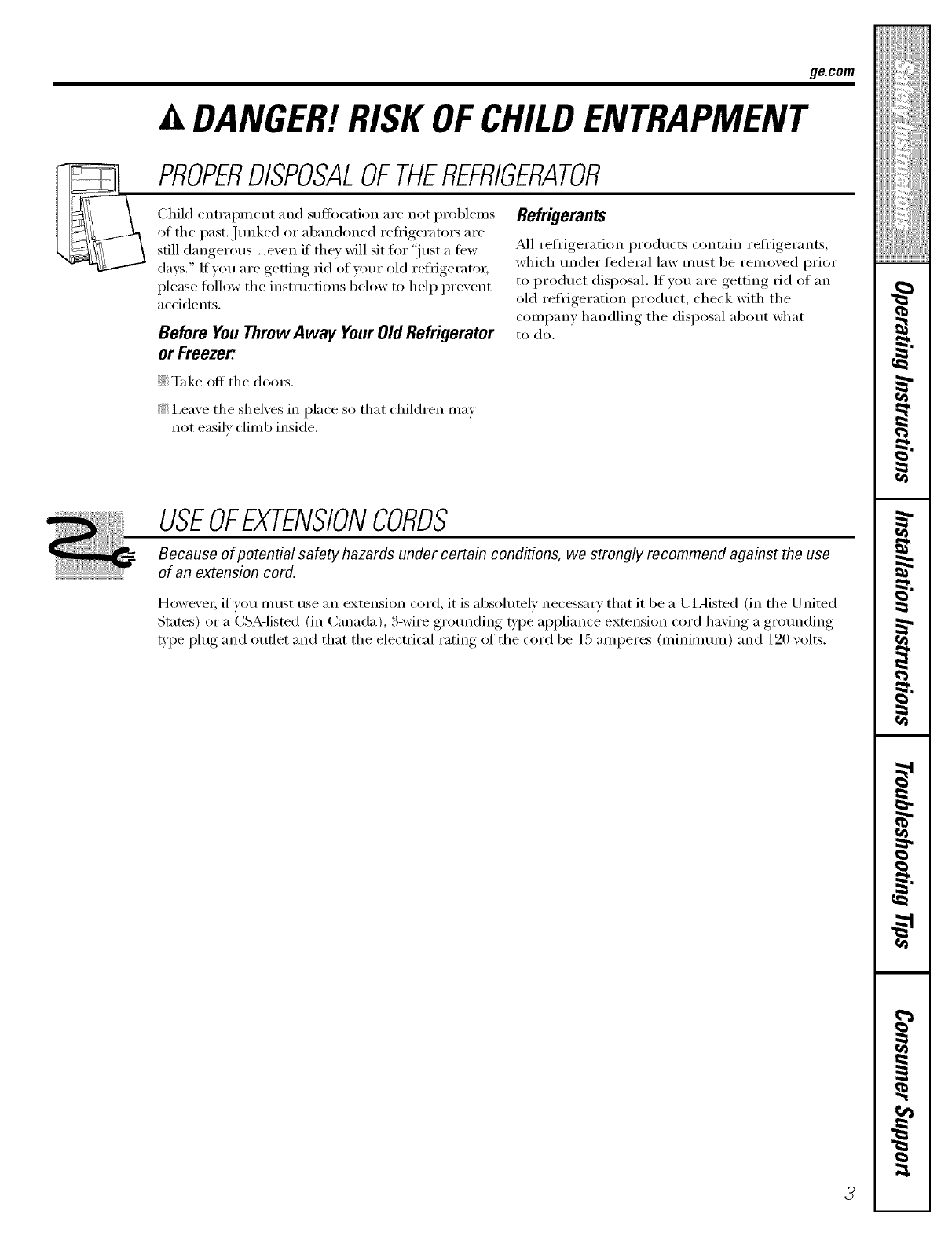 User Manual: GE GE Side by Side Refrigerator Manual GE Side by Side Refrigerator Owner's Manual, GE Side by Side Refrigerator installation guides