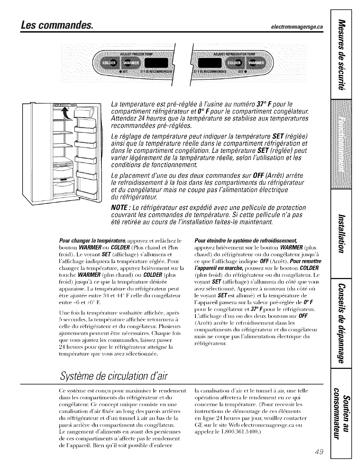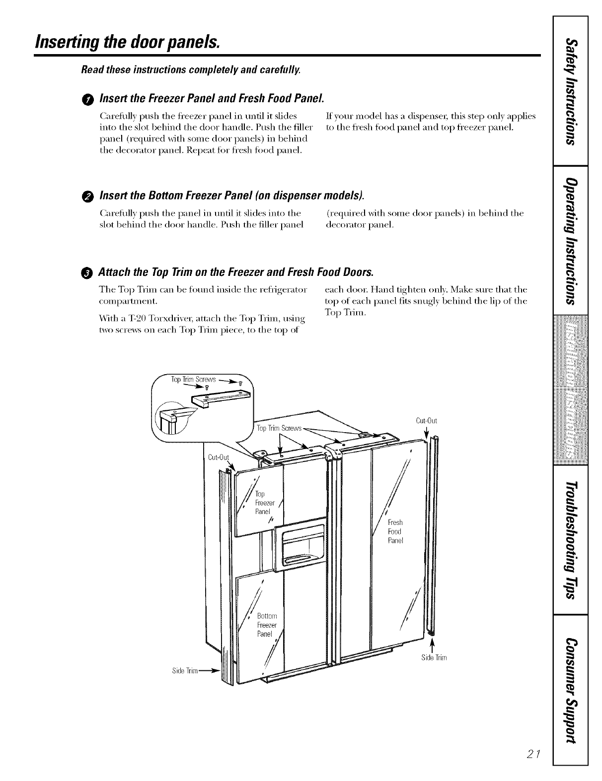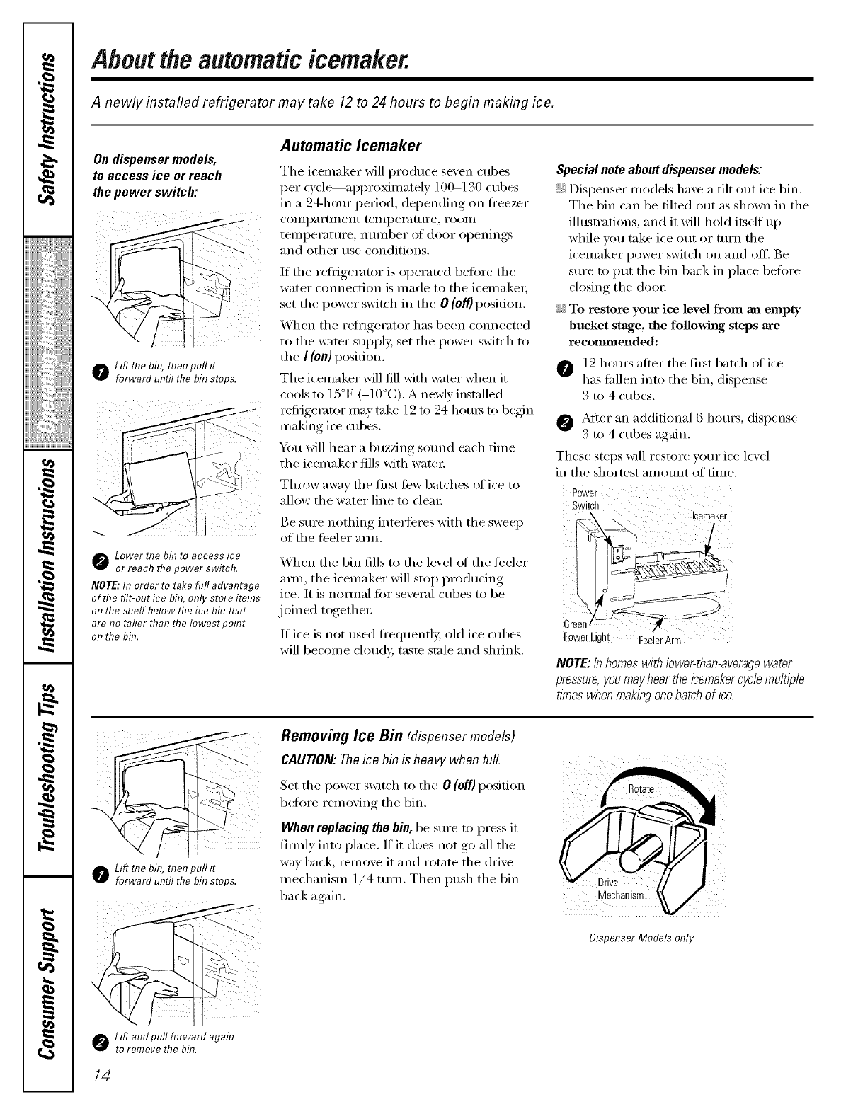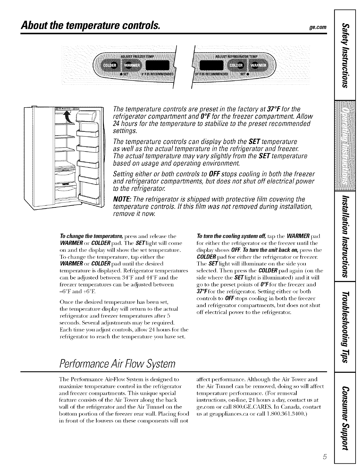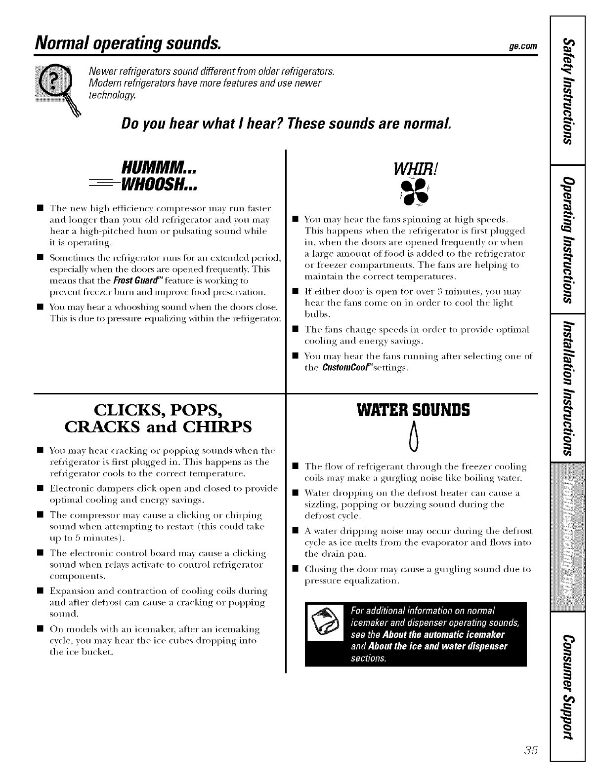 User Manual: GE GE Side by Side Refrigerator Manual GE Side by Side Refrigerator Owner's Manual, GE Side by Side Refrigerator installation guides