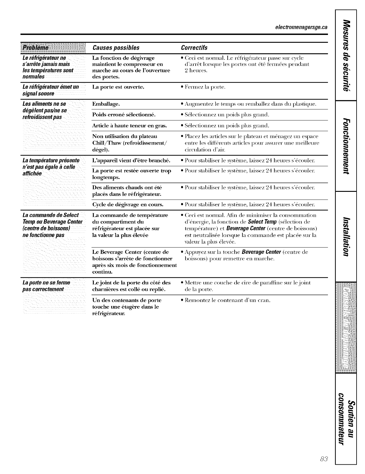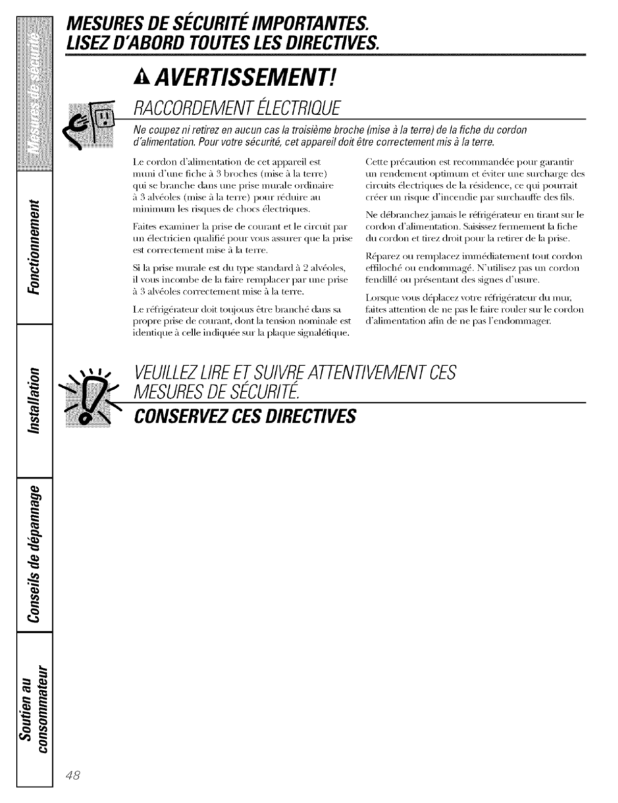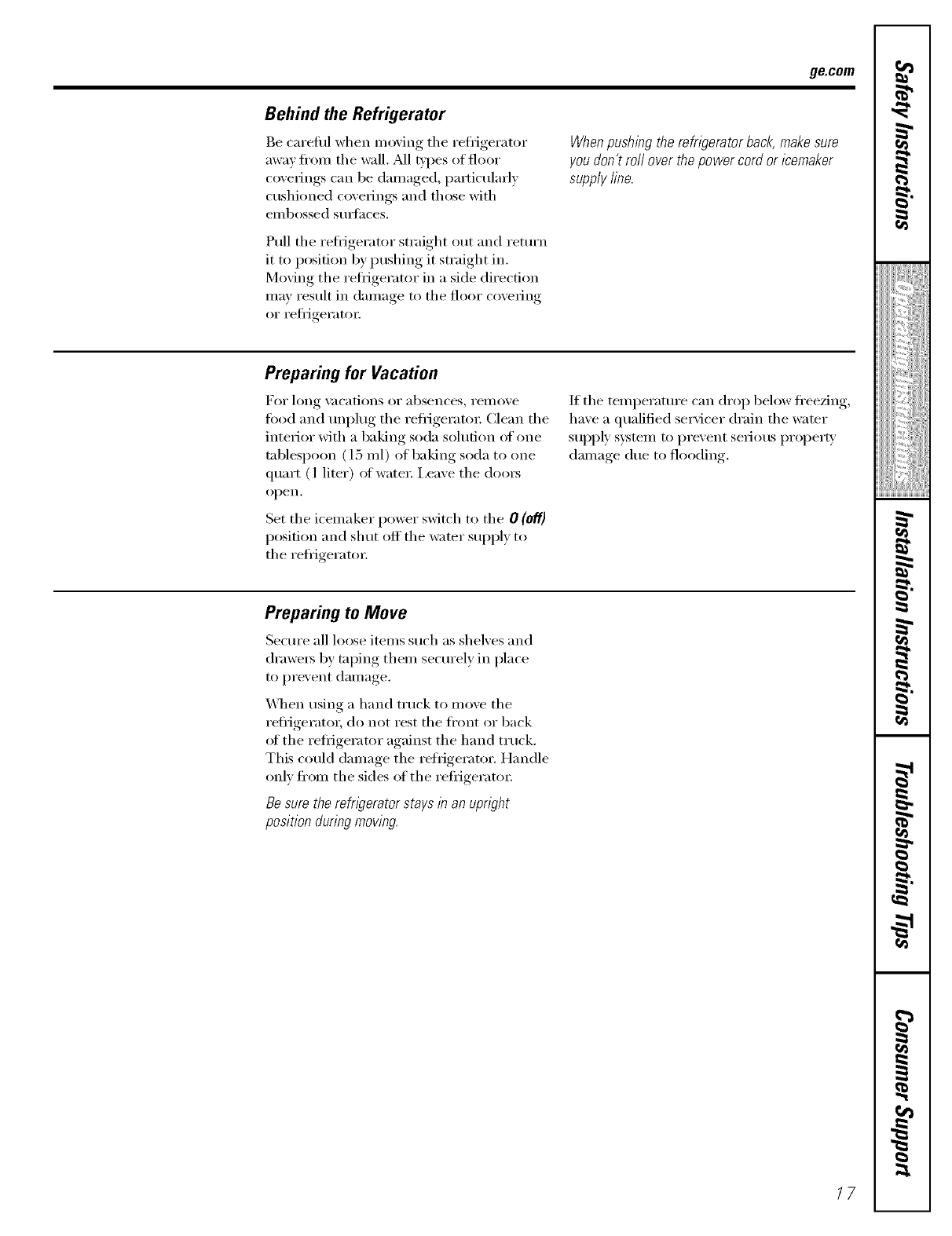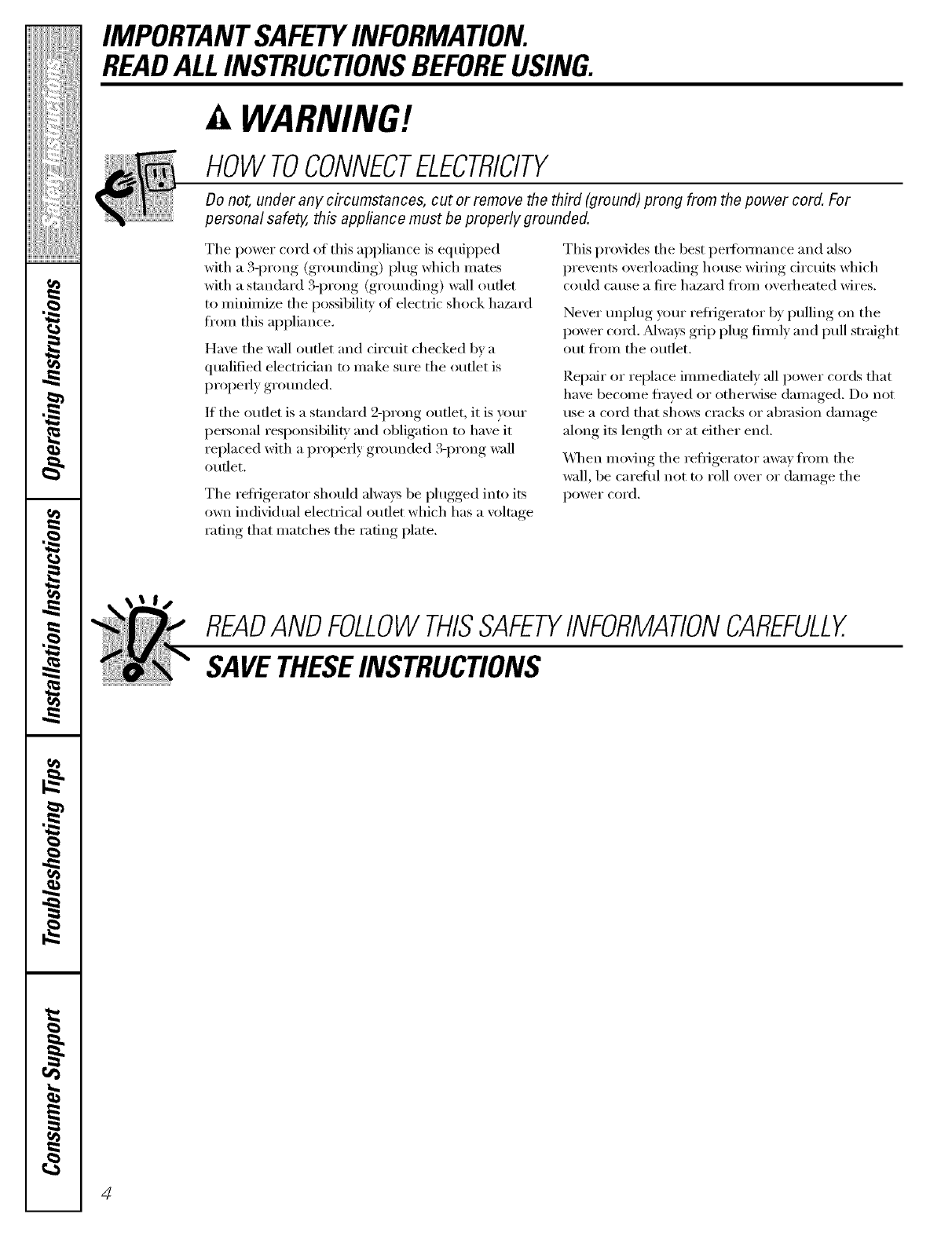 User Manual: GE GE Side by Side Refrigerator Manual GE Side by Side Refrigerator Owner's Manual, GE Side by Side Refrigerator installation guides