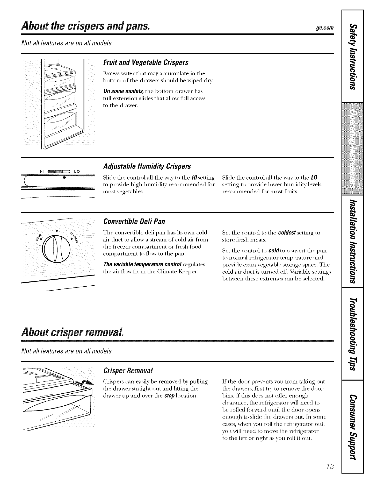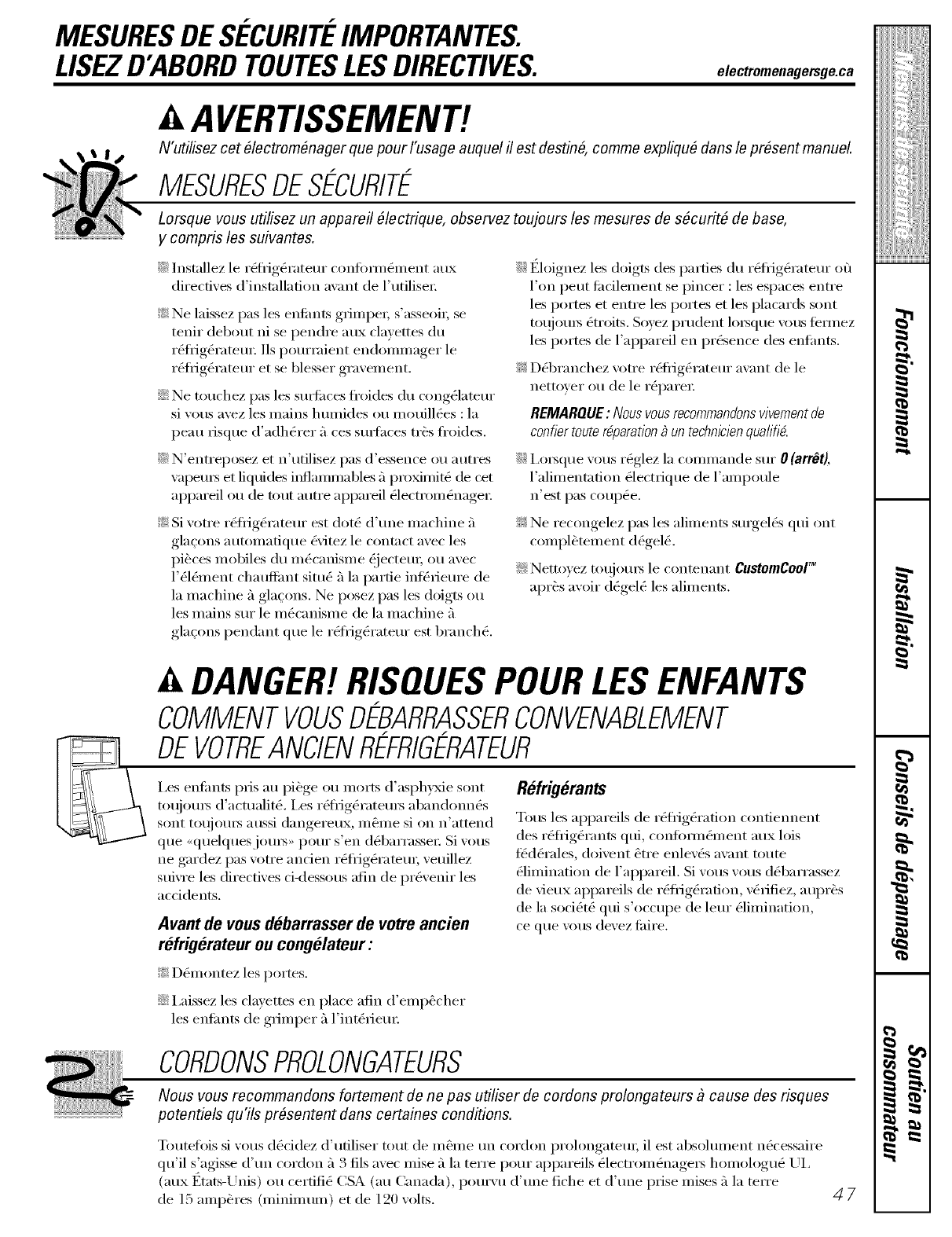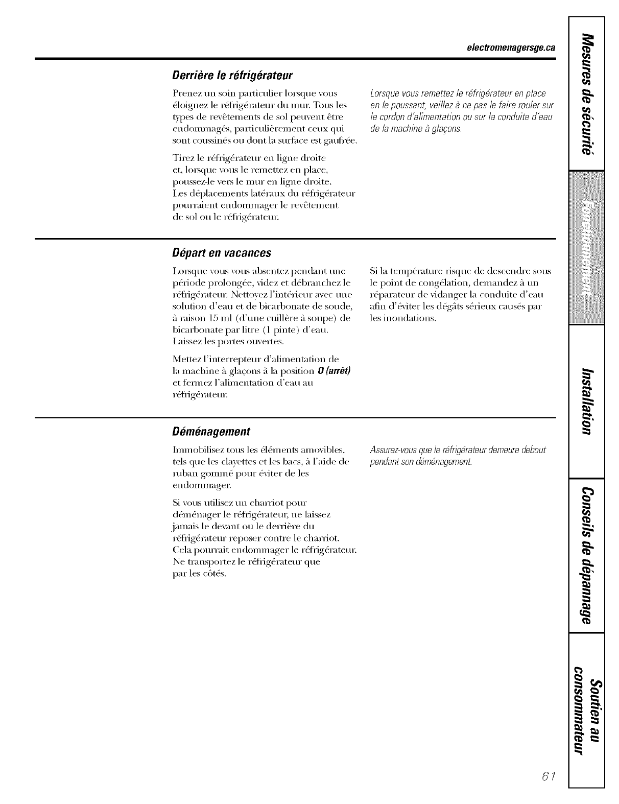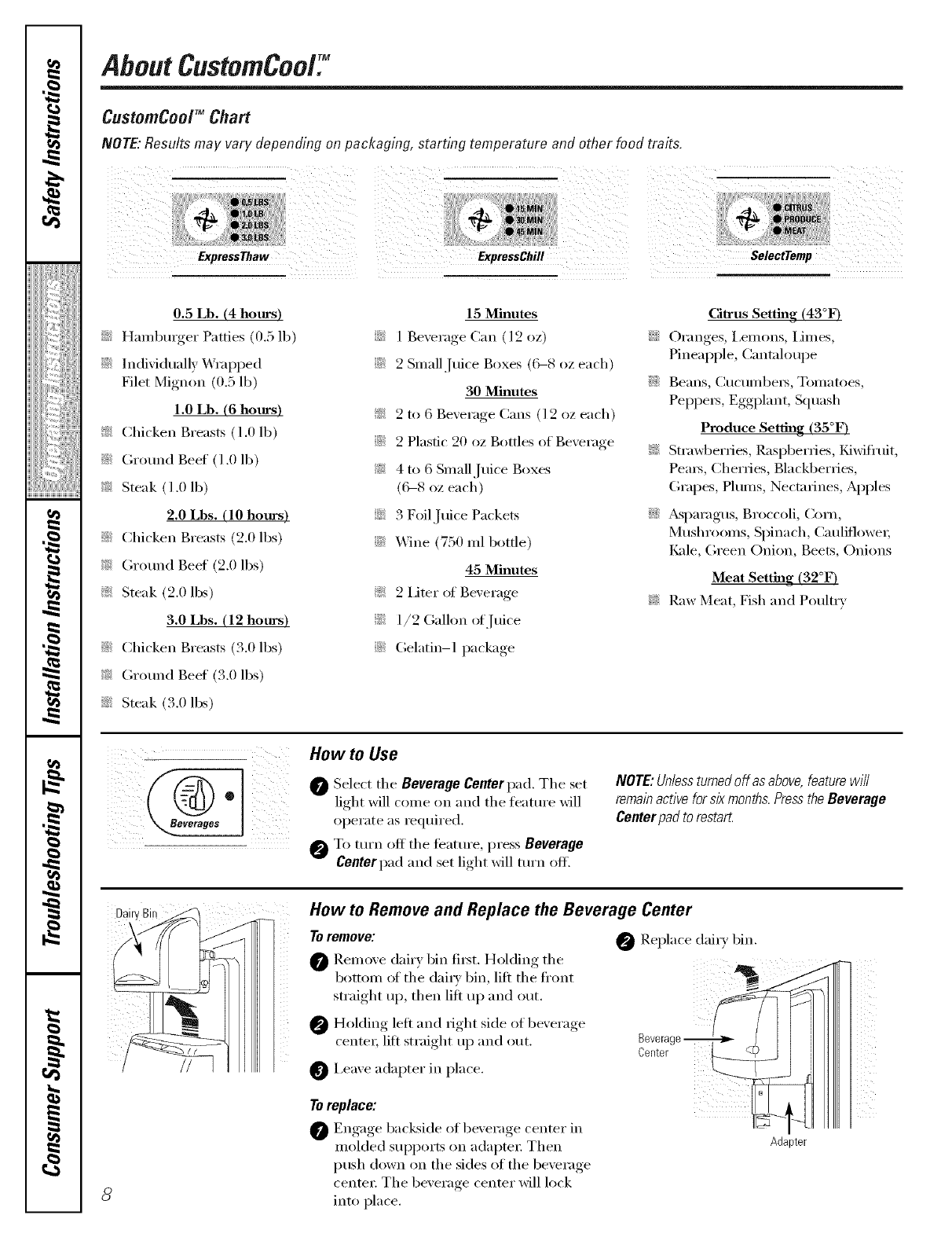 User Manual: GE GE Side by Side Refrigerator Manual GE Side by Side Refrigerator Owner's Manual, GE Side by Side Refrigerator installation guides