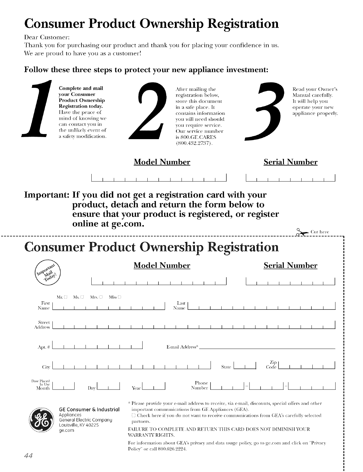 mail in the pre-printed registration card included in the I)acldng, material. In Canada: geappliaaaces.ca