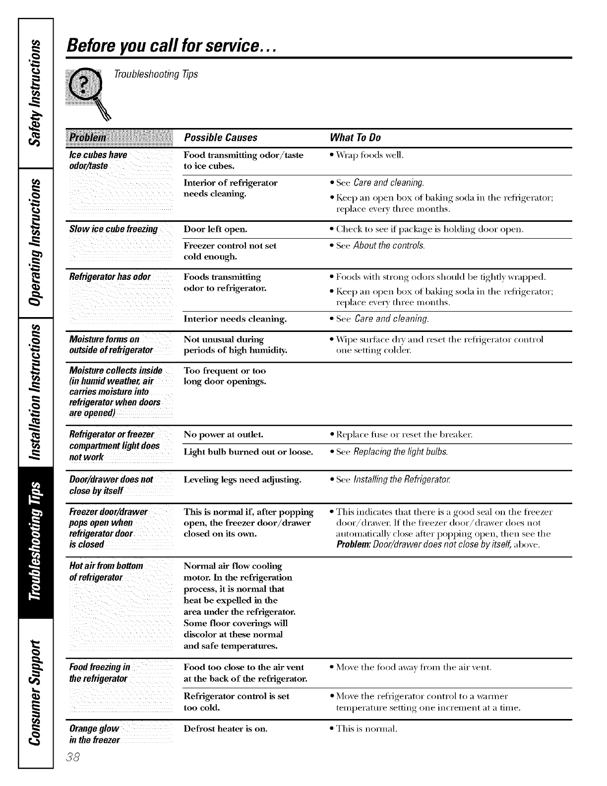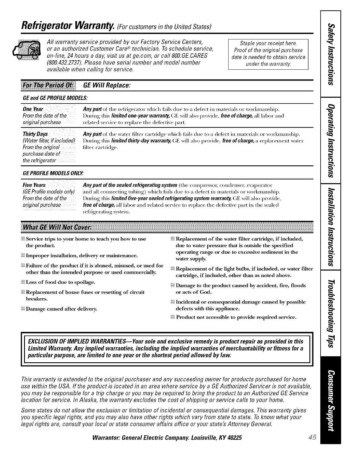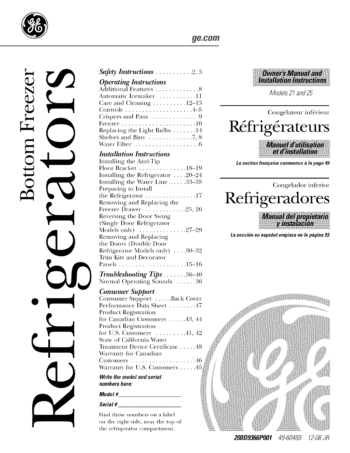 User Manual: GE GE Bottom Mount Refrigerator Manual GE Bottom Mount Refrigerator Owner's Manual, GE Bottom Mount Refrigerator installation guides