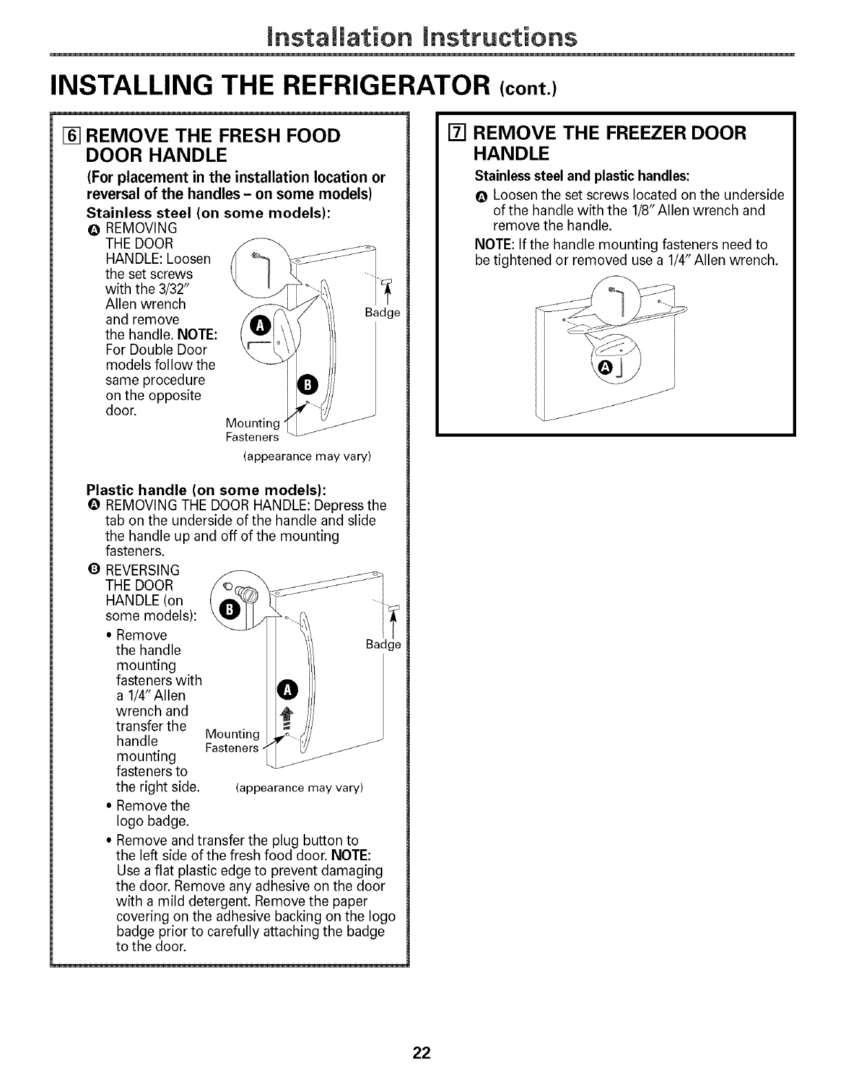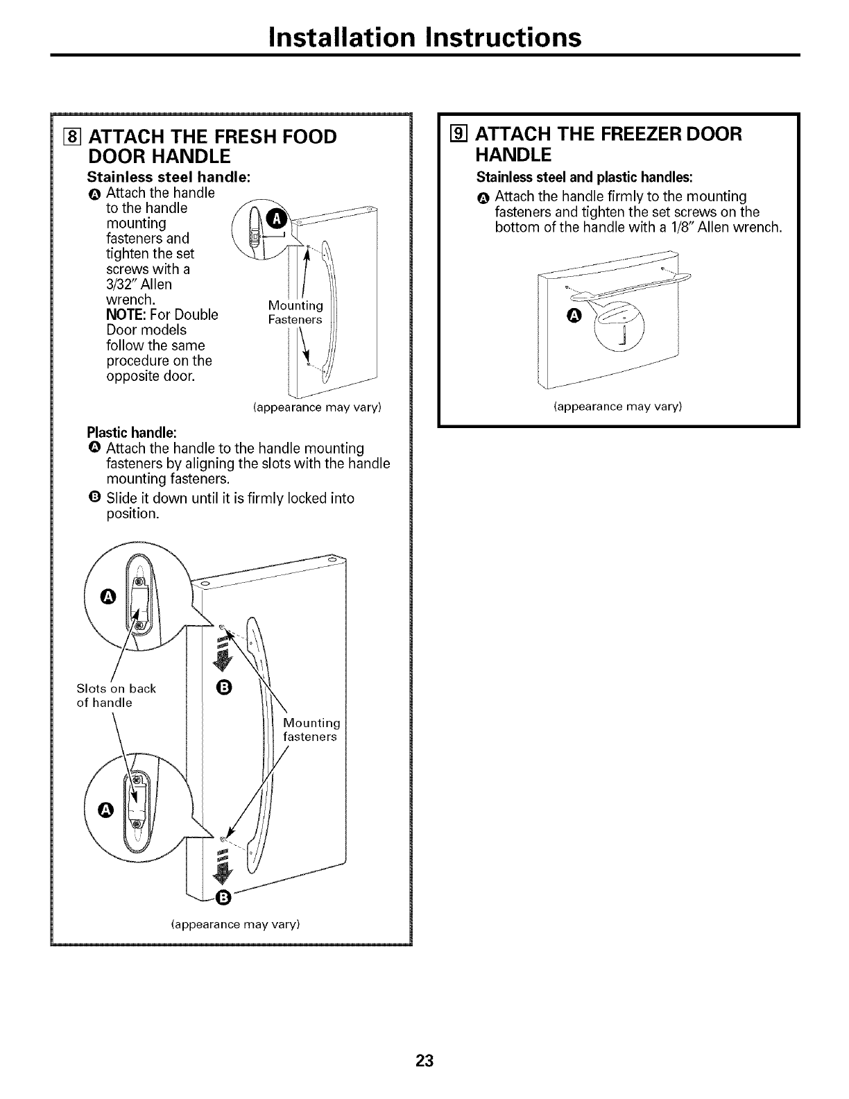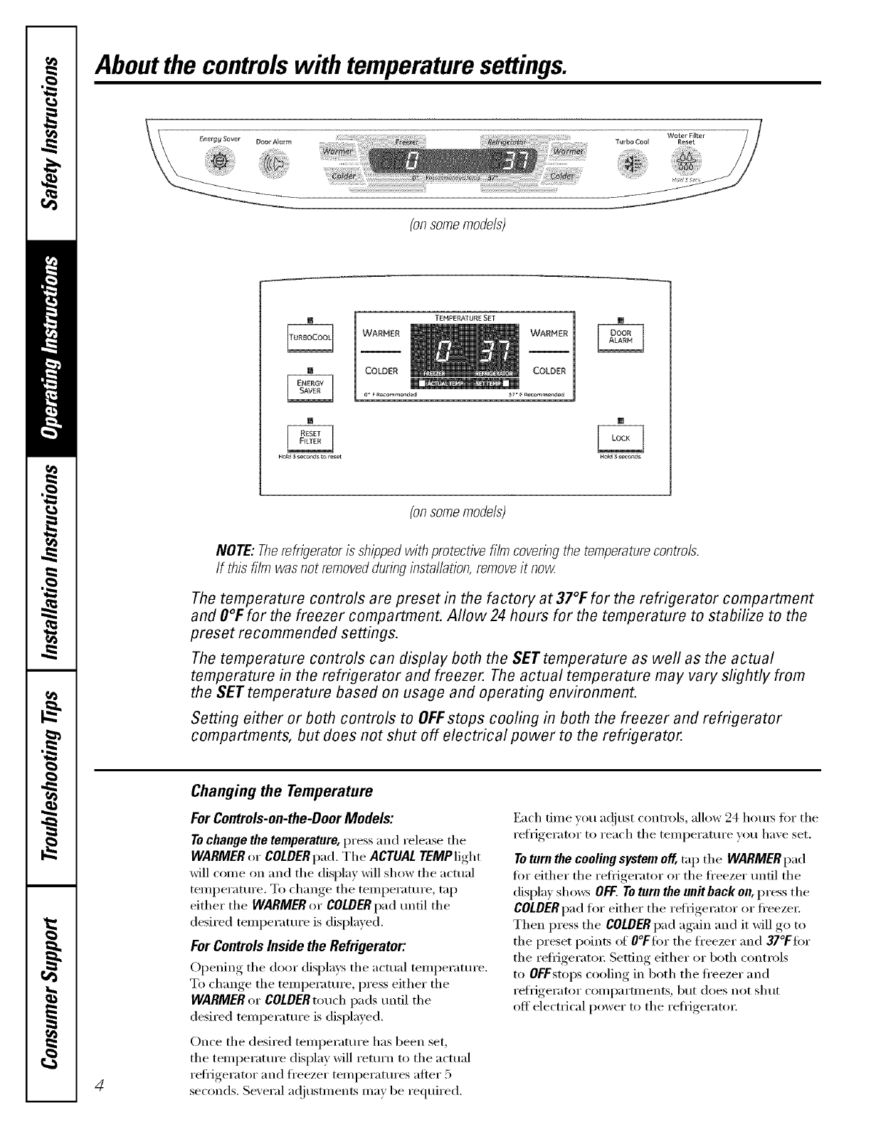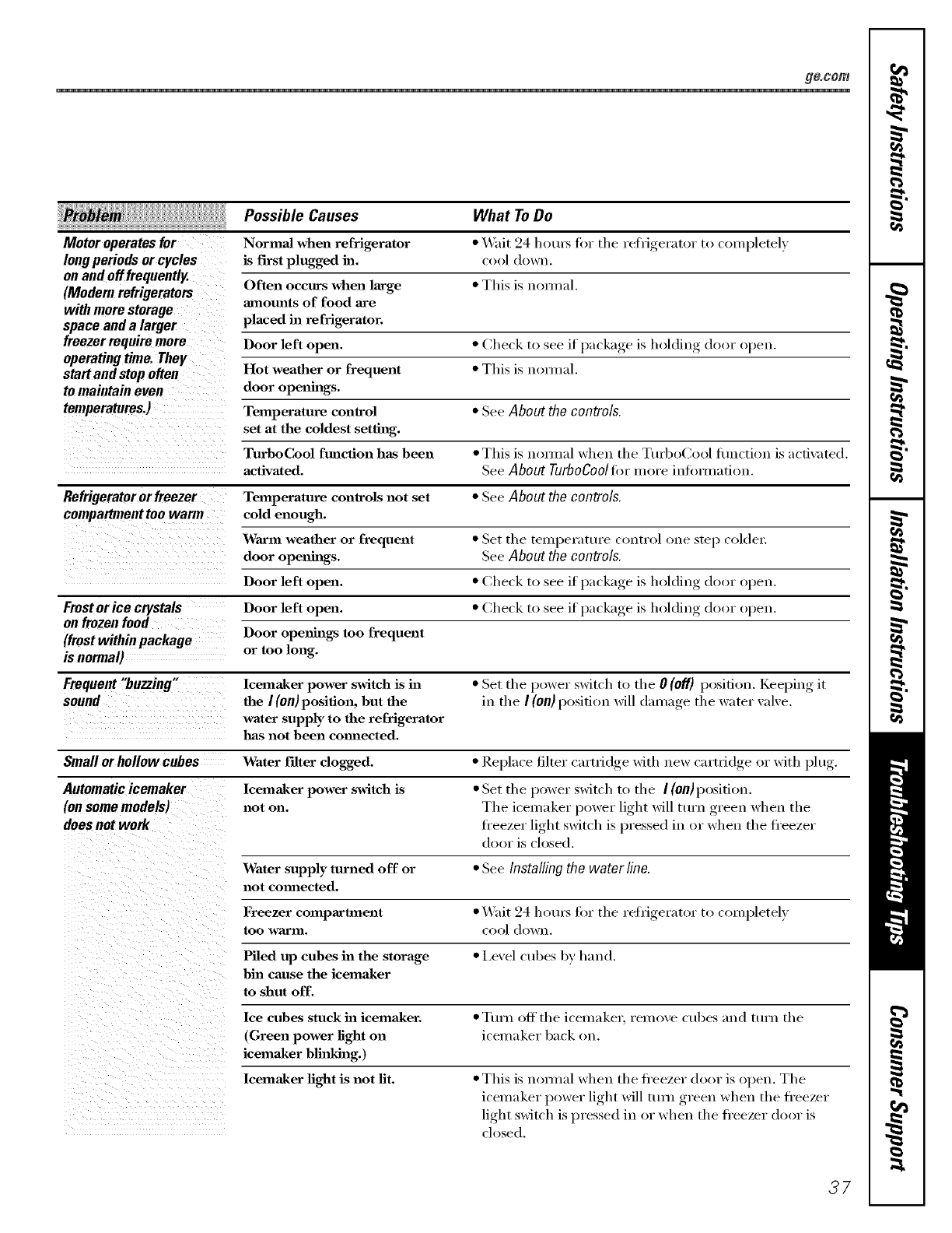 User Manual: GE GE Bottom Mount Refrigerator Manual GE Bottom Mount Refrigerator Owner's Manual, GE Bottom Mount Refrigerator installation guides