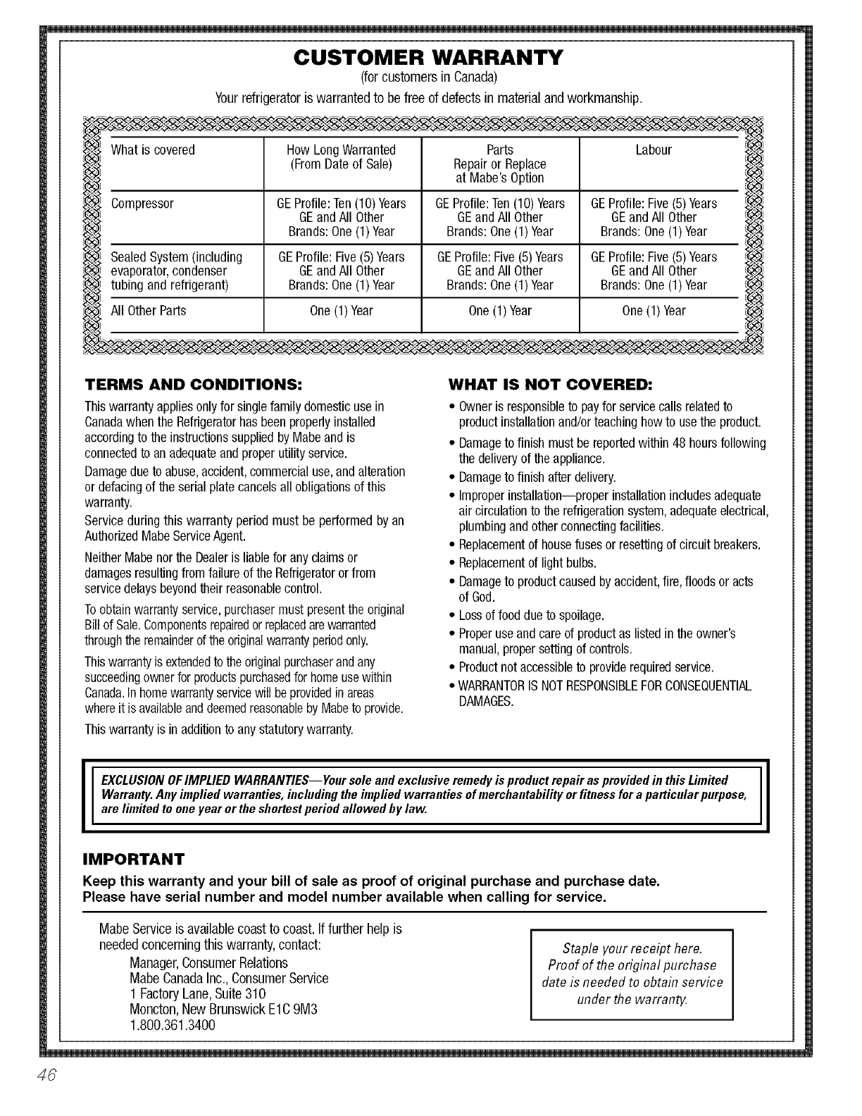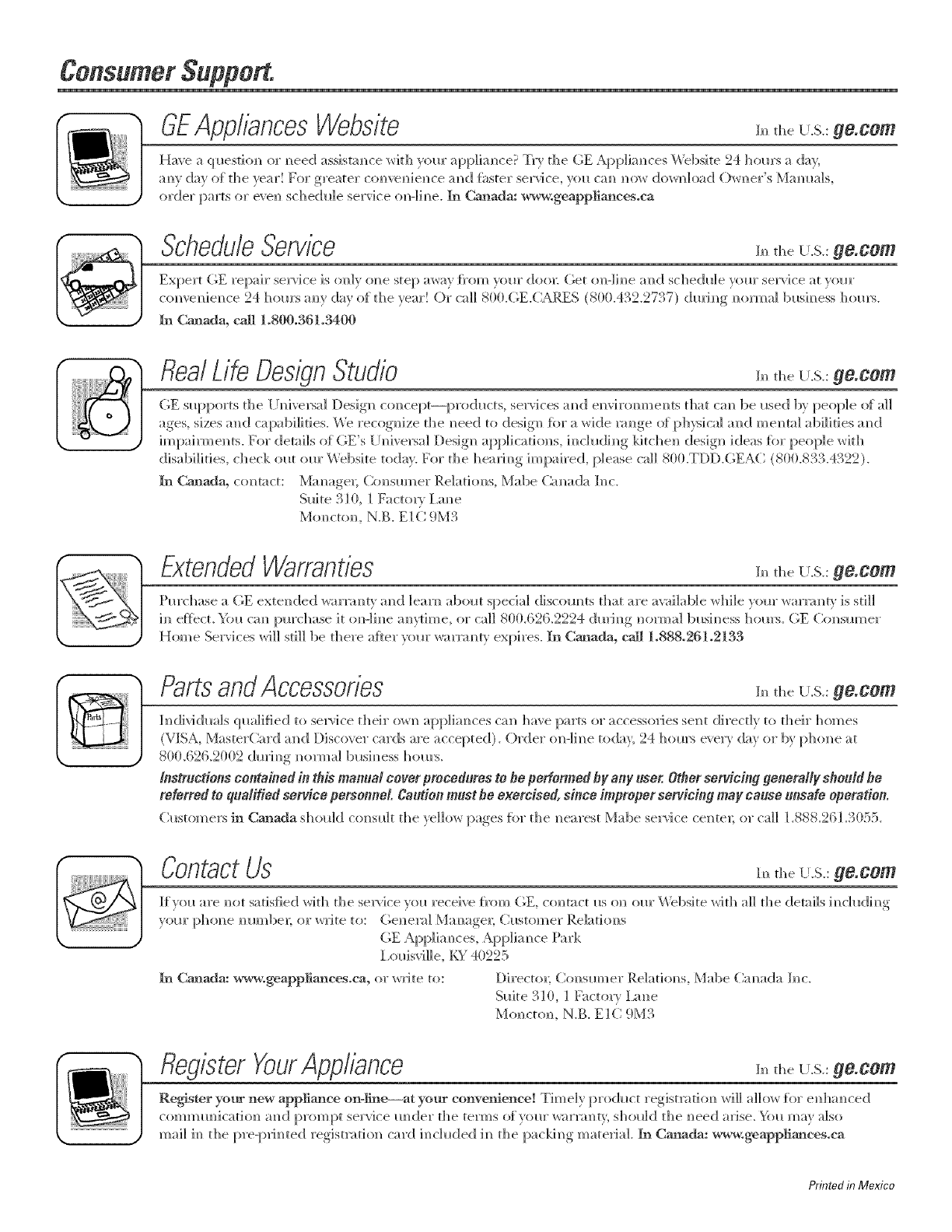 In Canada www.geapp]iances.ea, or _rite to: Director; Coi_s:lmer Re]atio_s, Mabe Ca_ada ]i_c.