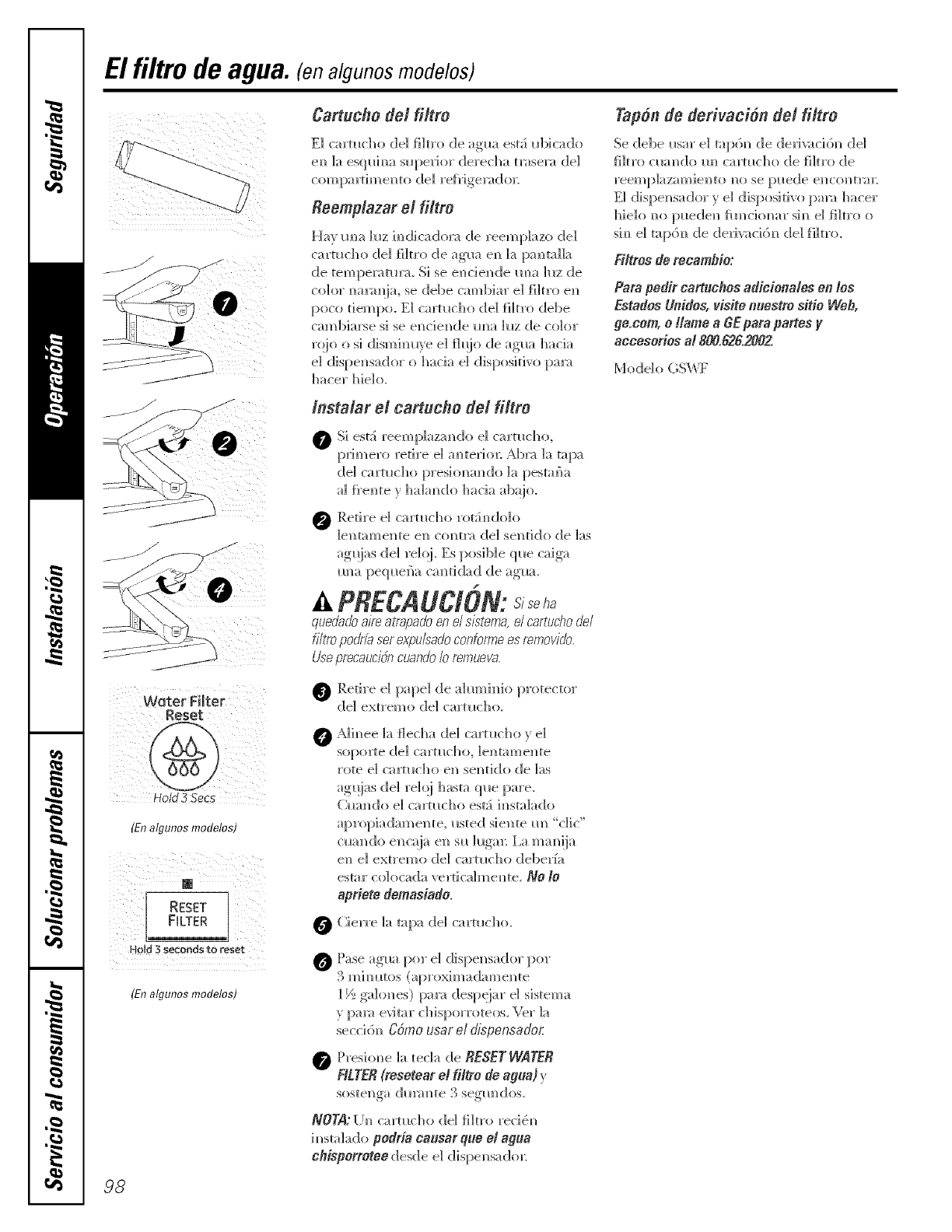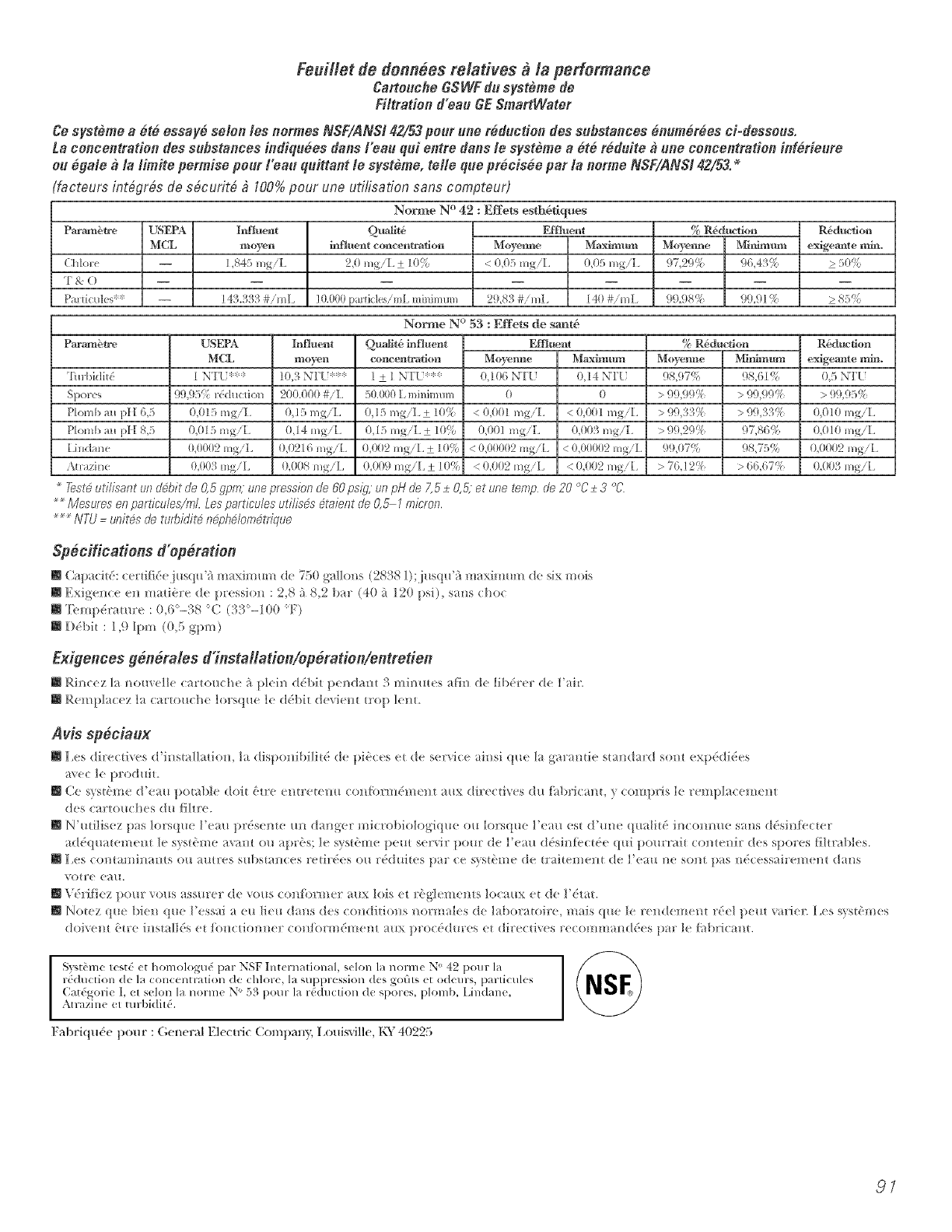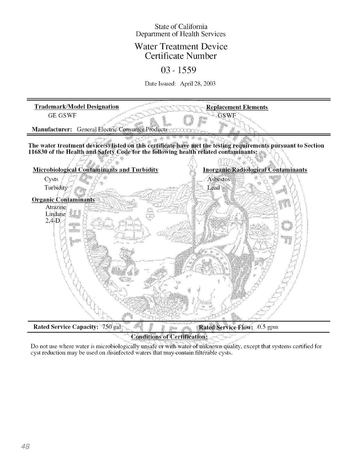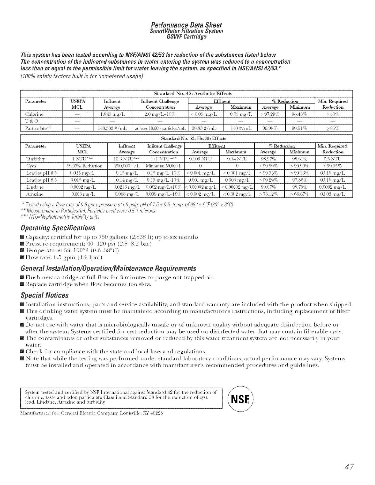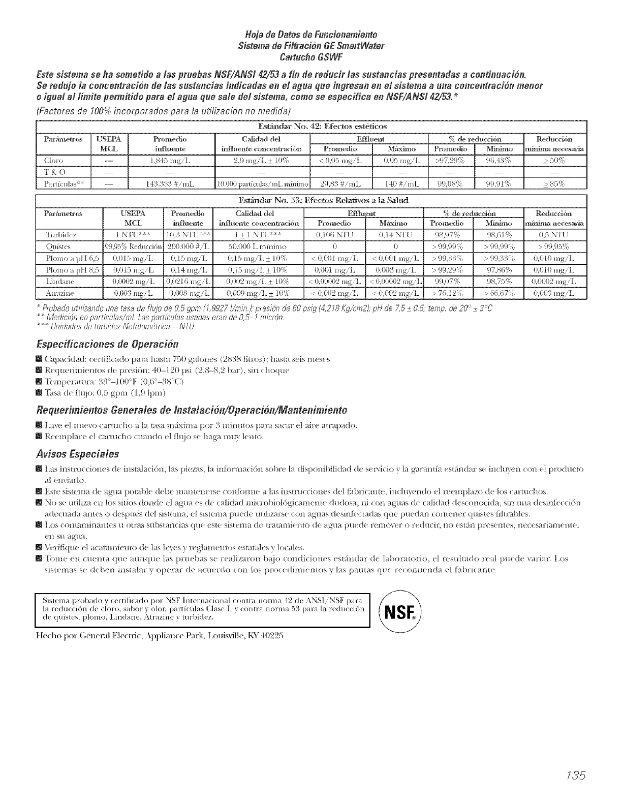 Sist(ma probado y certificado per NSF Int(rnacional contra norma 42 de ANSI/'NSF para