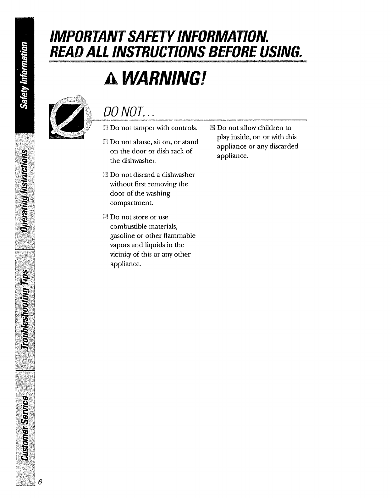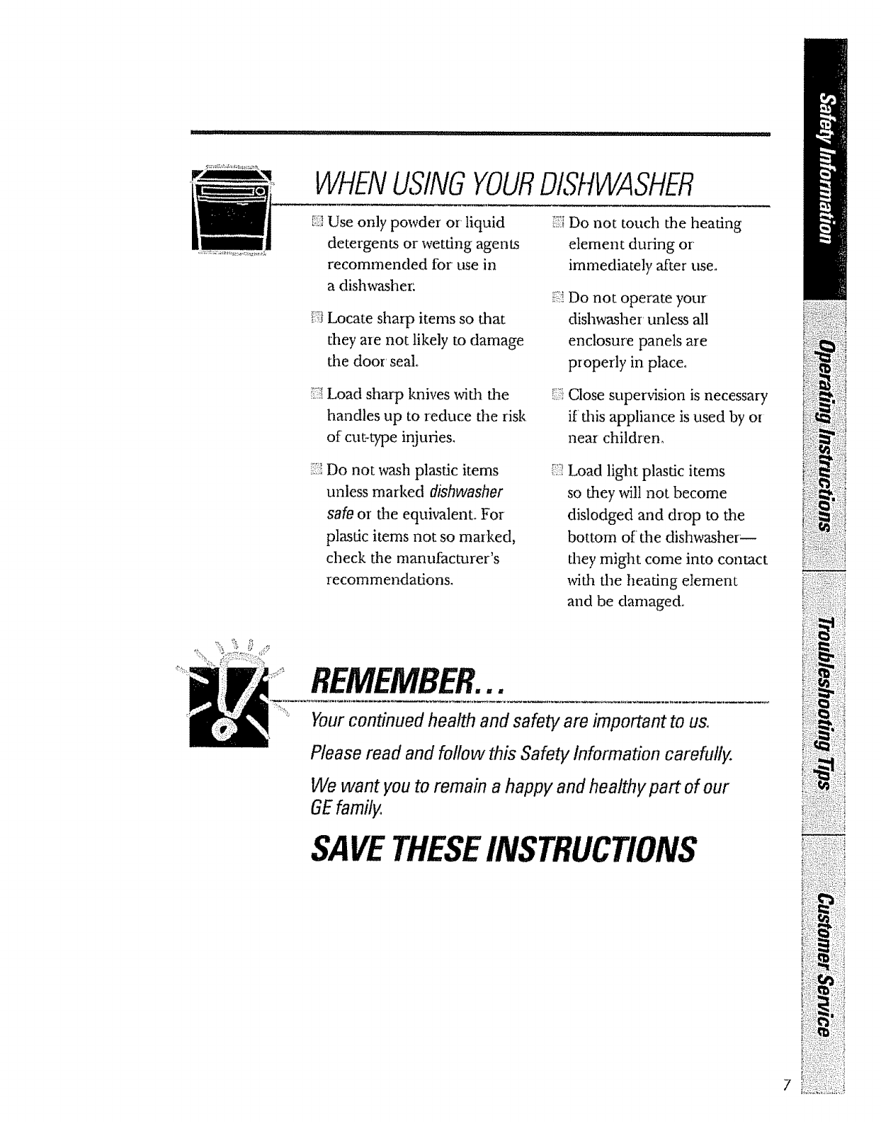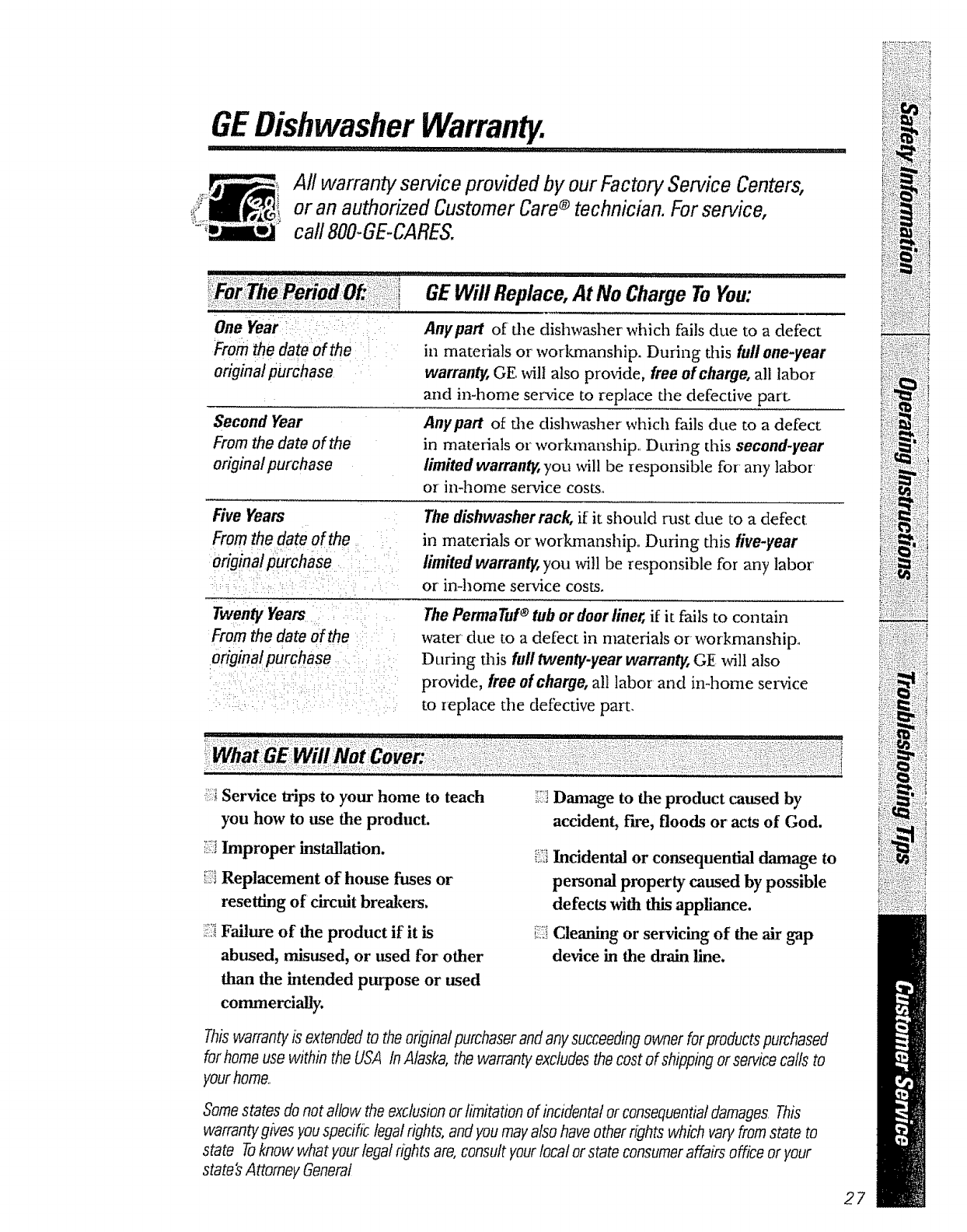 User Manual: GE GE Dishwasher Manual GE Dishwasher Owner's Manual, GE Dishwasher installation guides